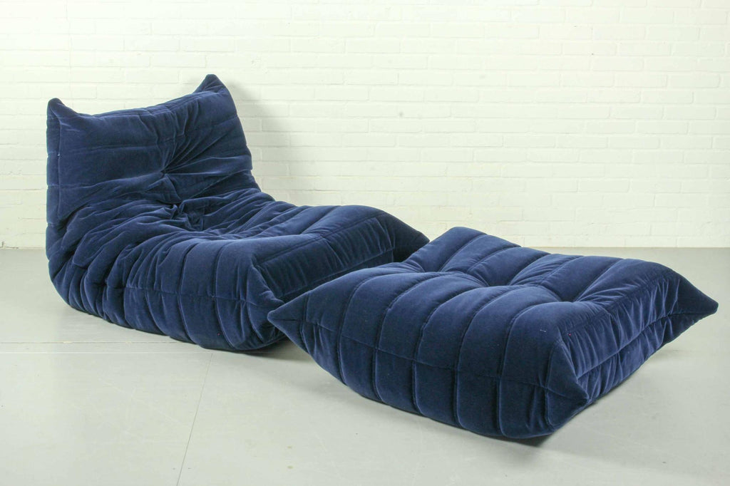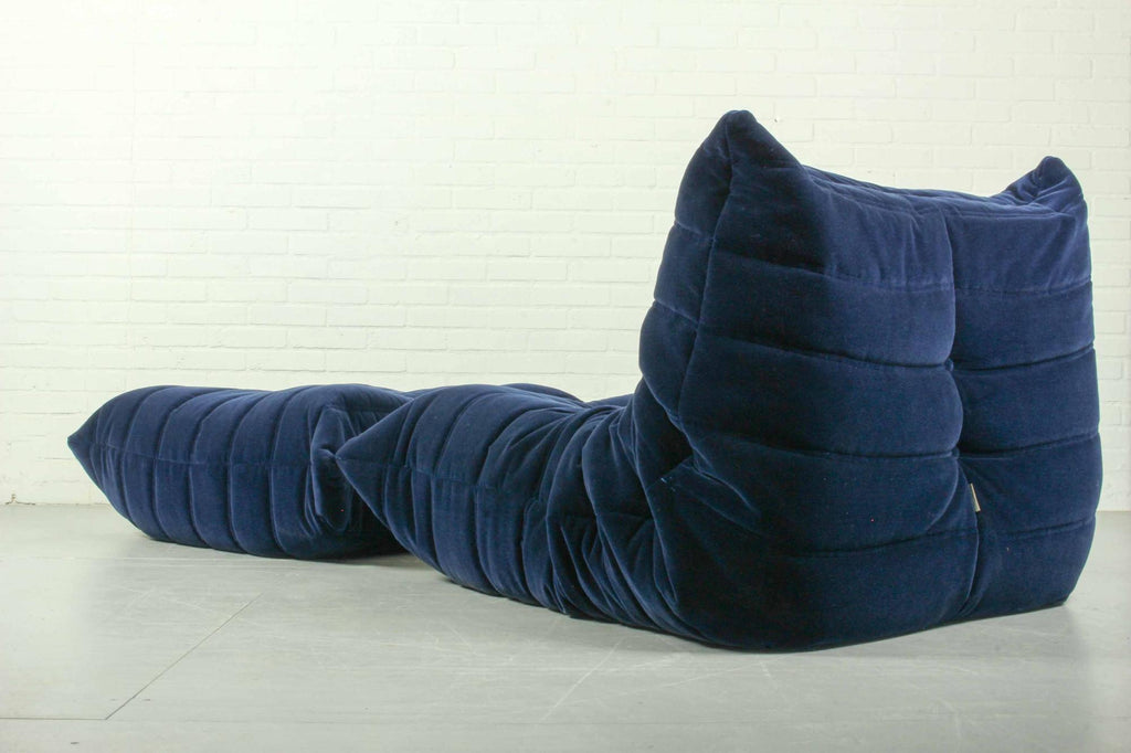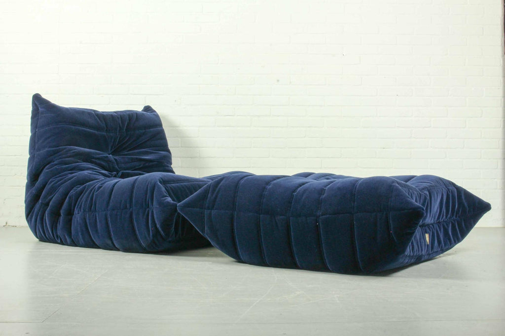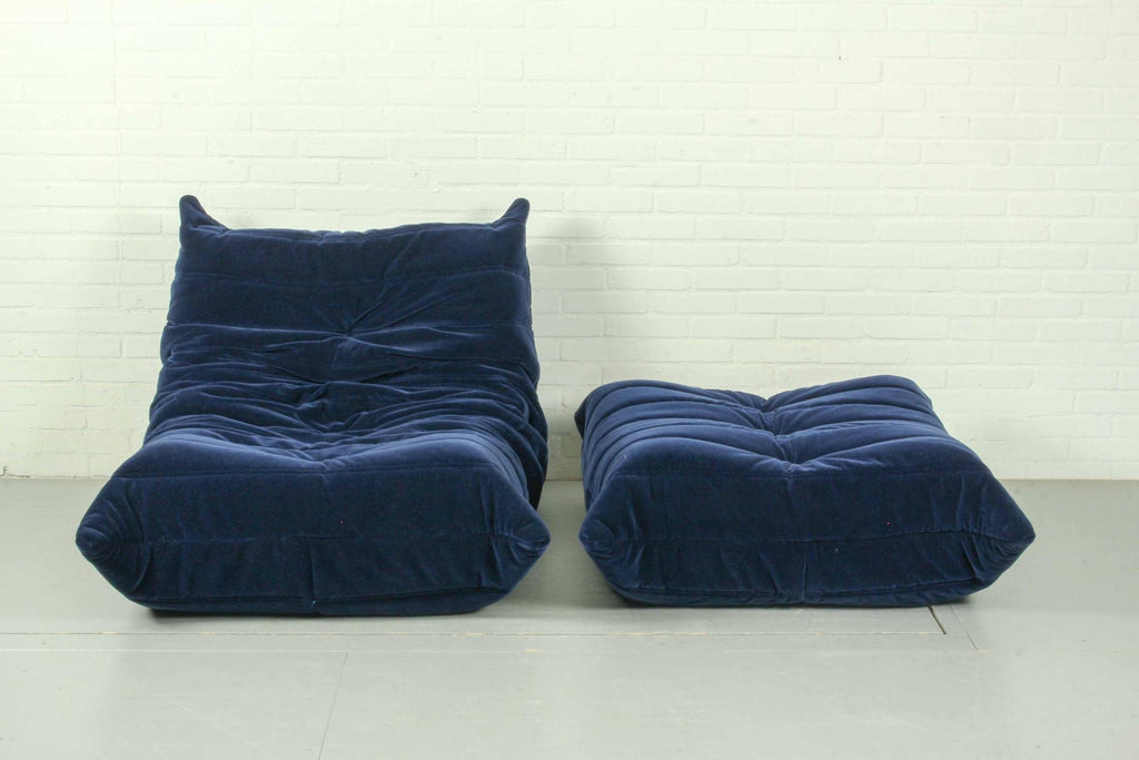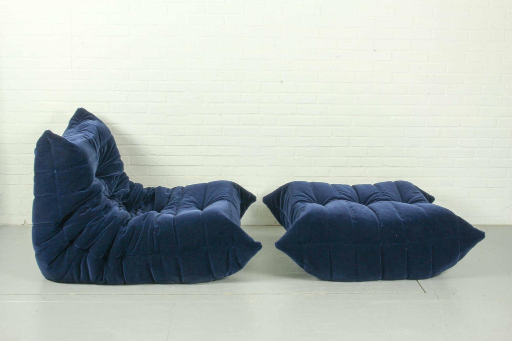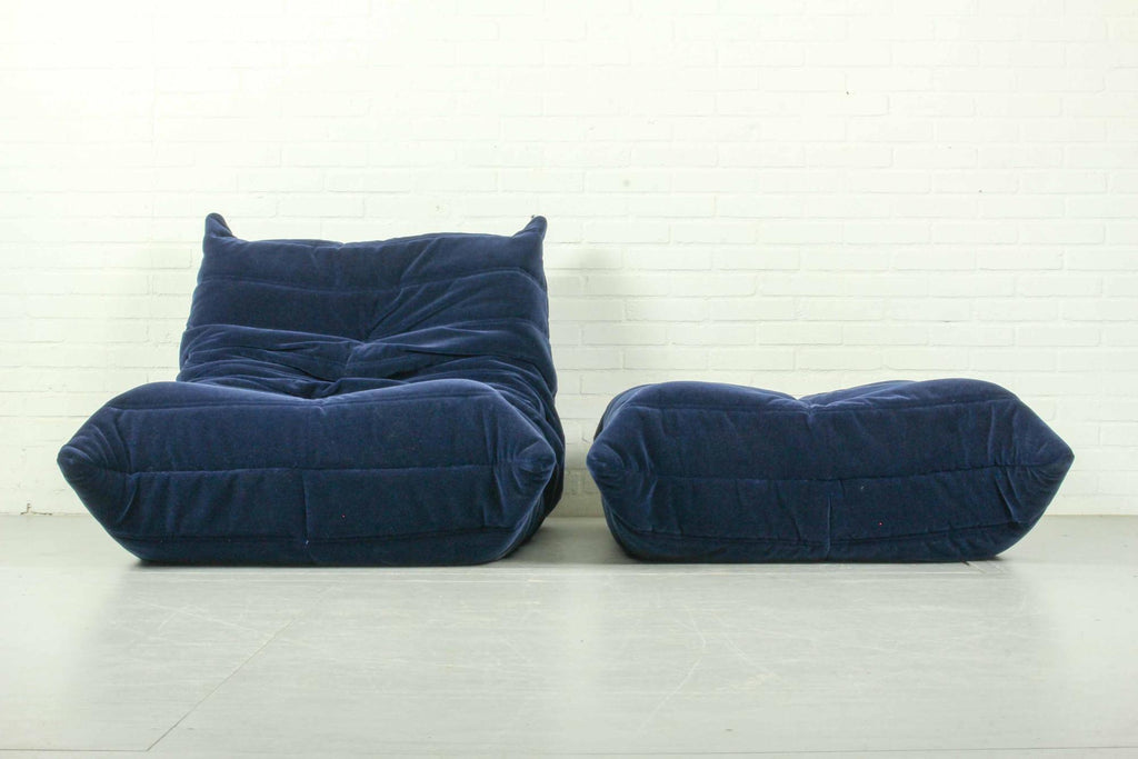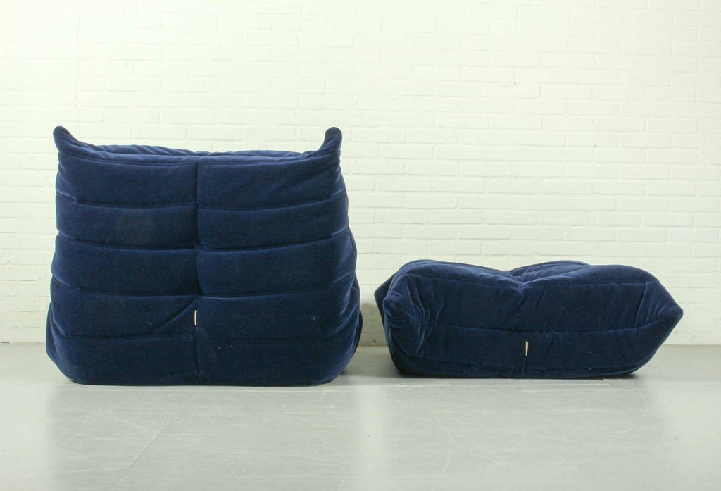 Togo Set of Armchair & Ottoman in Beatiful Blue Mohair, Ligne Roset 1970s