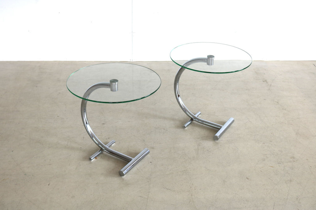 빈티지 커피 테이블 | 사이드 테이블 | 70년대 | 유리 기간 | 70년대 디자인 | 알 수 없는 조건 | 좋은 | 사용 크기의 가벼운 징후 | 50 x 50 x 50(hxwxd) 상세 정보 | 크롬; 유리; 2 개 가능; 품목 번호 | 2099년