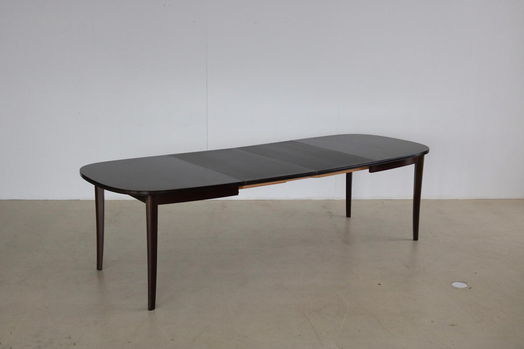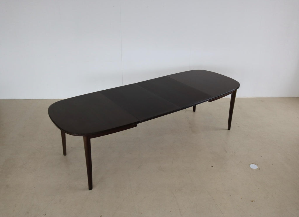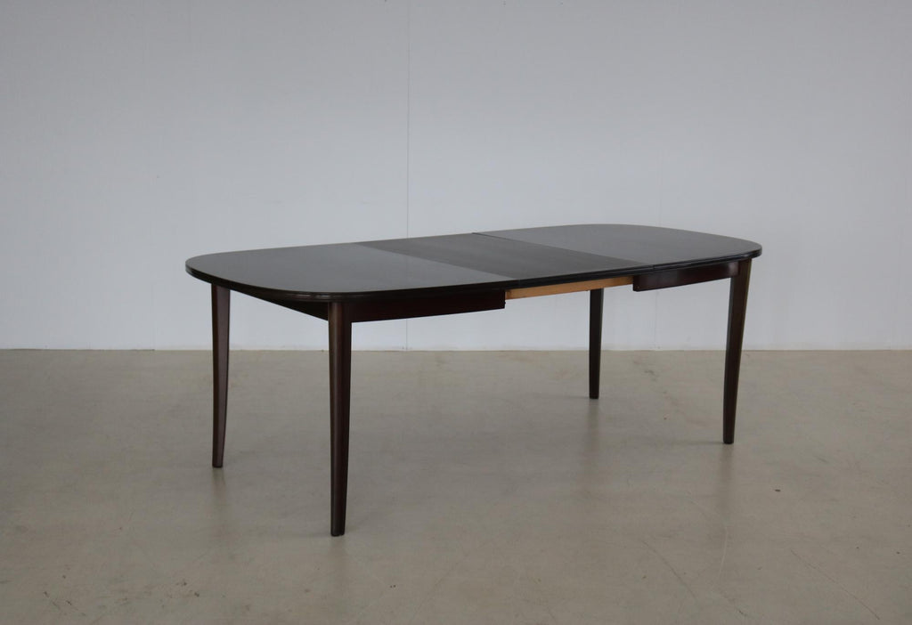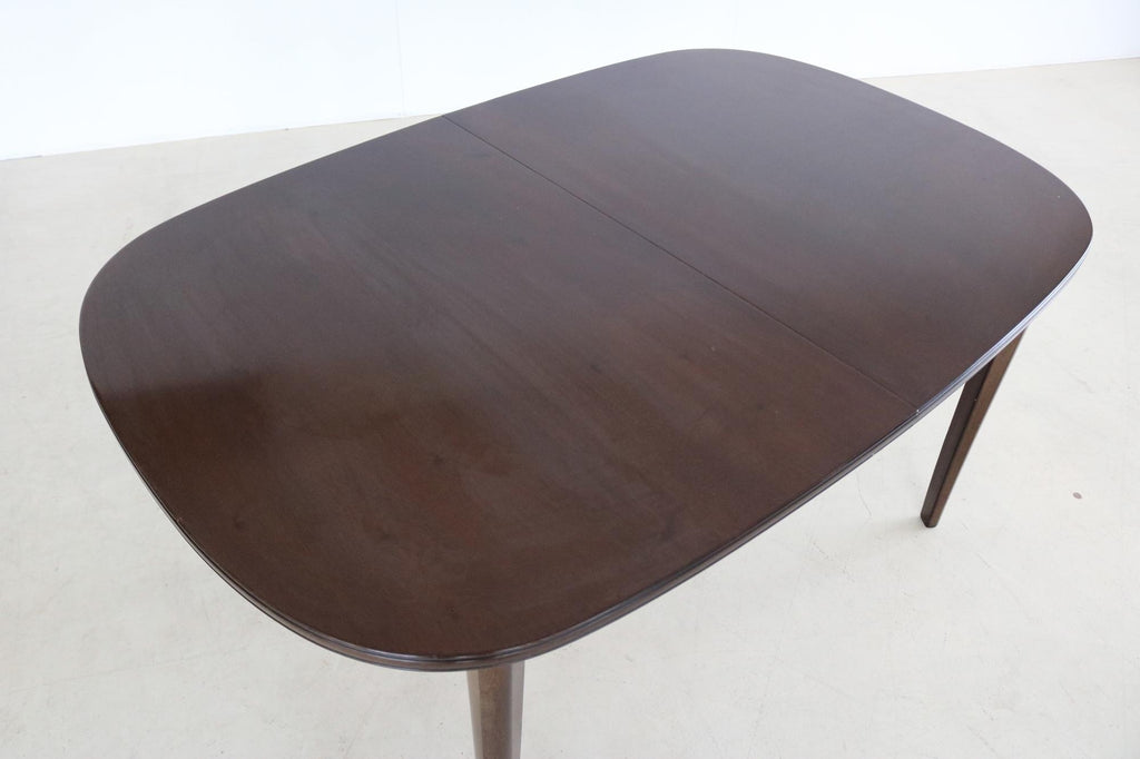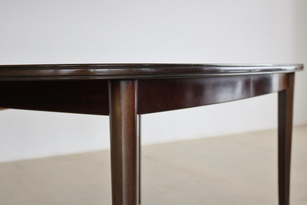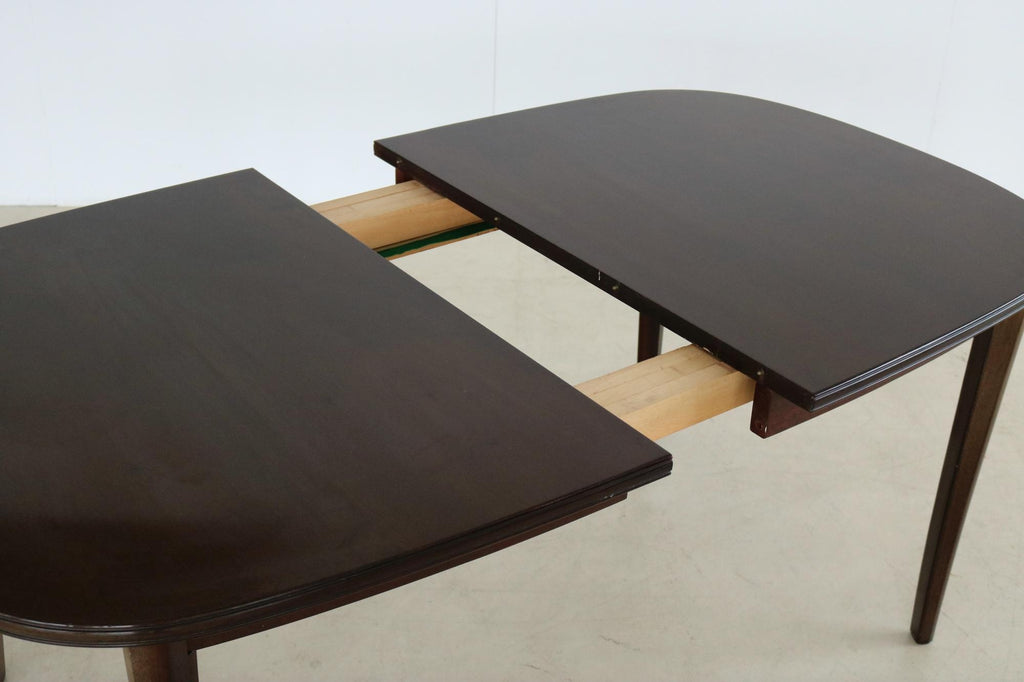 빈티지 식탁 | 테이블 | 확장 가능 | 50대 | 덴마크 기간 | 1950년대 디자인 | 알 수 없음 | 덴마크 조건 | 좋은 | 사용 크기의 가벼운 징후 | 72 x 150 x 98(hxwxd) + 각 55cm 테이블 상판 2개; 세부 정보 | 마호가니; 확장 가능; 일치하는 의자 사용 가능; 품목 번호 | 1879년