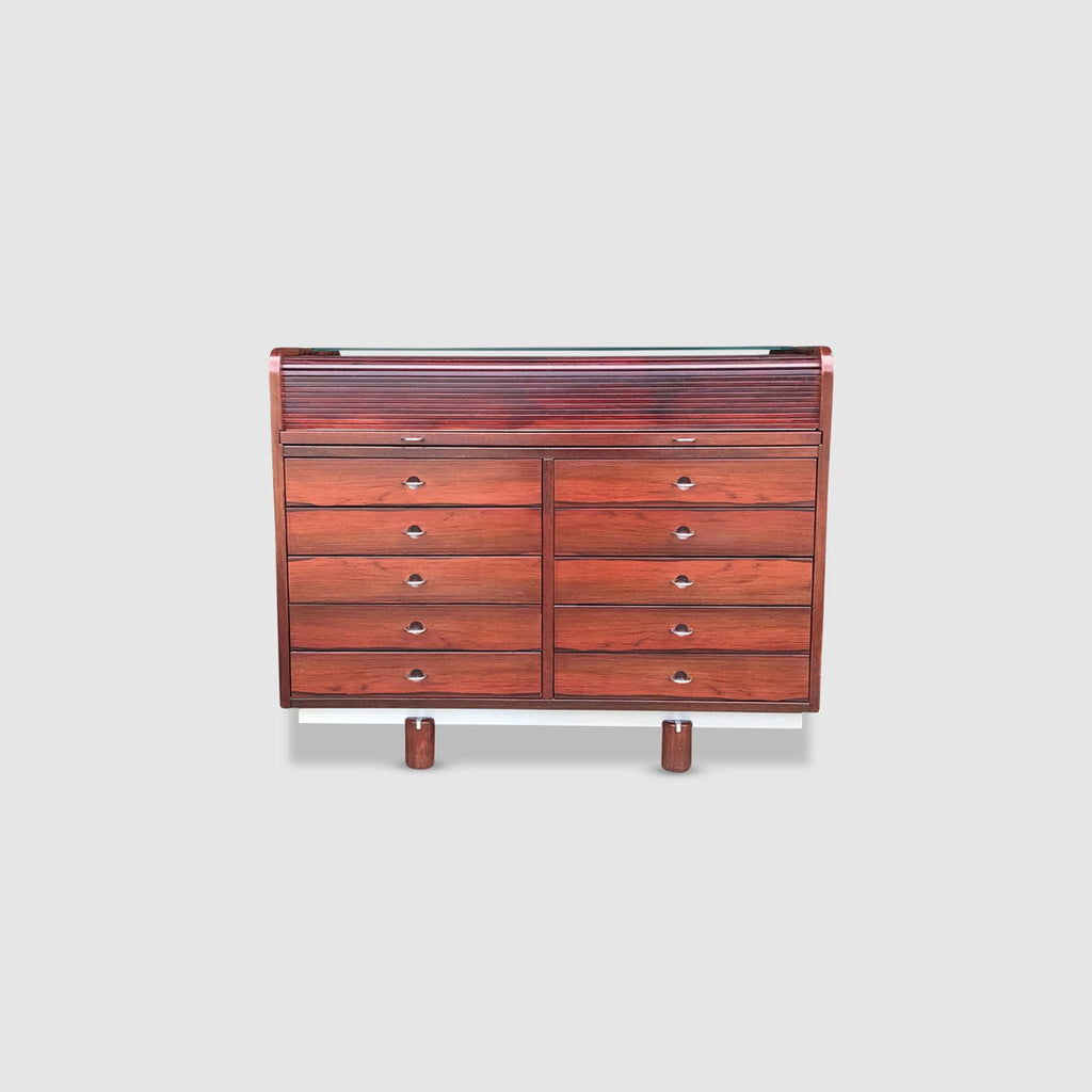 804 rosewood rolltop desk by Gianfranco Frattini for Bernini 1960s