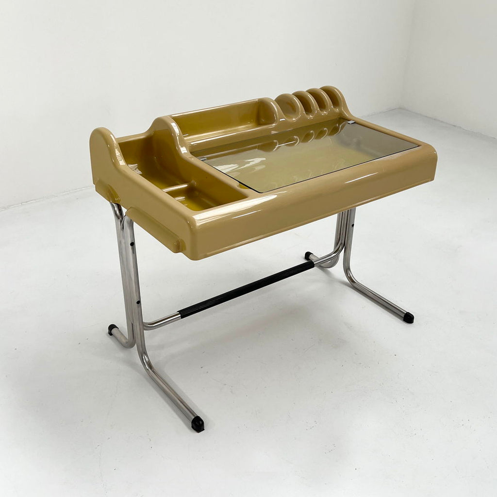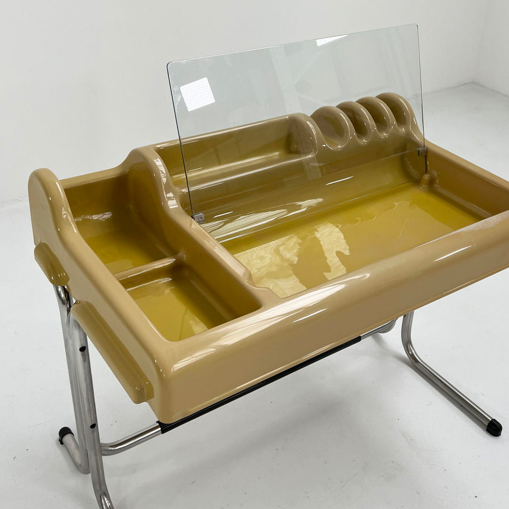 디자이너 - Vittorio Parigi & Nani Prina 프로듀서 - Molteni 모델 - Orix 데스크 디자인 기간 - 70년대 치수 - 너비 100cm x 깊이 63cm x 높이 82cm 재료 - 플라스틱, 스틸 색상 - 머스타드, 실버 경년 및 사용에 따라 가벼운 마모. 램프가 없습니다. 플라스틱이 약간 변색되었지만 조화롭게 유지됩니다. 자세한 내용은 사진을 참조하십시오.