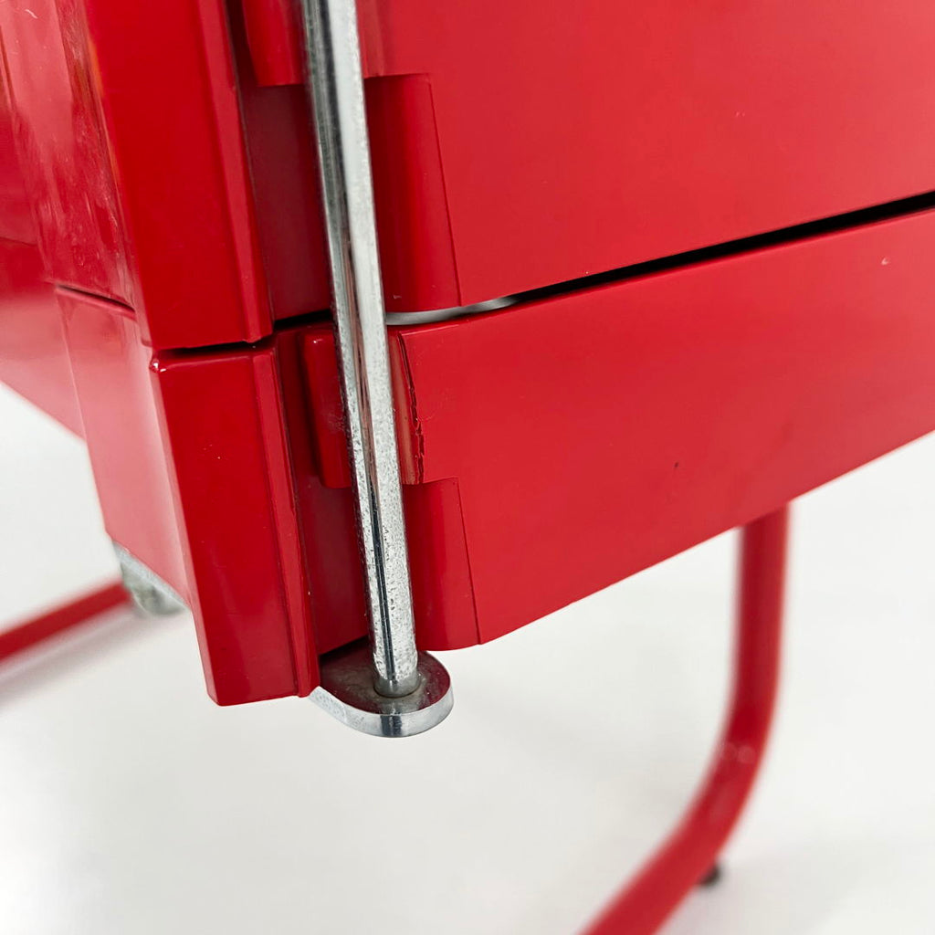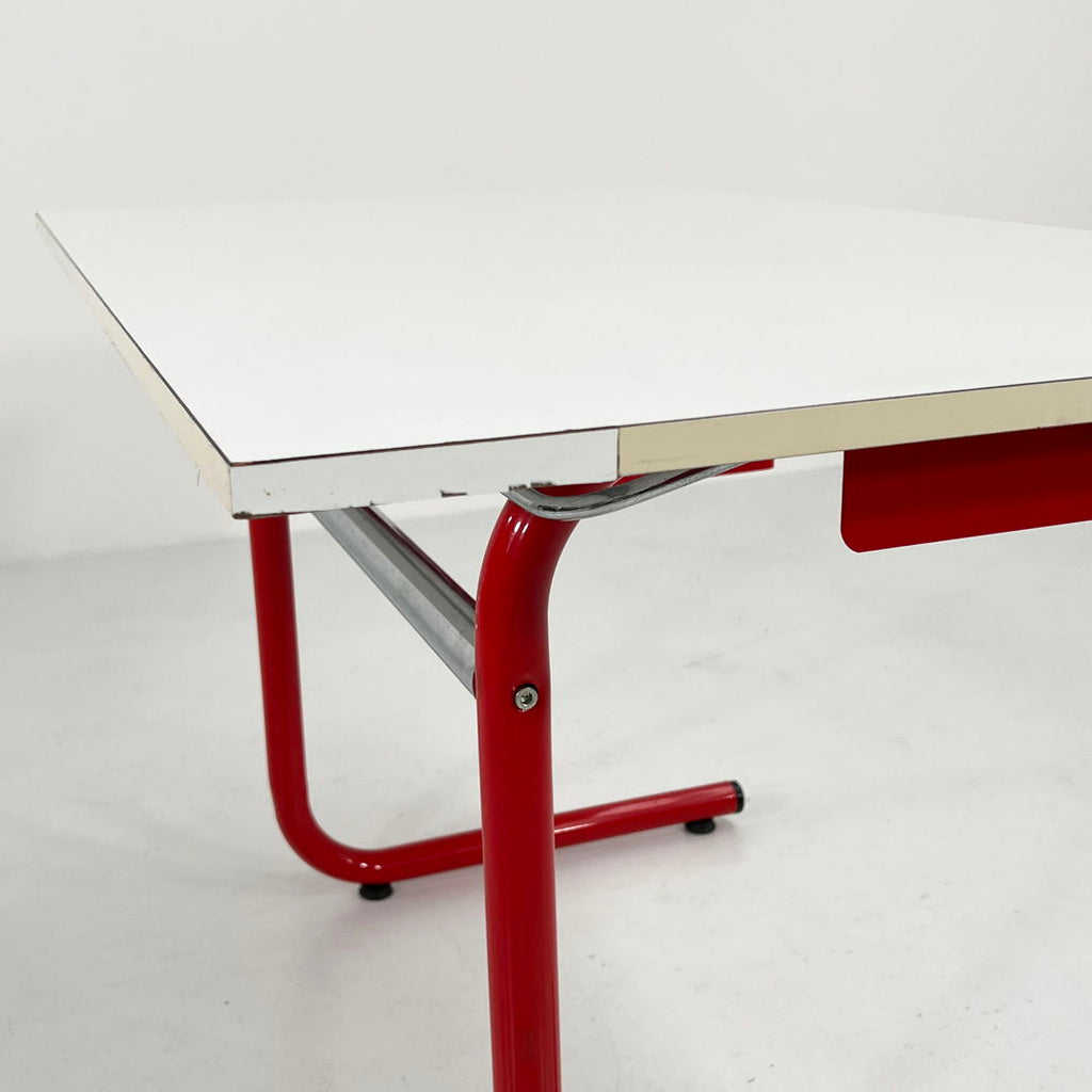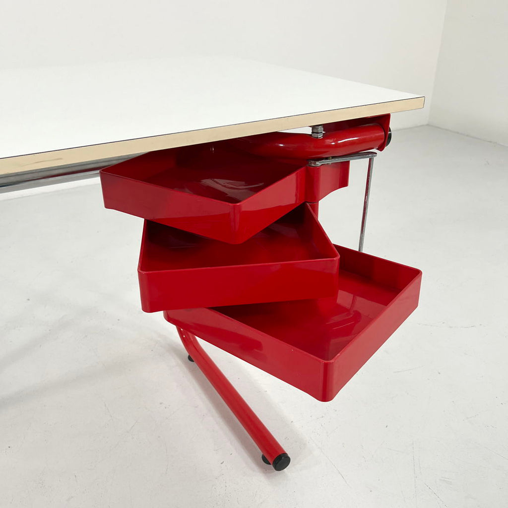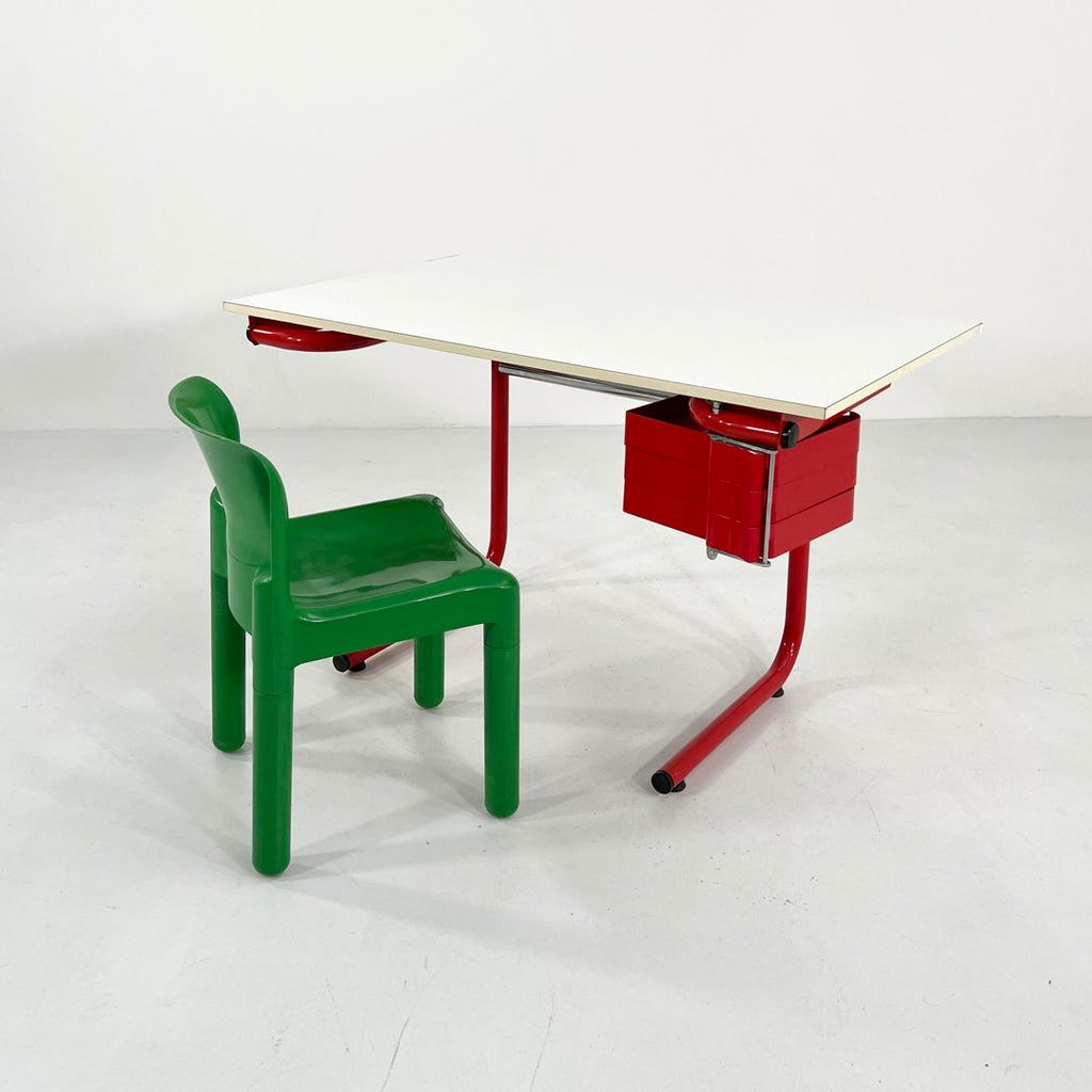 Red Drafting Table/Desk by Joe Colombo for Bieffeplast, 1970s Designer - Joe Colombo Producer - Bieffeplast Model - Drafting Table/Desk Design Period - Seventies Measurements - 폭 125cm x 깊이 74cm x 높이 75cm 재료 - 적층, 금속, 플라스틱 색상 - 빨간색, 흰색 상태 - 좋은 의견 - 경년 및 사용과 일치하는 가벼운 마모. 라미네이트는 특히 가장자리에 노화 및 황변의 흔적이 있습니다. 가벼운 흠집이 있습니다. 마지막 플라스틱 서랍에는 금속 부분에 닿는 부분에 플라스틱 요소가 없습니다. 자세한 내용은 사진을 참조하세요.