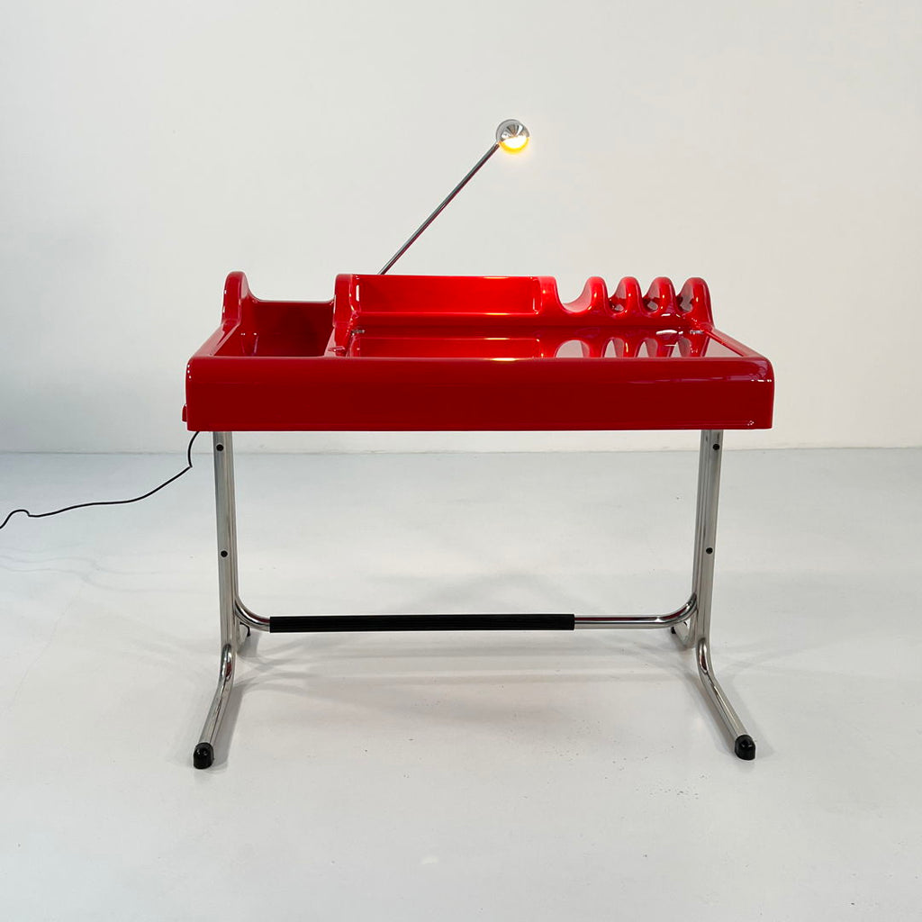 Molteni를 위한 Vittorio Parigi & Nani Prina의 레드 Orix 책상, 1970년대 디자이너 - Vittorio Parigi & Nani Prina 프로듀서 - Molteni 모델 - Orix 책상 디자인 기간 - 70년대 치수 - 폭 100cm x 깊이 63cm x 높이 82cm 재질 - 플라스틱, 스틸 색상 - 레드, 실버 상태 - 좋은 코멘트 - 연식 및 사용감에 맞게 가벼운 착용감입니다.