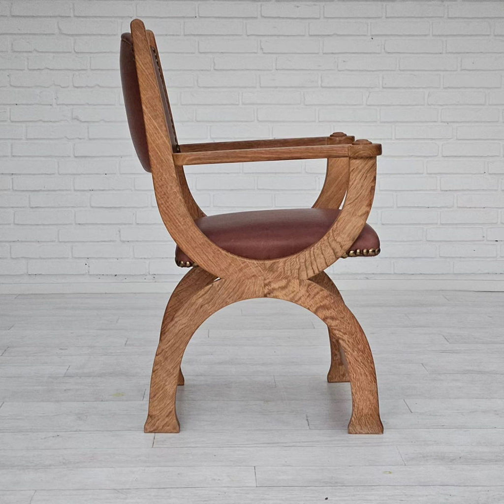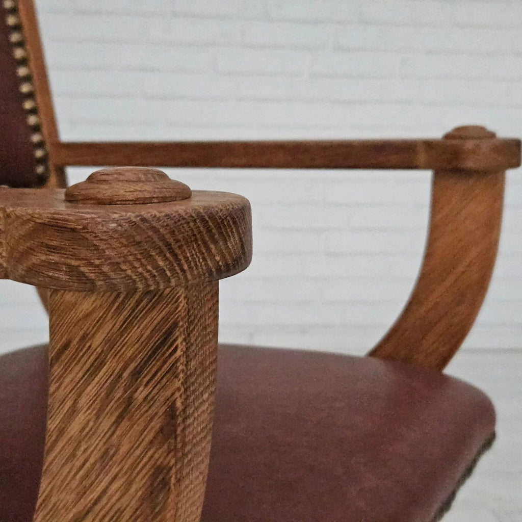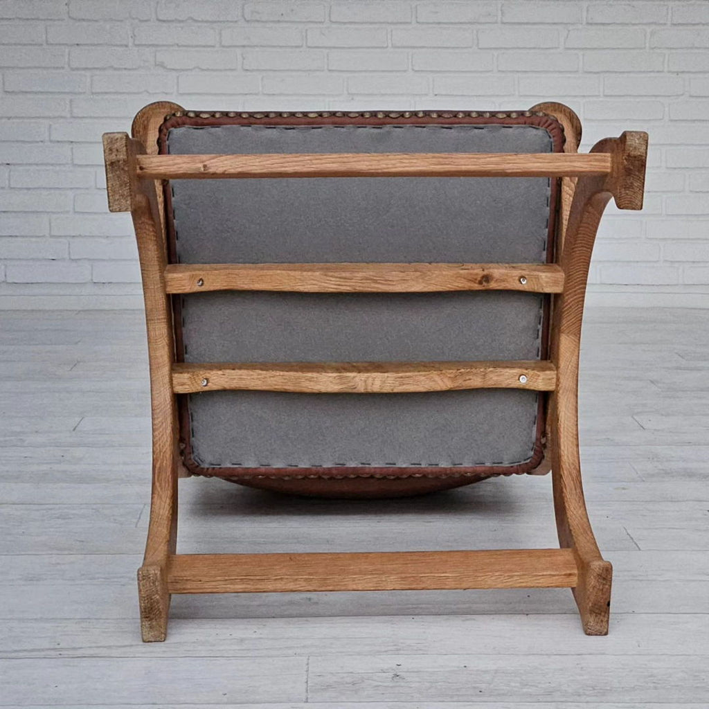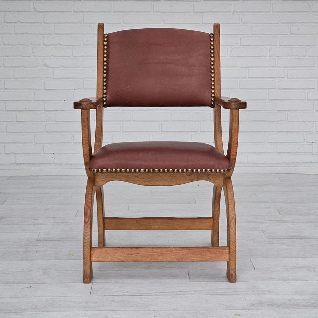 1950s, Danish design, reupholstered armchair, natural brown leather, oak wood.