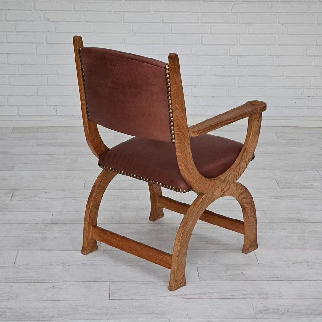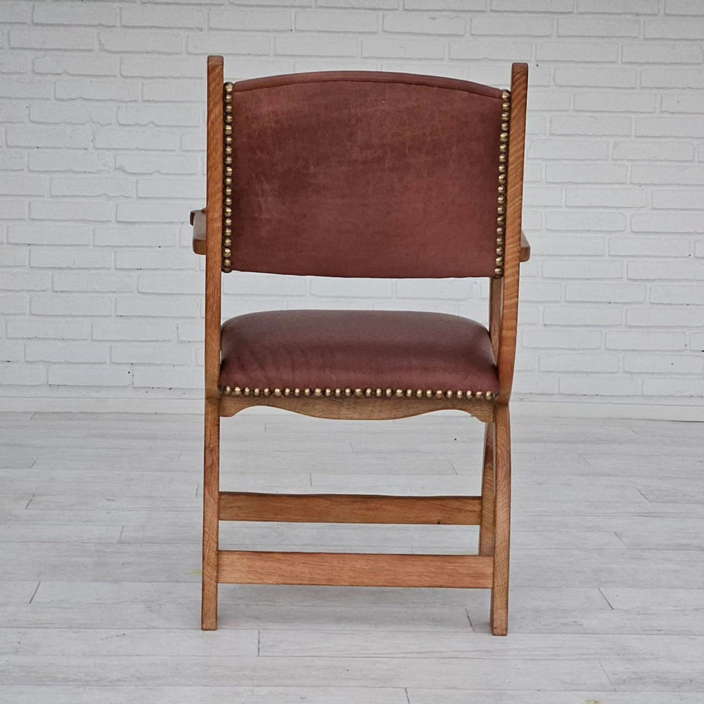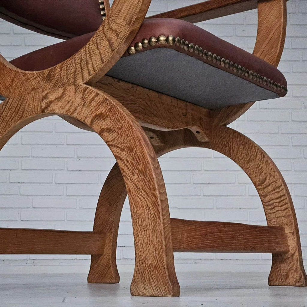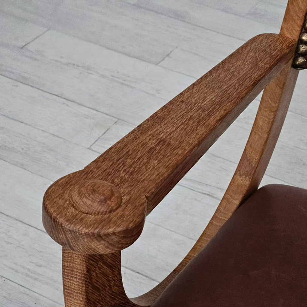 1950s, Danish design, reupholstered armchair, natural brown leather, oak wood.
