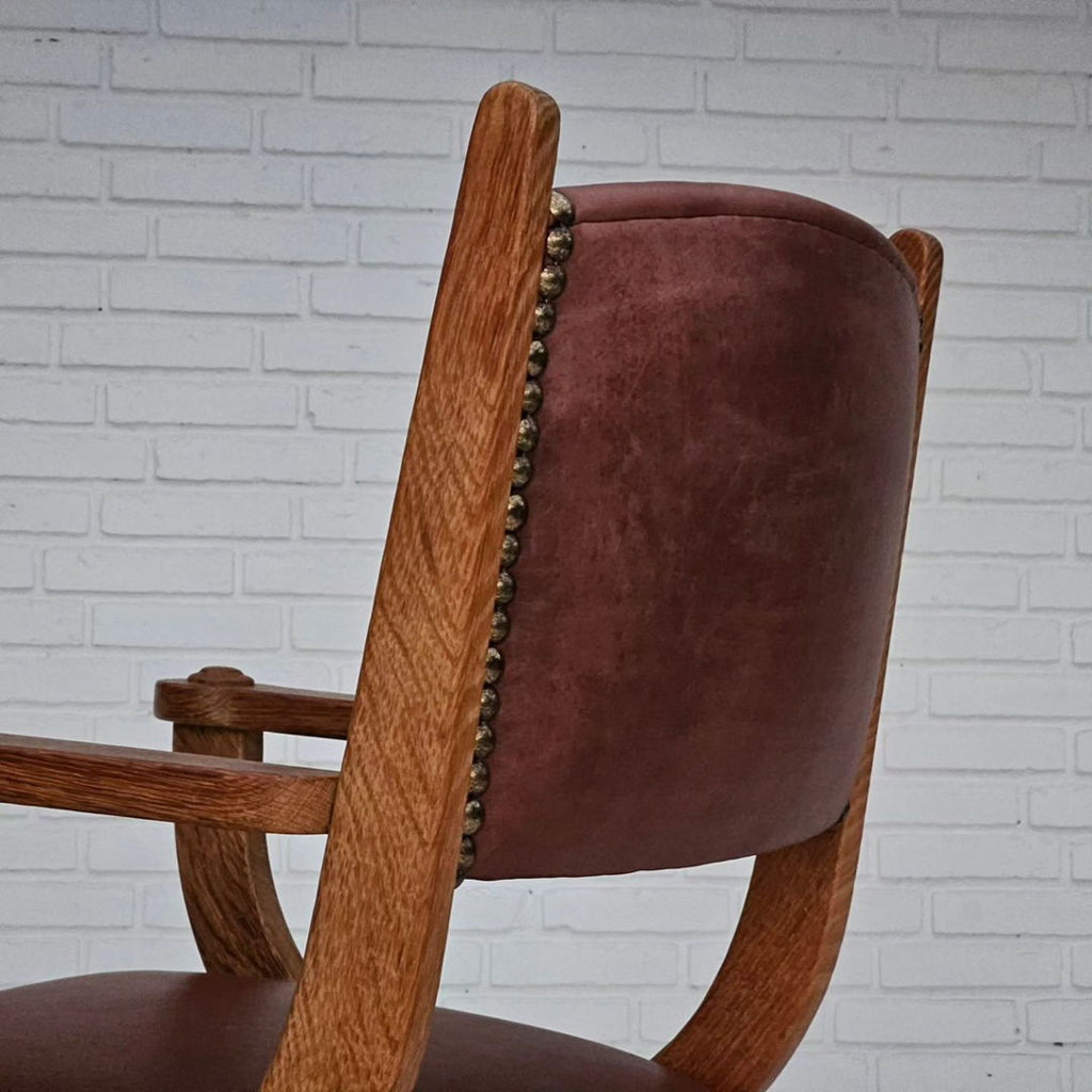 1950년대 덴마크 디자인. 고급 천연 갈색 가죽으로 다시 덮은 안락의자. 재생된 참나무. 1950년대경 덴마크의 가구 제조업체에서 제조되었습니다. 장인이 다시 덮었습니다.