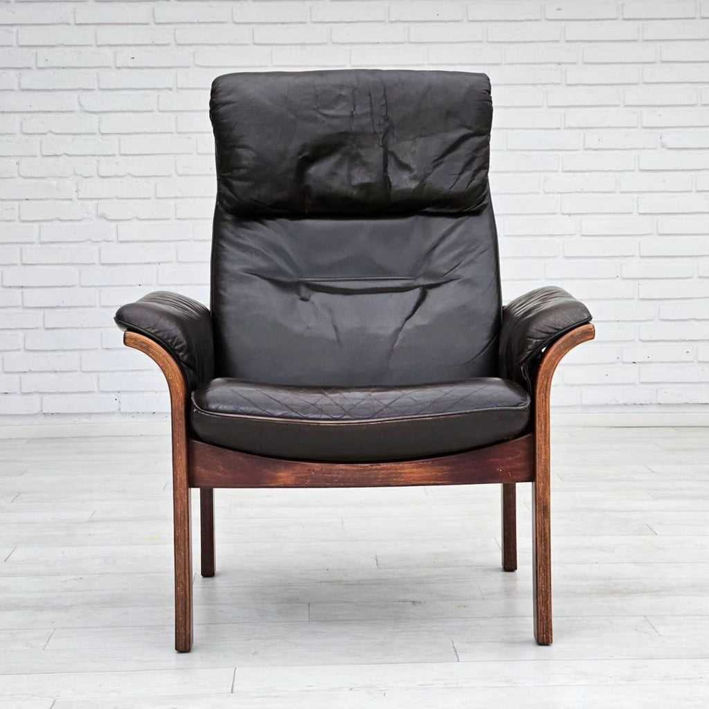 1970s, Swedish design by Göte Möbler adjustable lounge chair, brown leather.