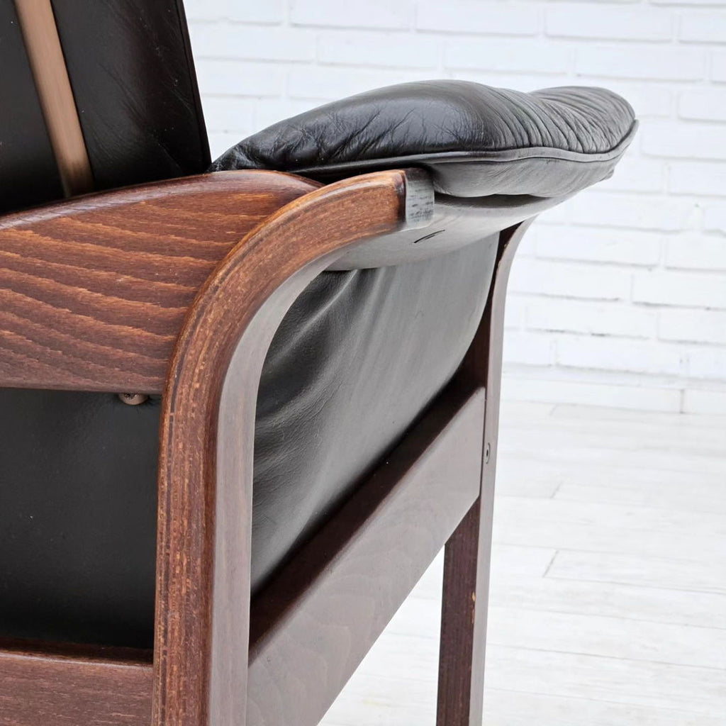 1970s, Swedish design by göte möbler. Adjustable seat with backrest. Original very good condition: no smells and no stains. Brown leather beech wood.