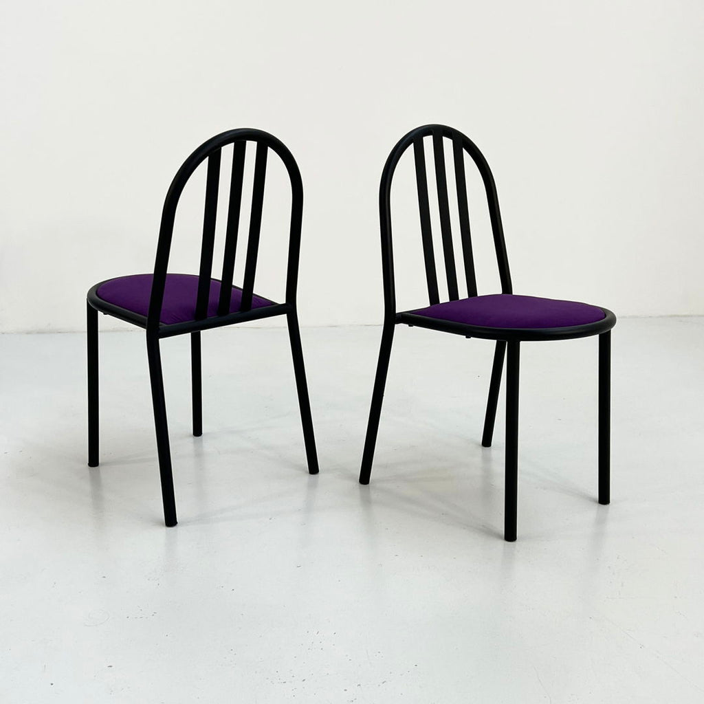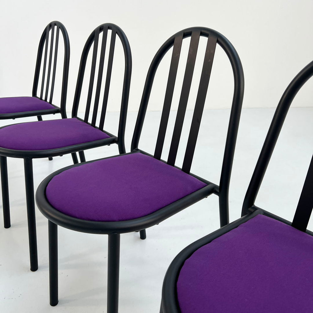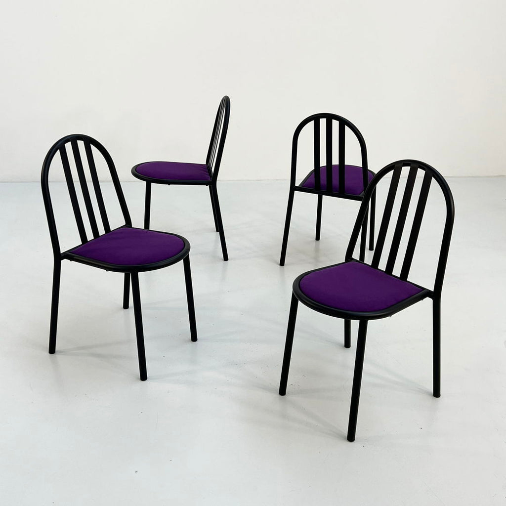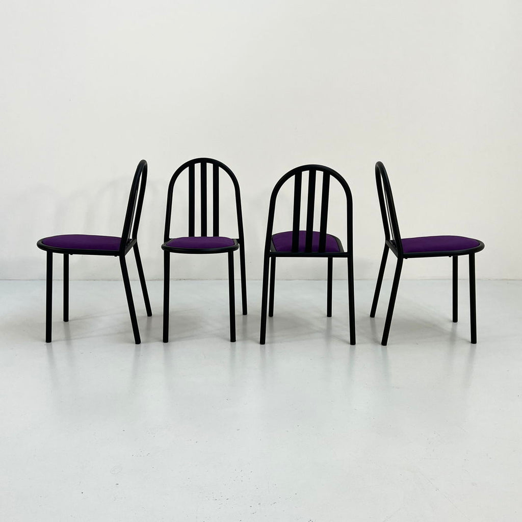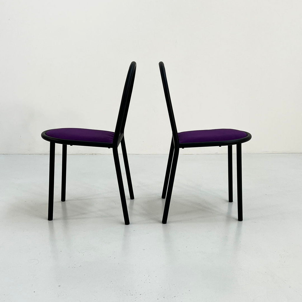 Pallucco Italia를 위한 Robert Mallet-Stevens의 보라색 패브릭 No.222 의자 4개, 1980년 디자이너 - Robert Mallet-Stevens 프로듀서 - Pallucco Italia 모델 - No.222 의자 디자인 기간 - 80년대 측정 - 폭 40cm x 깊이 40cm x 높이 82cm x 시트 높이 46 cm 소재 - 메탈, 패브릭 색상 - 블랙, 퍼플 상태 - 좋음 코멘트 - 사용감 및 사용감에 따라 가벼운 착용감입니다.