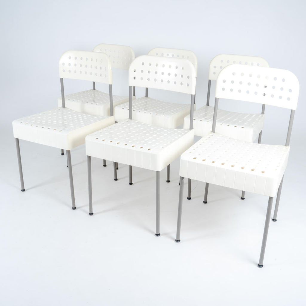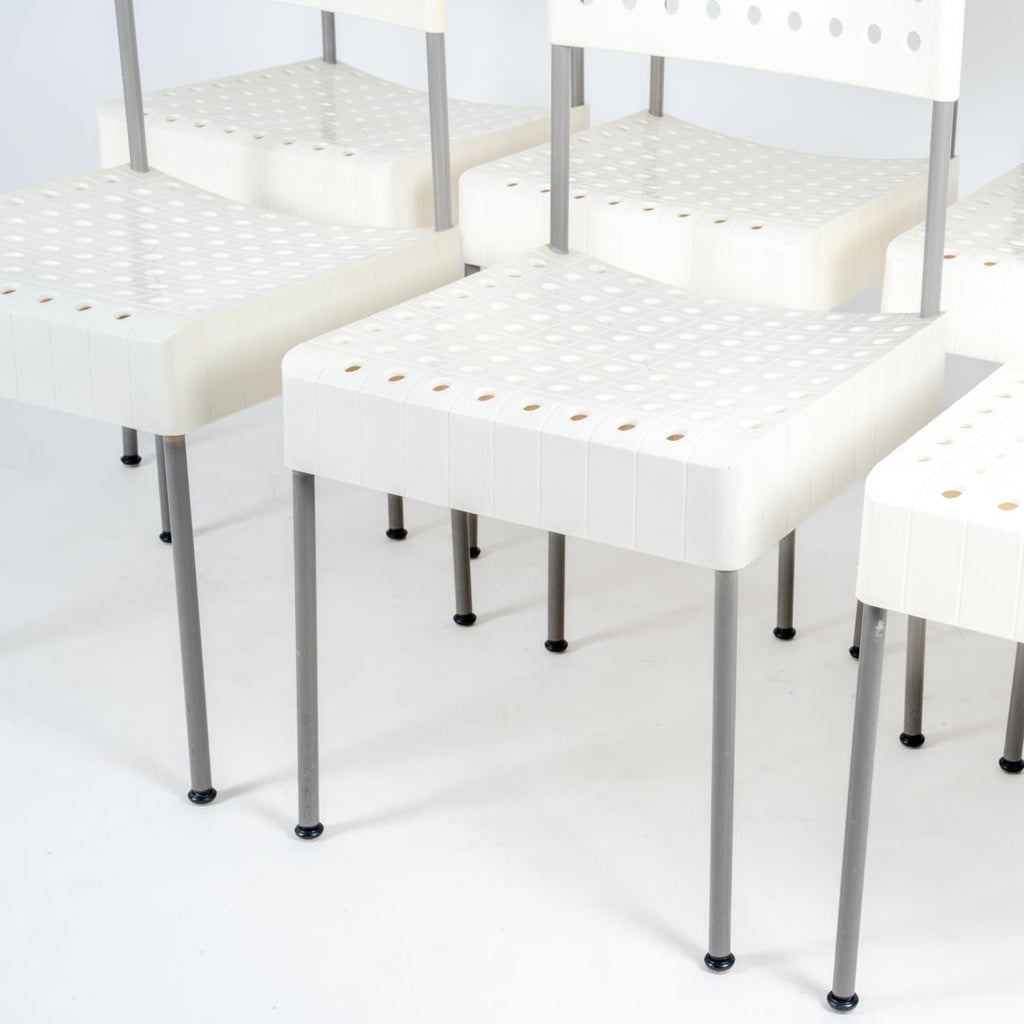 "박스" 의자 4개 세트입니다. 1971년 Enzo Mari가 Castelli를 위해 디자인한 제품입니다. 의자는 중고 빈티지 상태로 좌석 표면에 긁힌 자국이 많습니다. 그럼에도 불구하고 여전히 아름답고 놀랍도록 편안한 디자인 아이콘입니다! 의자는 8개 준비되어 있습니다. 가격은 4개 세트 가격입니다.