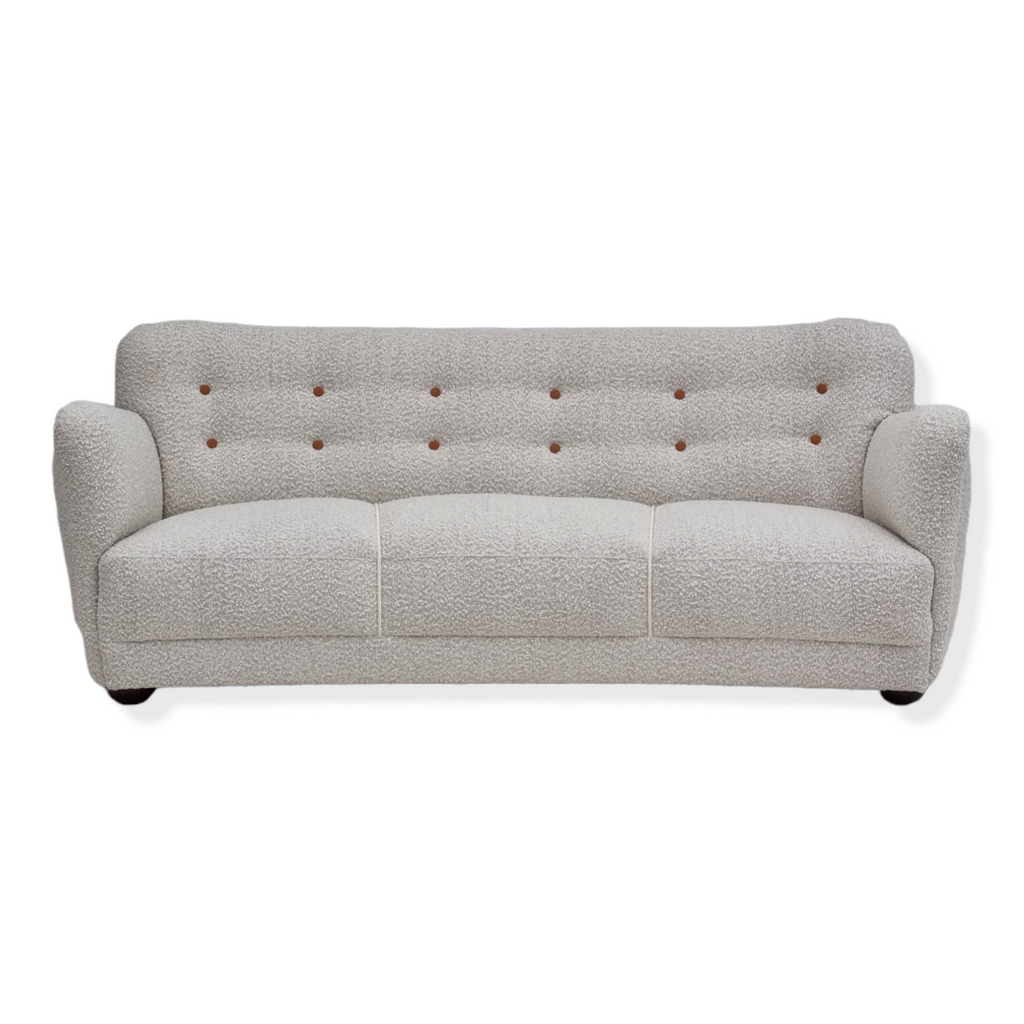 60s, renovated Danish 3 pers. "banana" sofa, upholstery fabric