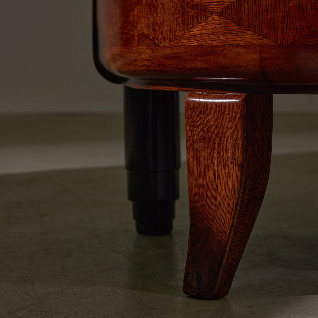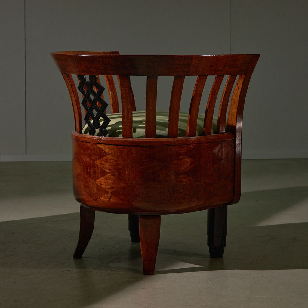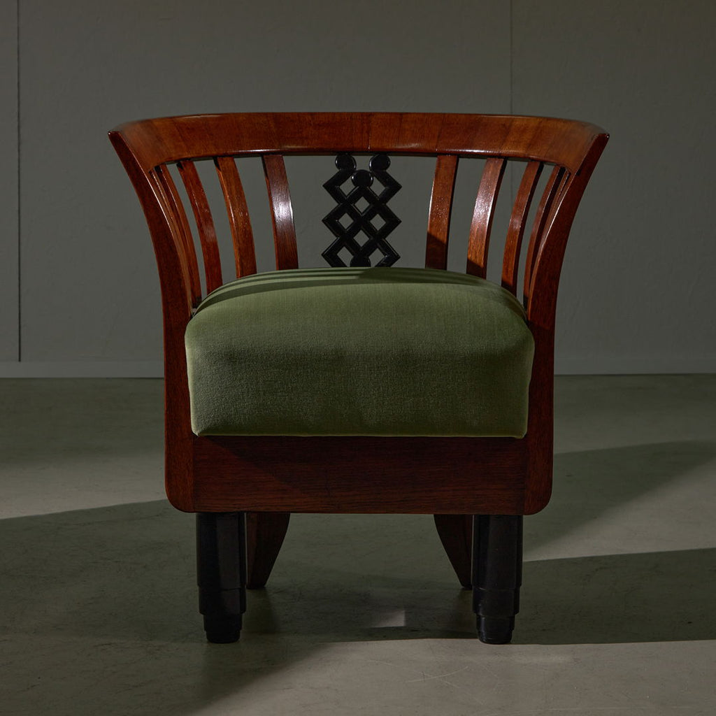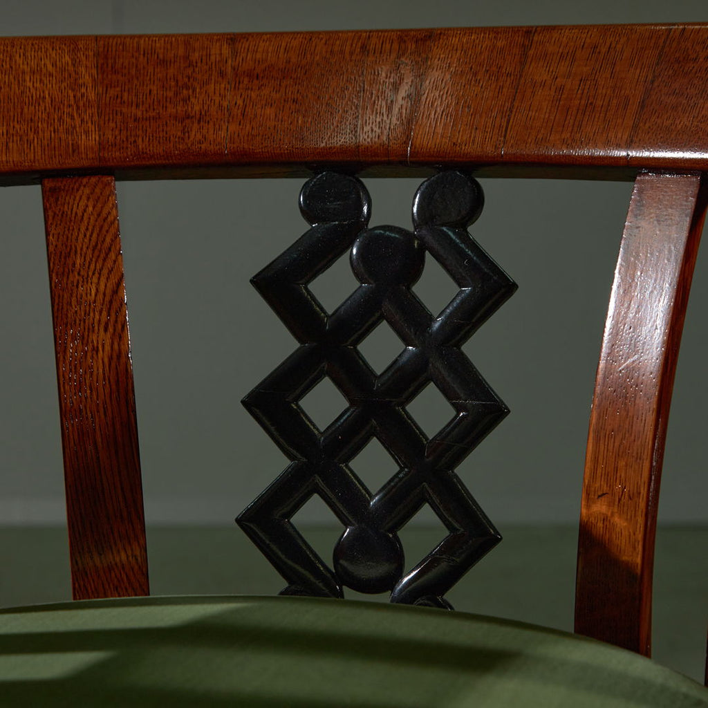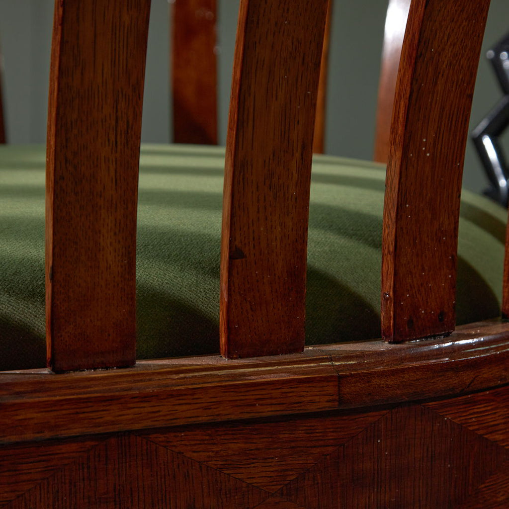 이 인상적인 듀오는 녹색 벨벳 덮개와 복잡한 장식 액센트가 특징입니다. 뒷면의 나무 디테일은 기발한 느낌을 더하고, 다리의 정교한 조각과 모양은 전문 장인의 솜씨를 보여줍니다. 시각적 매력 외에도 이 의자는 탁월한 편안함을 제공합니다. 아주 좋은 빈티지 상태로 약간의 세월과 사용 흔적이 있으며, 의자 중 하나는 그림과 같이 나무 부분에 약간의 틈이 있습니다. 2개 SKU 세트당 가격:GB0240