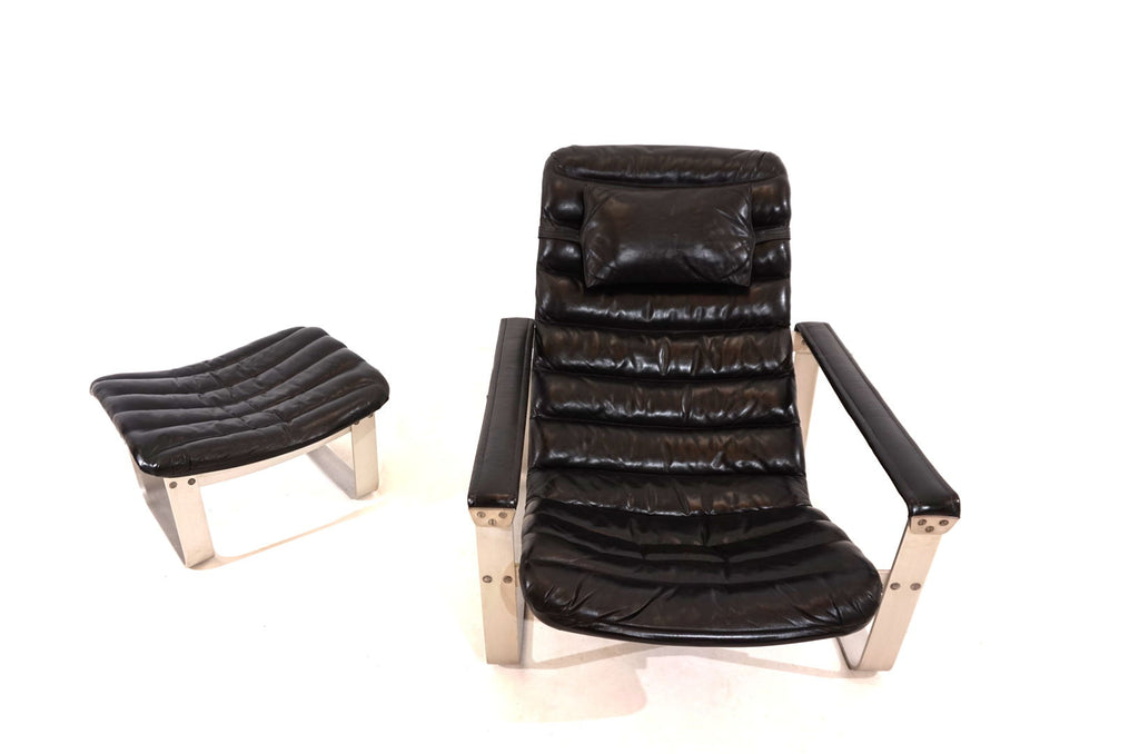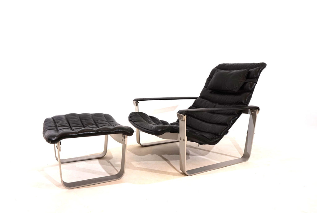 Asko Pulkka leather armchair with ottoman by Ilmari Lappalainen