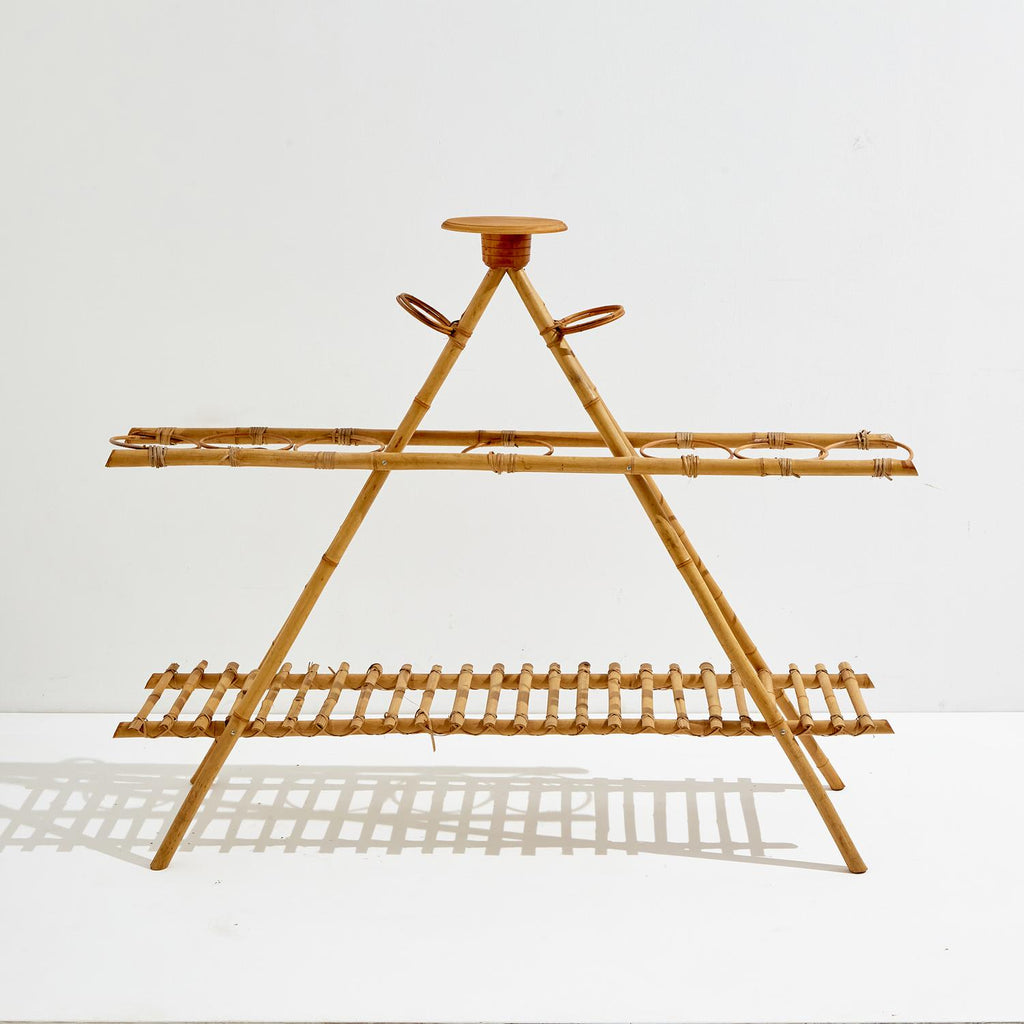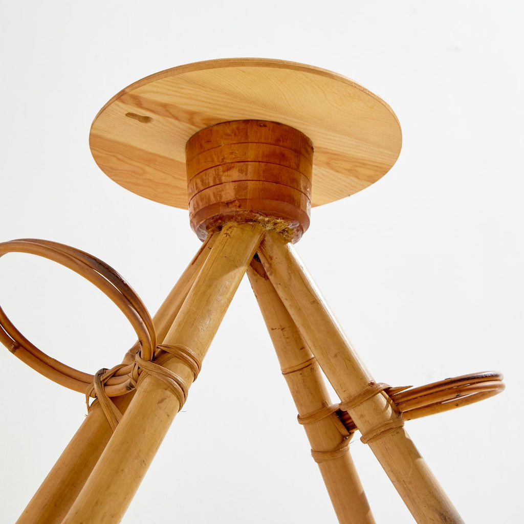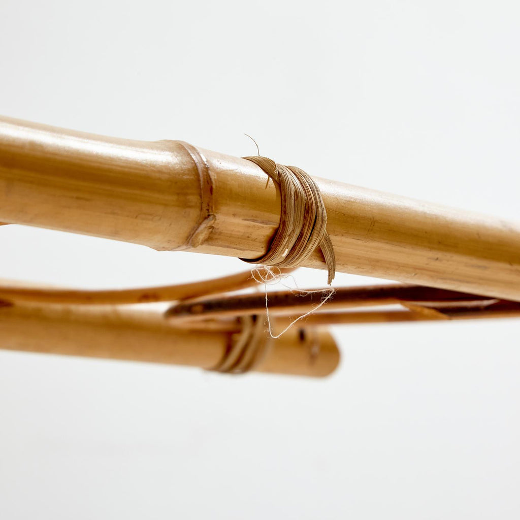 대나무 부분에 약간의 흠집이 있는 1980년대 대나무 꽃꽂이. 여러 식물을 고정하는 데 사용할 수 있습니다. 정원, 테라스 또는 인테리어 장식에 적합합니다.