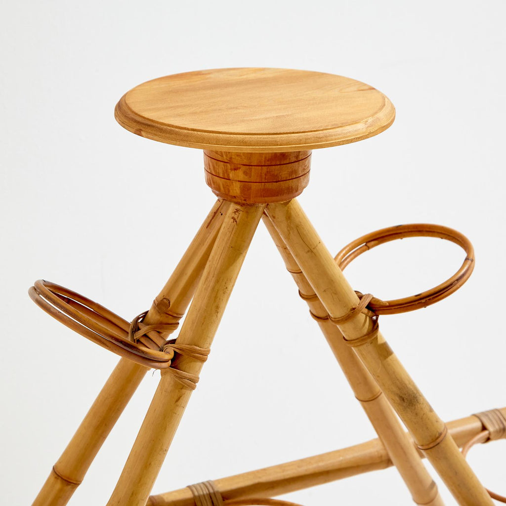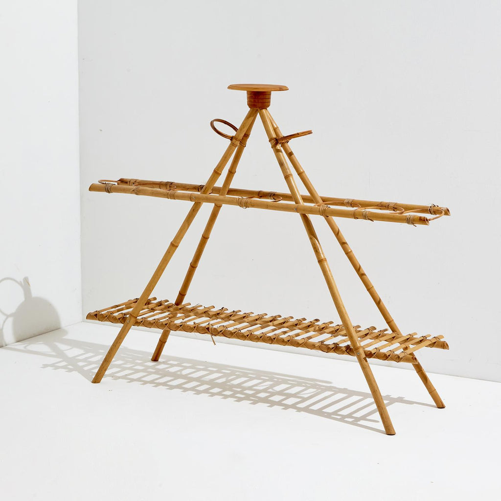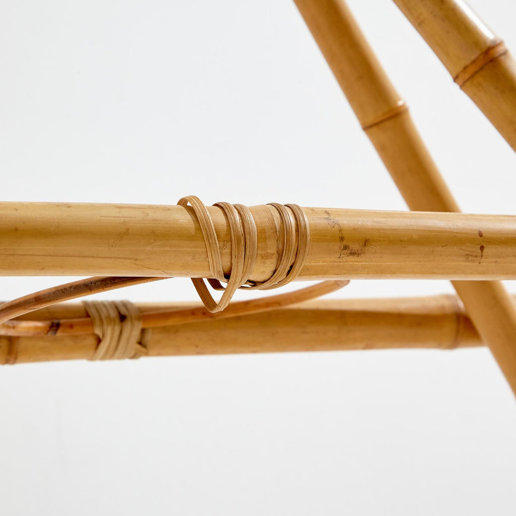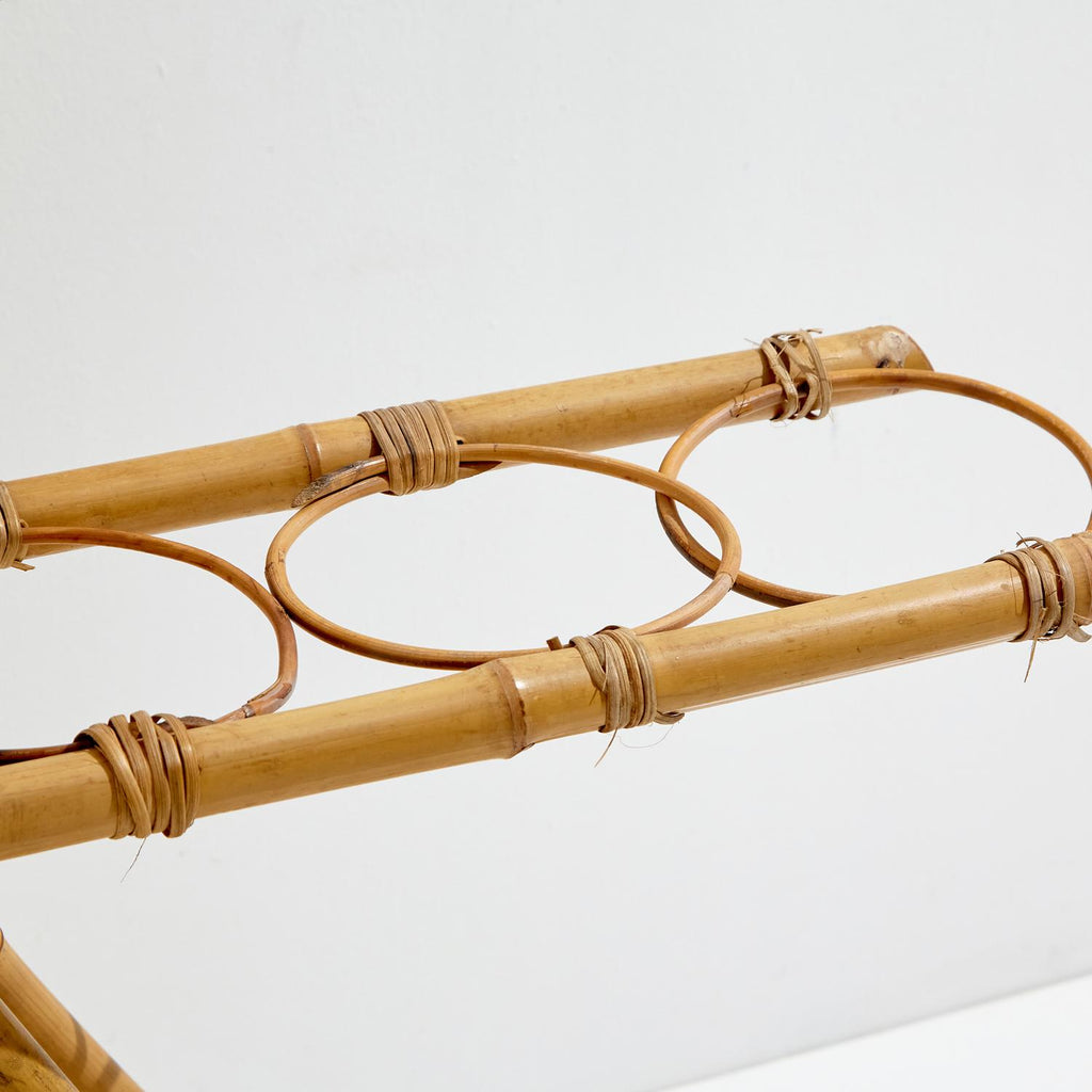 대나무 부분에 약간의 흠집이 있는 1980년대 대나무 꽃꽂이. 여러 식물을 고정하는 데 사용할 수 있습니다. 정원, 테라스 또는 인테리어 장식에 적합합니다.
