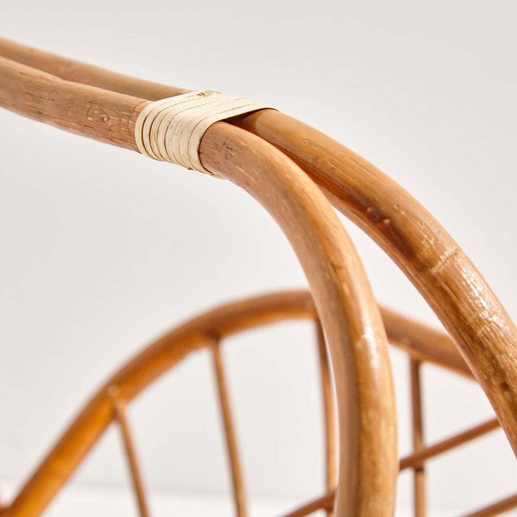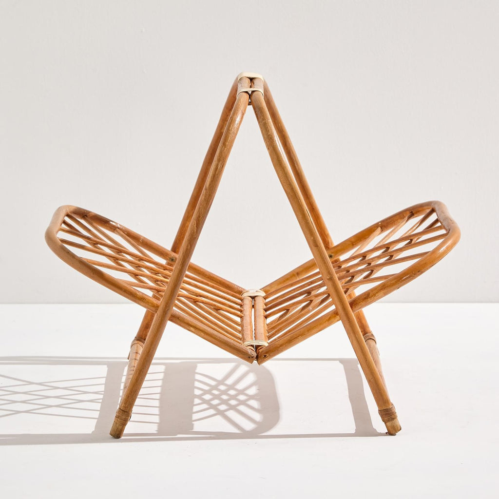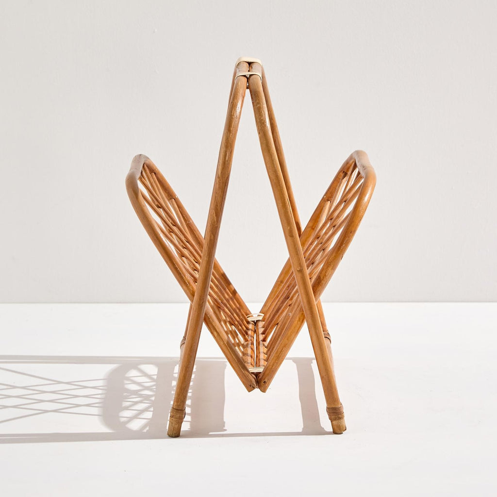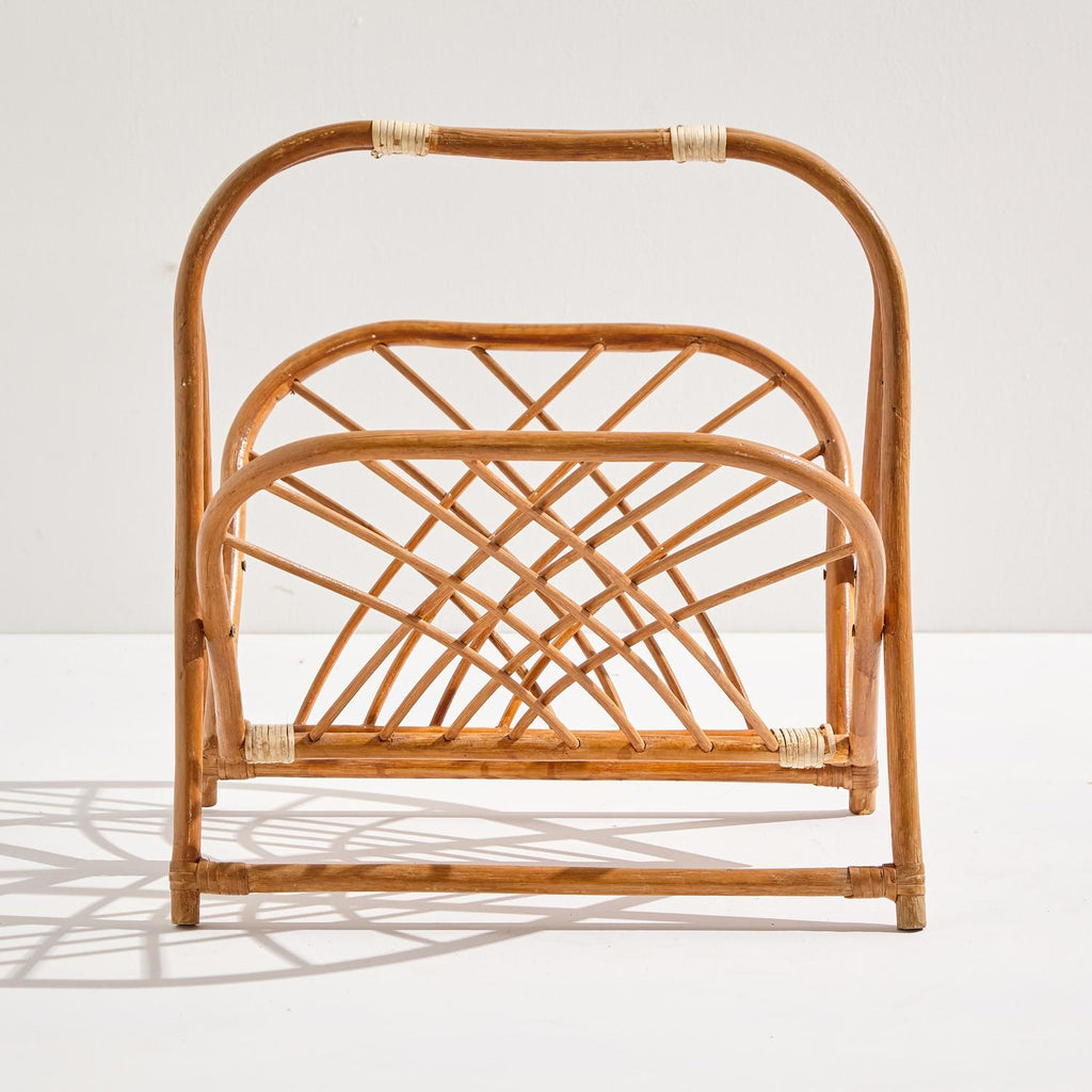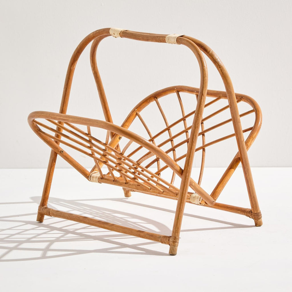 양호한 빈티지 상태의 일부 표면 흠집이 있는 대나무 잡지 꽂이.