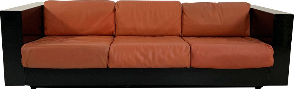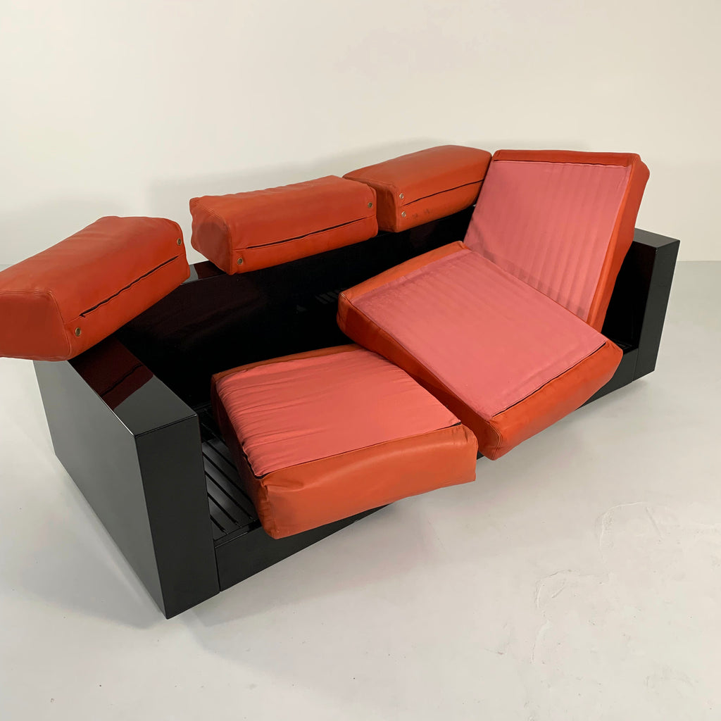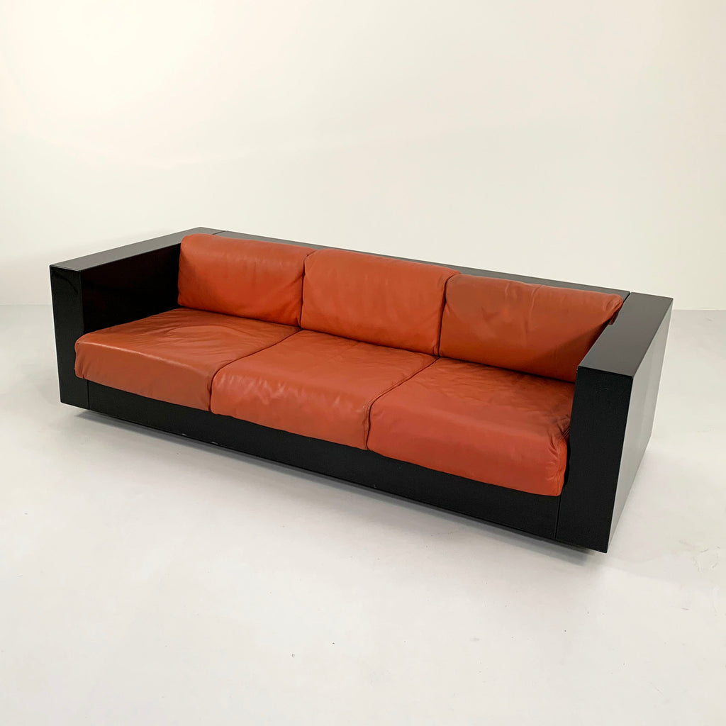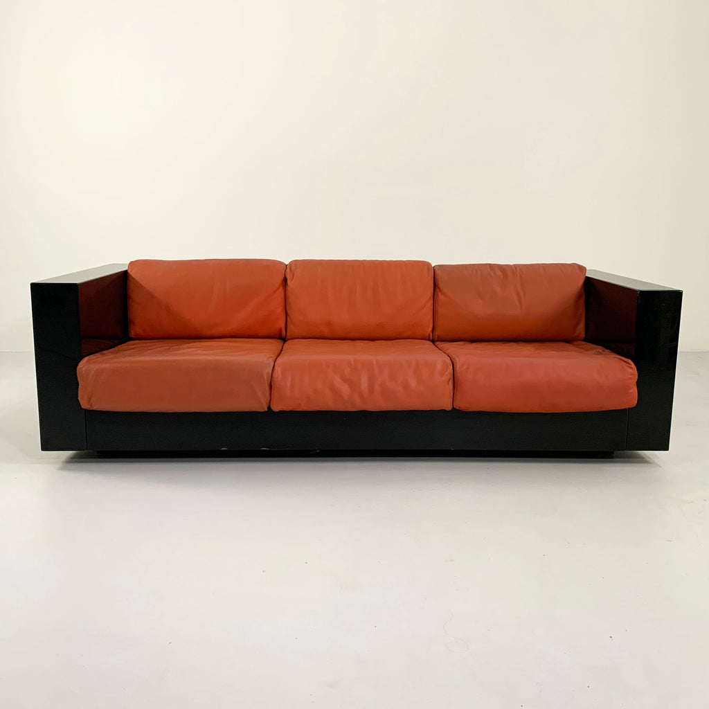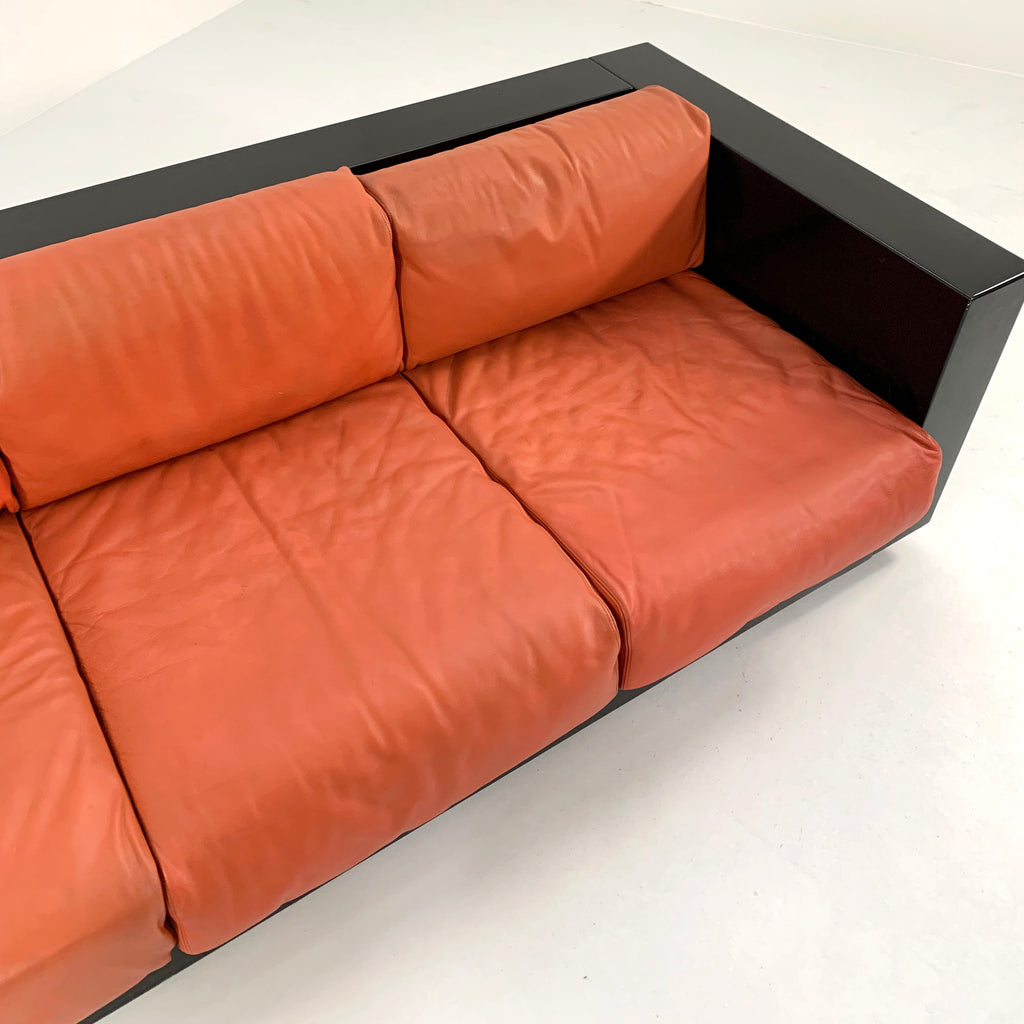Black and Cognac Saratoga sofa by Massimo & Lella Vignelli for Poltronova, 1960s