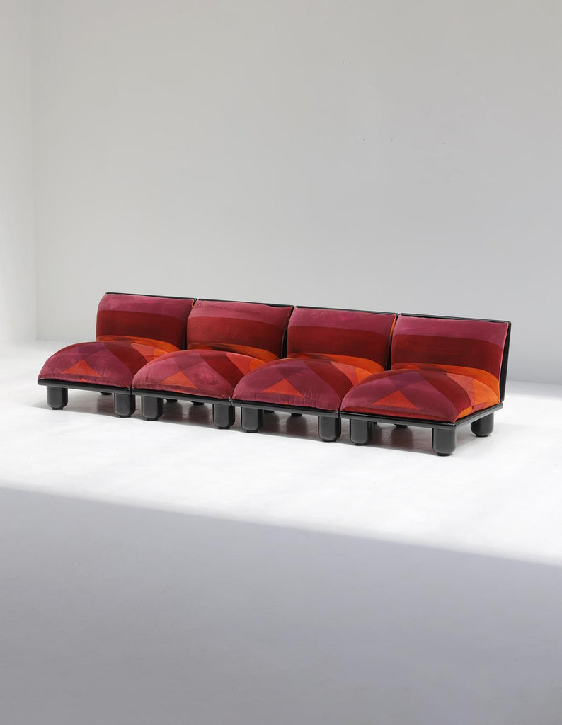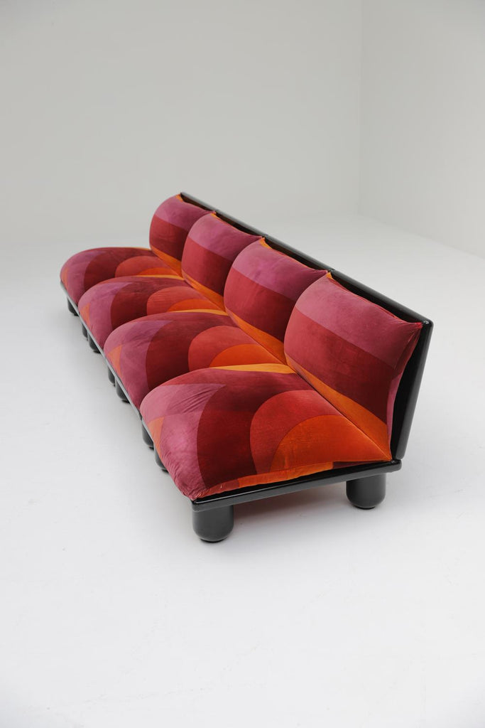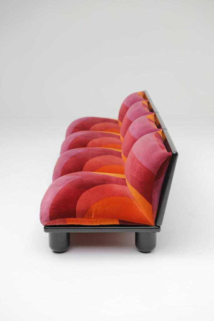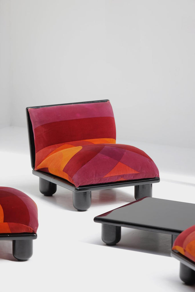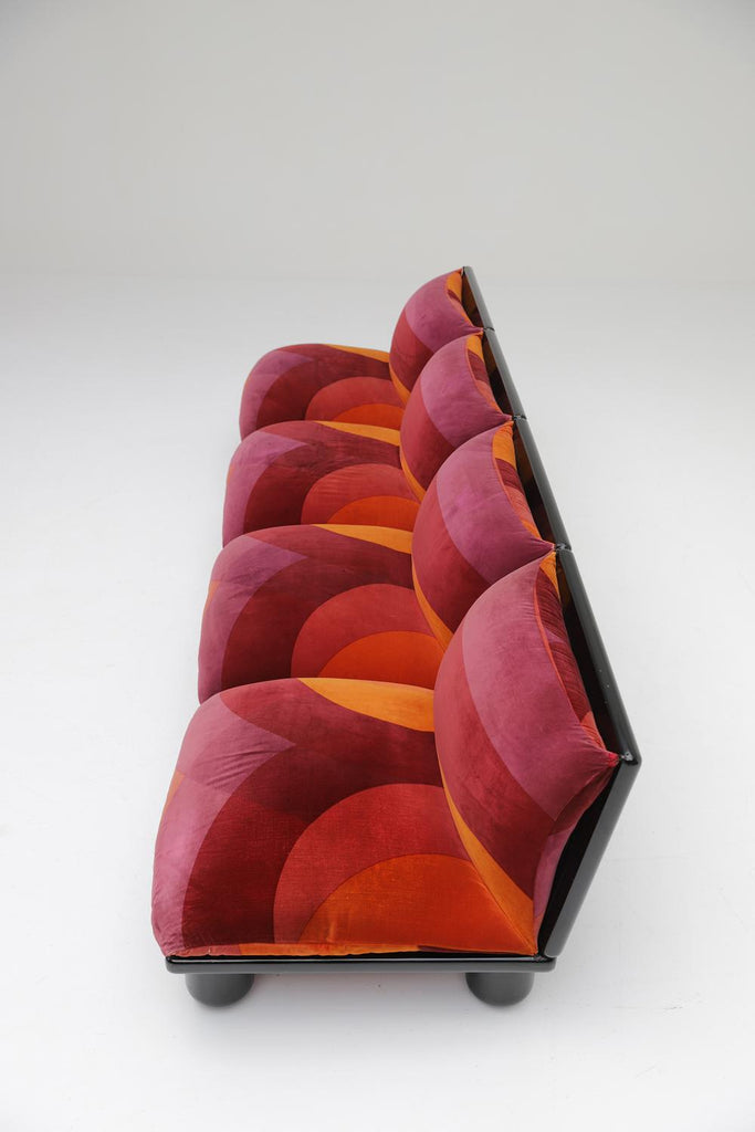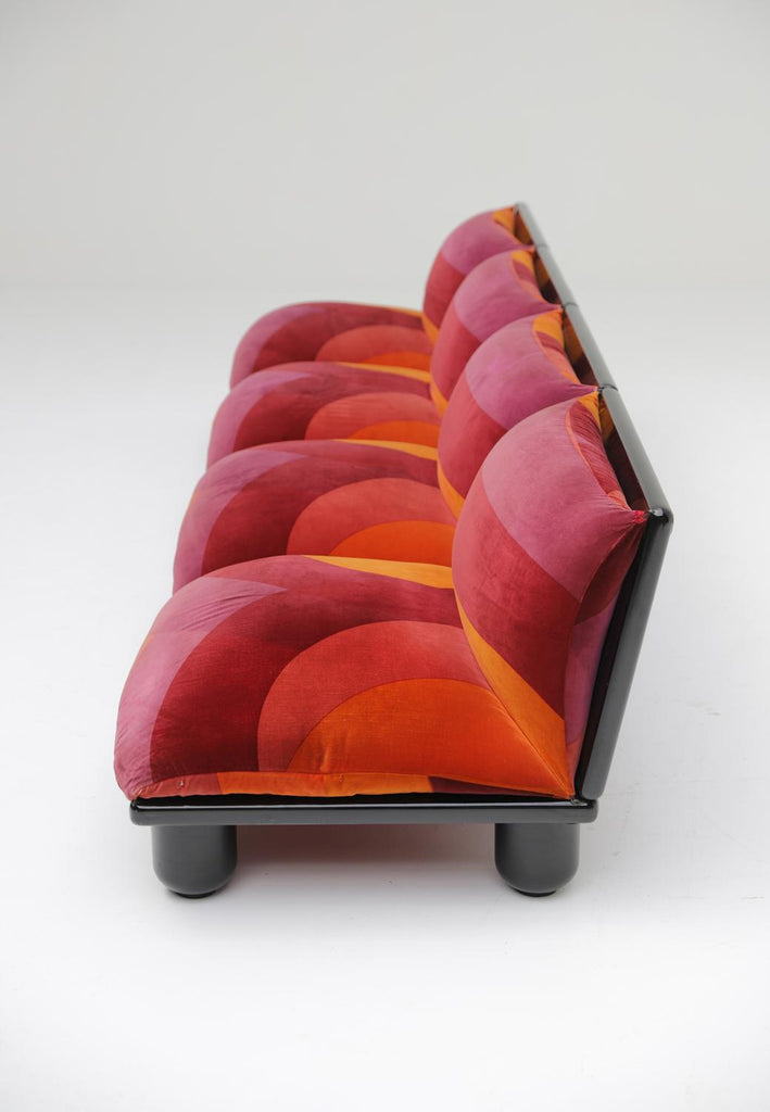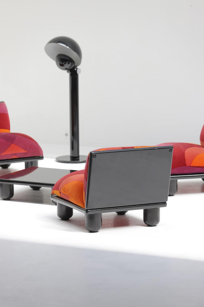 이 세트는 이미 오래전부터 제 위시리스트에 있었습니다! Carlo Bertoli Blop 소파 요소는 Rossi di Albizzate가 1972년에 제작했습니다. 50년이 지난 후에도 아주 잘 보존되어 여전히 매우 좋은 상태입니다. 시선을 사로잡는 오리지널 패브릭은 밝게 보이고 품은 여전히 단단합니다.