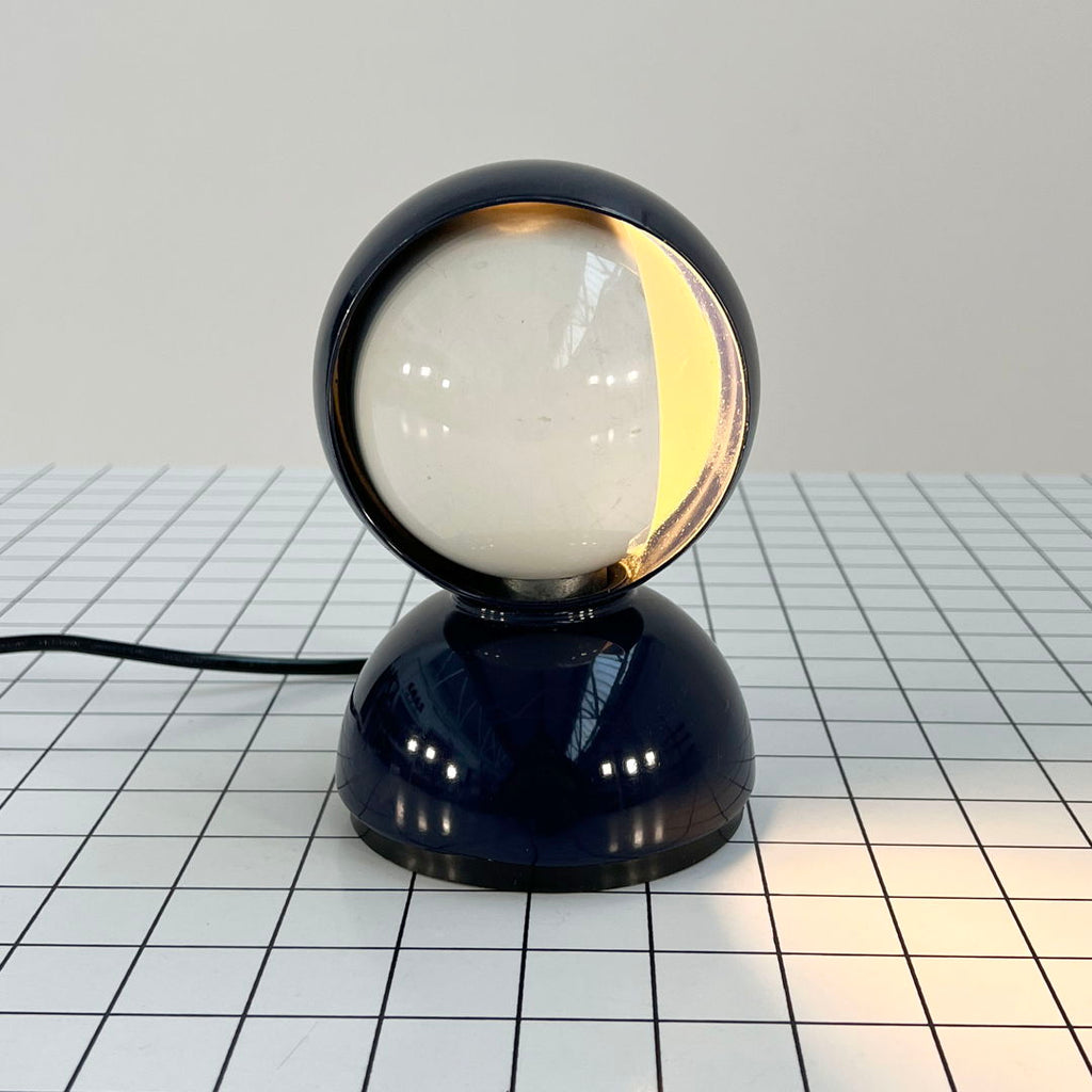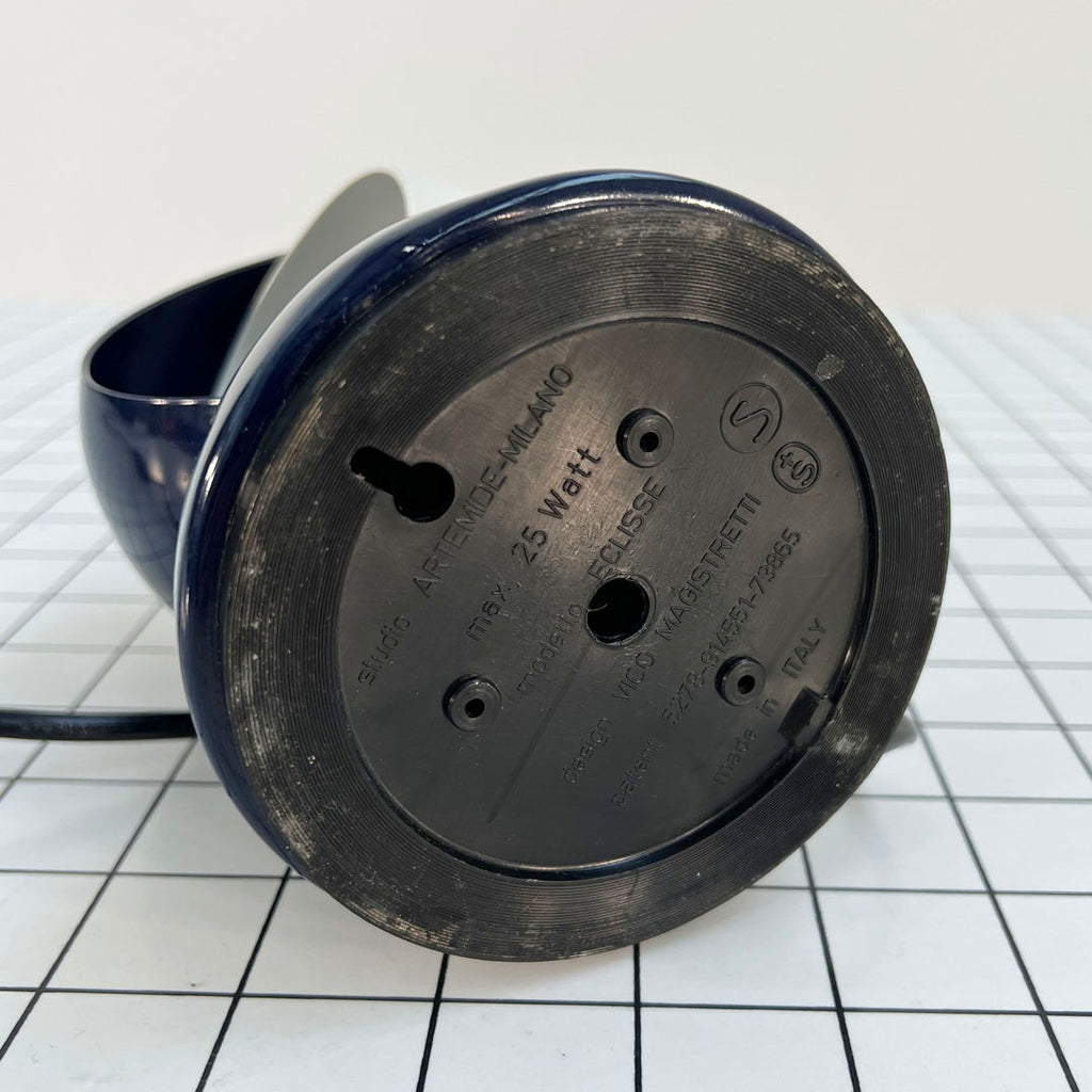 Artemide를 위한 Vico Magistretti의 Blue Eclisse 테이블 램프, 1960년대 디자이너 - Vico Magistretti 프로듀서 - Artemide 모델 - Eclisse 테이블 램프 디자인 기간 - 60년대 측정 - 폭 12cm x 깊이 12cm x 높이 18,5cm 재료 - 금속 색상 - 나이트 블루, 흰색 전기적 특성 - 유럽식 플러그(최대 240V) / 전구 E14 상태 - 좋은 의견 - 연식 및 사용에 따른 가벼운 마모.