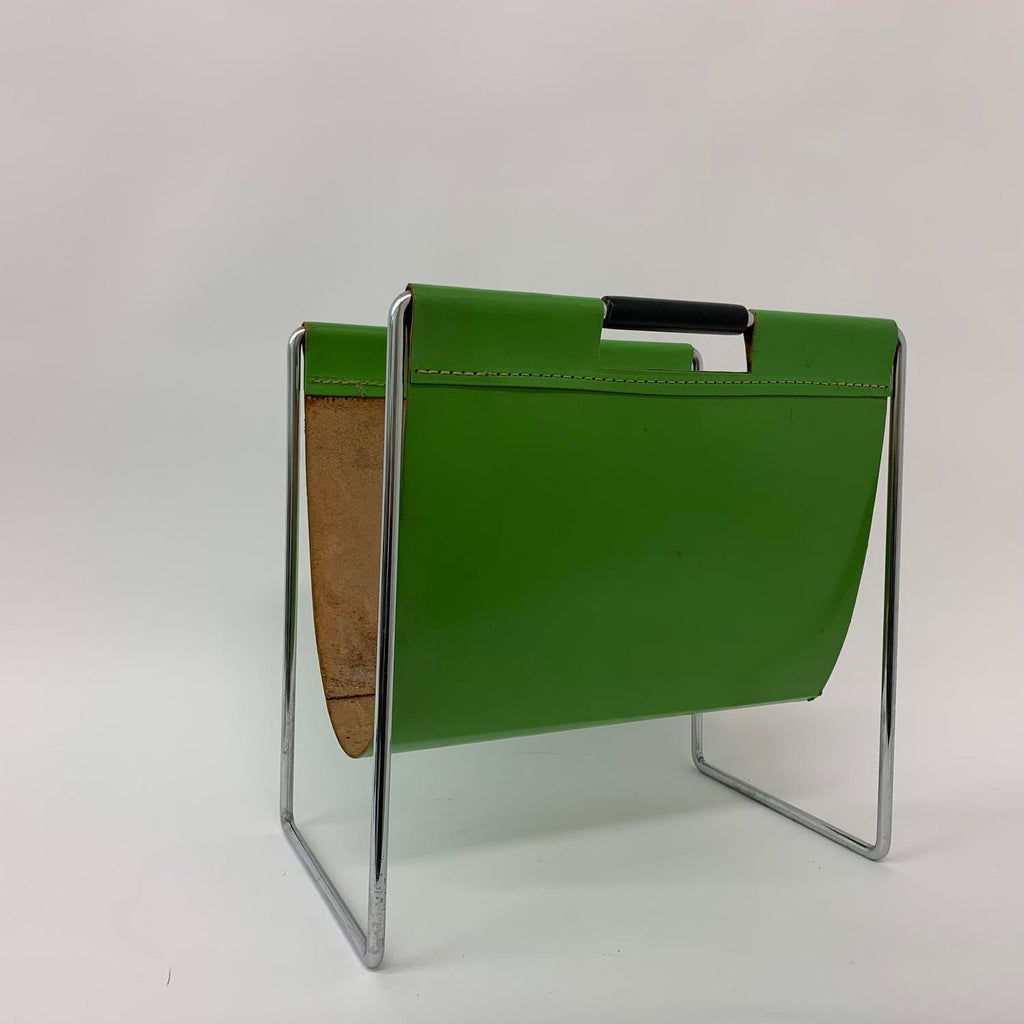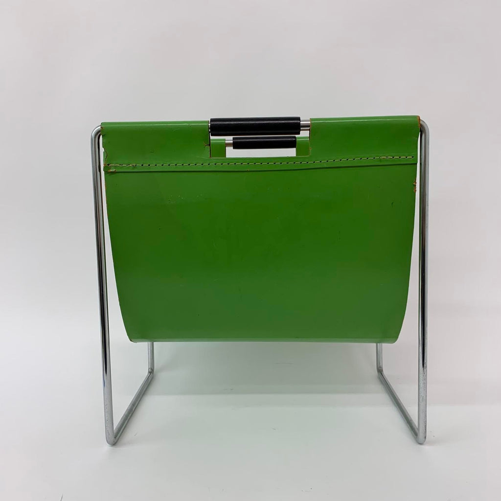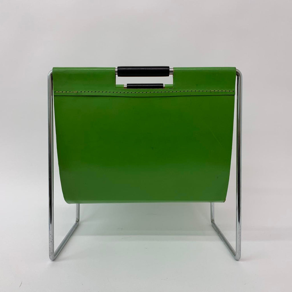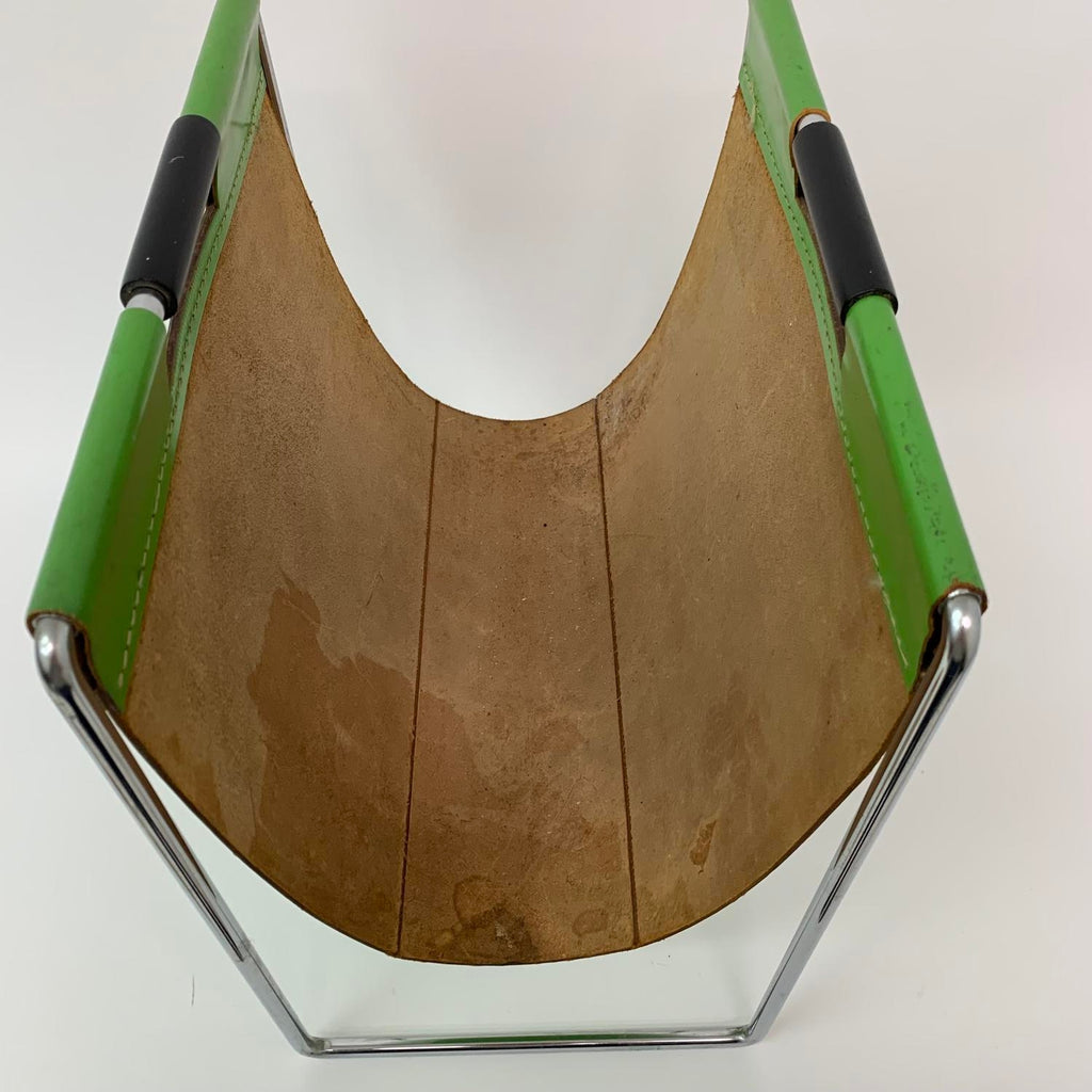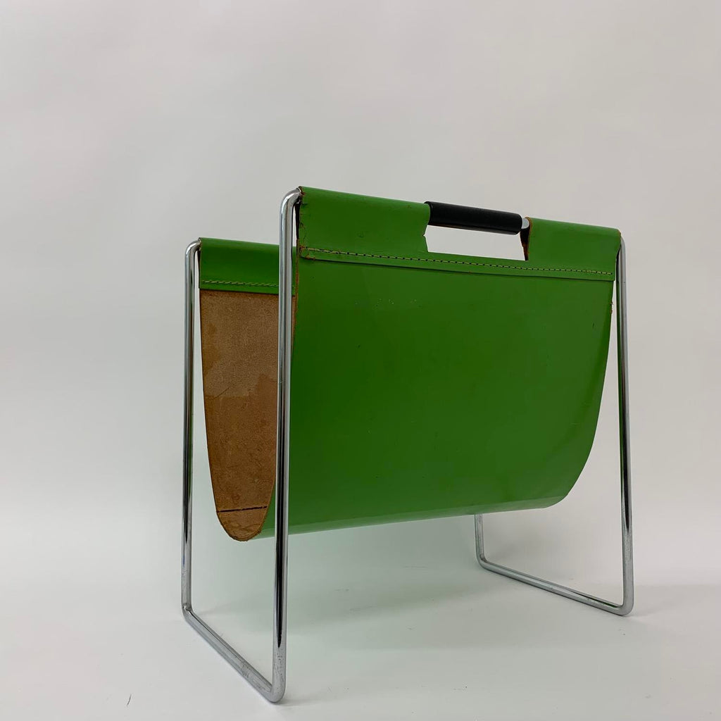 빈티지 상태의 아름다운 캔터베리/가죽으로 만든 매거진 랙, 나무 손잡이 2개, 크롬 금속 프레임이 있는 Brabantia Holland 제조업체와 Brabantia의 가구 브랜드인 Dadime이 생산했습니다. 상태: 가죽에 약간의 사용감이 있습니다(사진 참조). 치수: 높이: 35.5cm x 너비: 34cm x 깊이: 23cm.