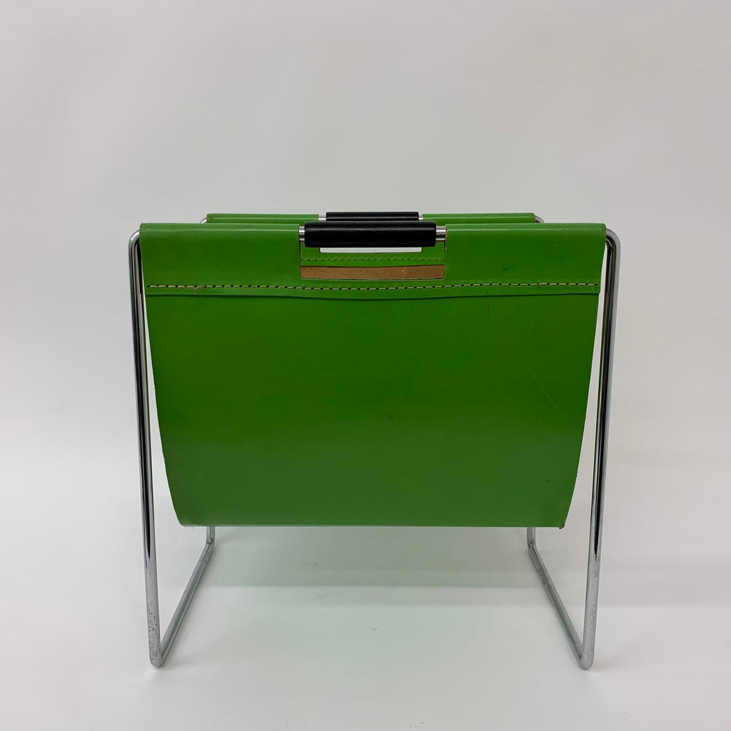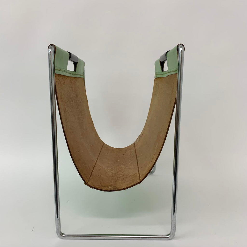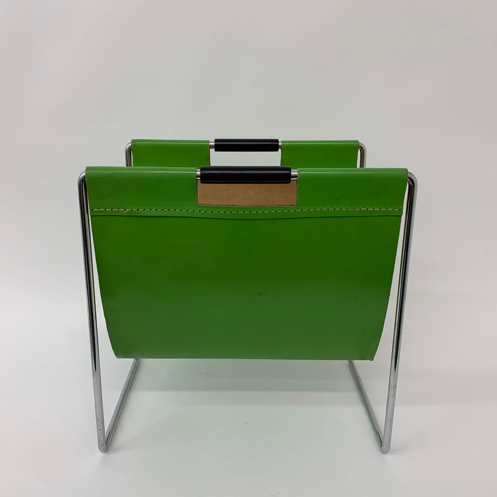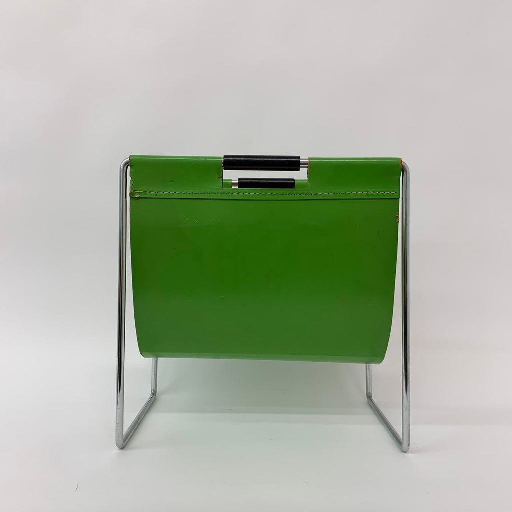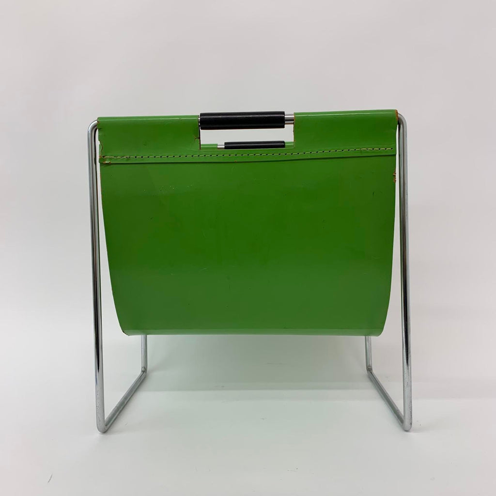 빈티지 상태의 아름다운 캔터베리/가죽으로 만든 매거진 랙, 나무 손잡이 2개, 크롬 금속 프레임이 있는 Brabantia Holland 제조업체와 Brabantia의 가구 브랜드인 Dadime이 생산했습니다. 상태: 가죽에 약간의 사용감이 있습니다(사진 참조). 치수: 높이: 35.5cm x 너비: 34cm x 깊이: 23cm.