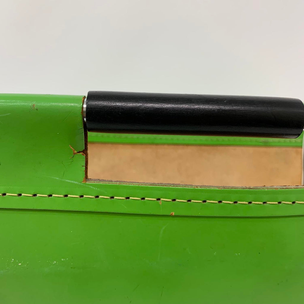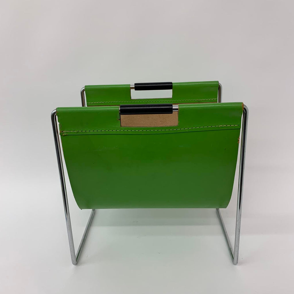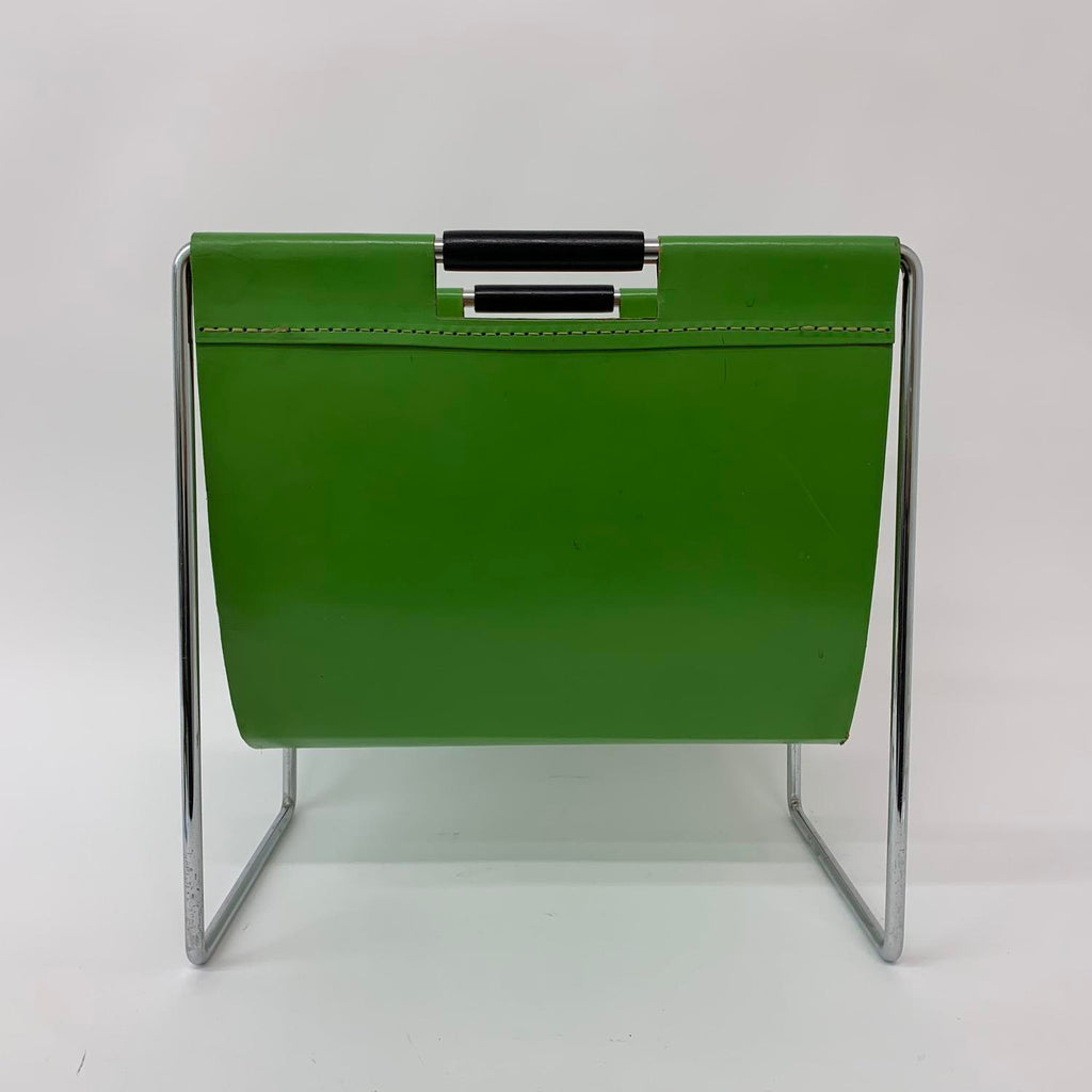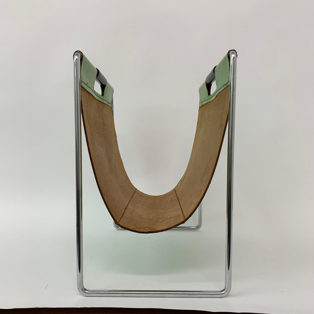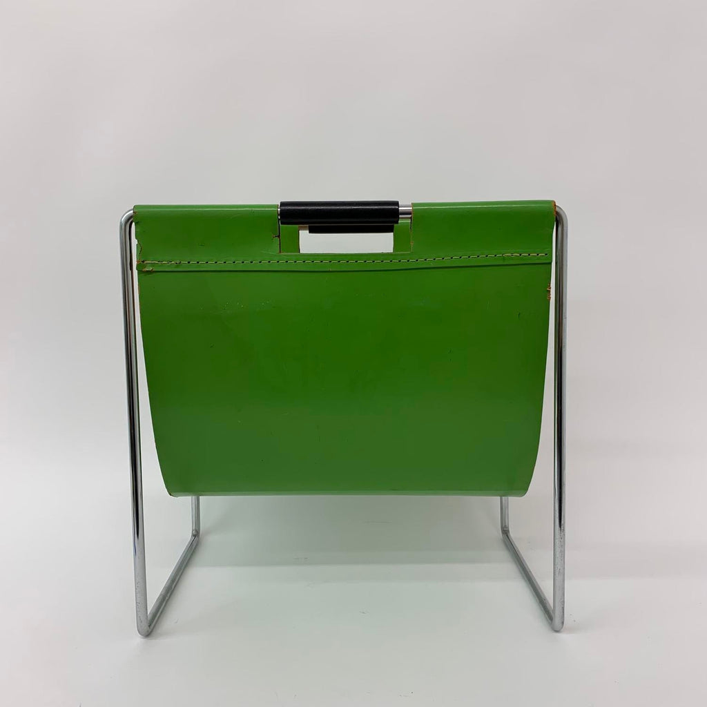 빈티지 상태의 아름다운 캔터베리/가죽으로 만든 매거진 랙, 나무 손잡이 2개, 크롬 금속 프레임이 있는 Brabantia Holland 제조업체와 Brabantia의 가구 브랜드인 Dadime이 생산했습니다. 상태: 가죽에 약간의 사용감이 있습니다(사진 참조). 치수: 높이: 35.5cm x 너비: 34cm x 깊이: 23cm.