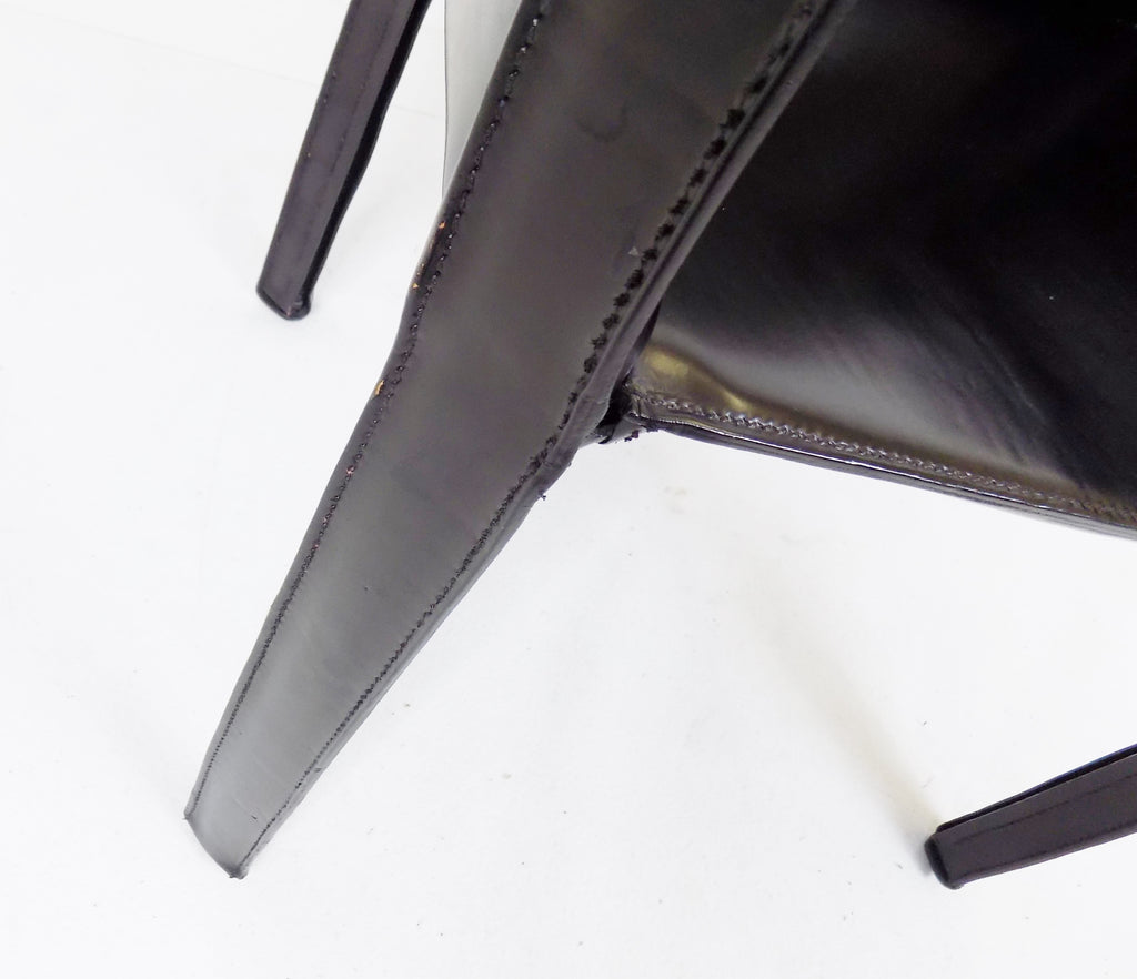 이 의자의 가죽 커버는 22개의 가죽으로 수작업으로 제작되었으며 금속 프레임에 입혀져 있습니다.