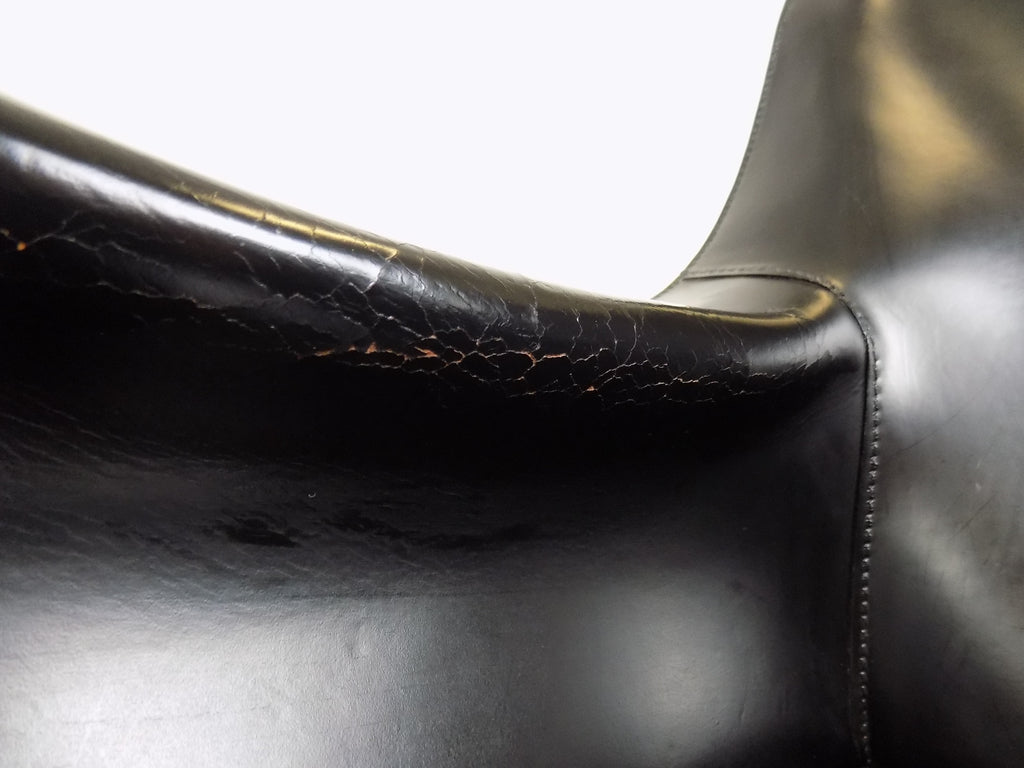 가죽은 최소한의 마모 흔적을 보여주며 팔걸이 안쪽에 약간의 표면 파손만 있습니다.