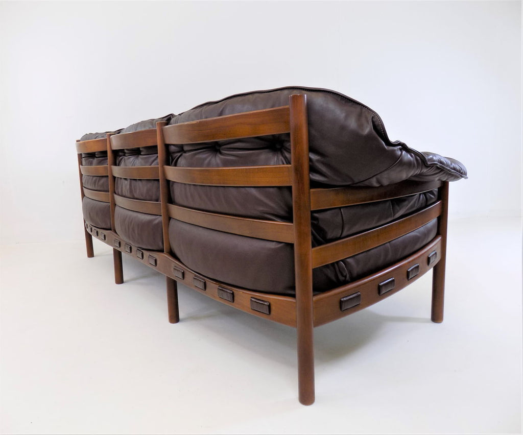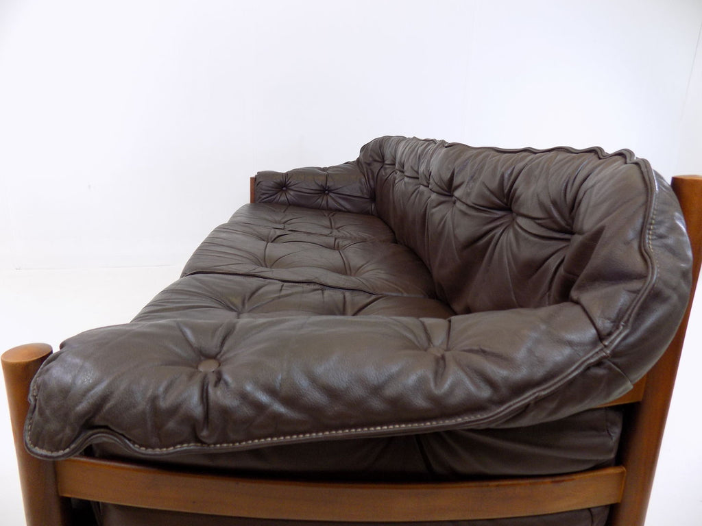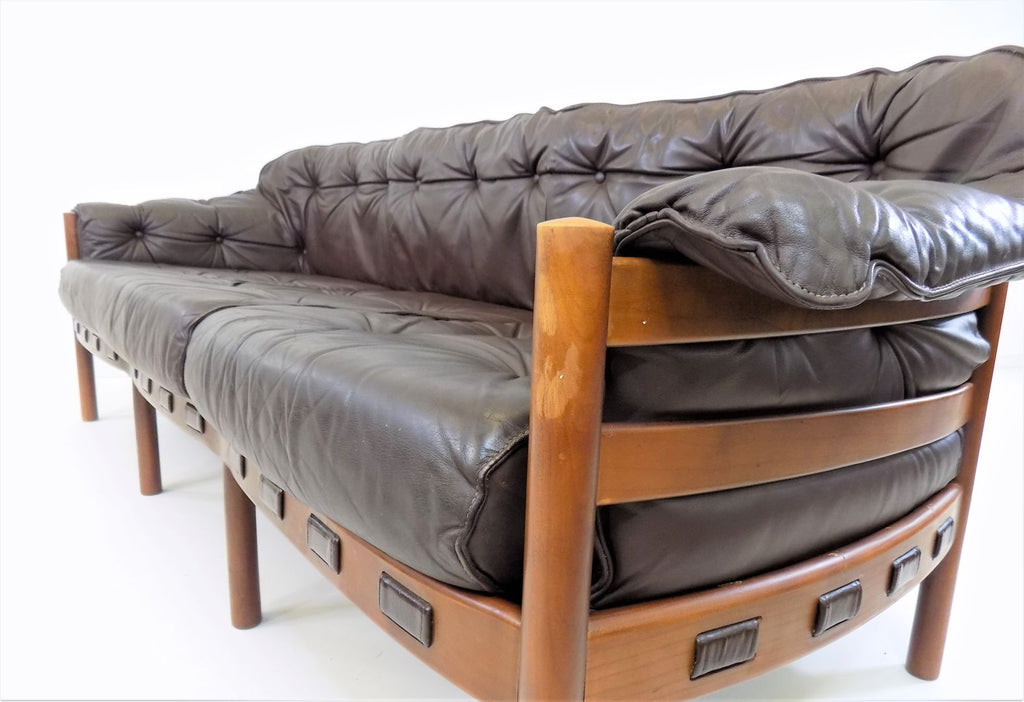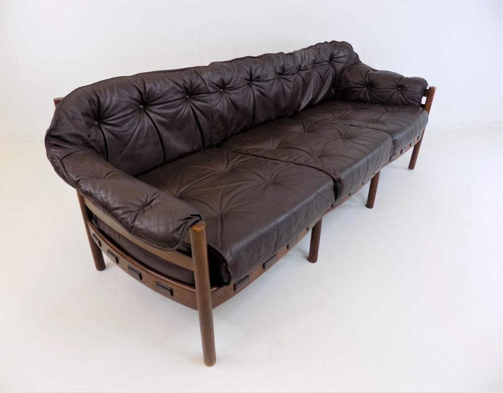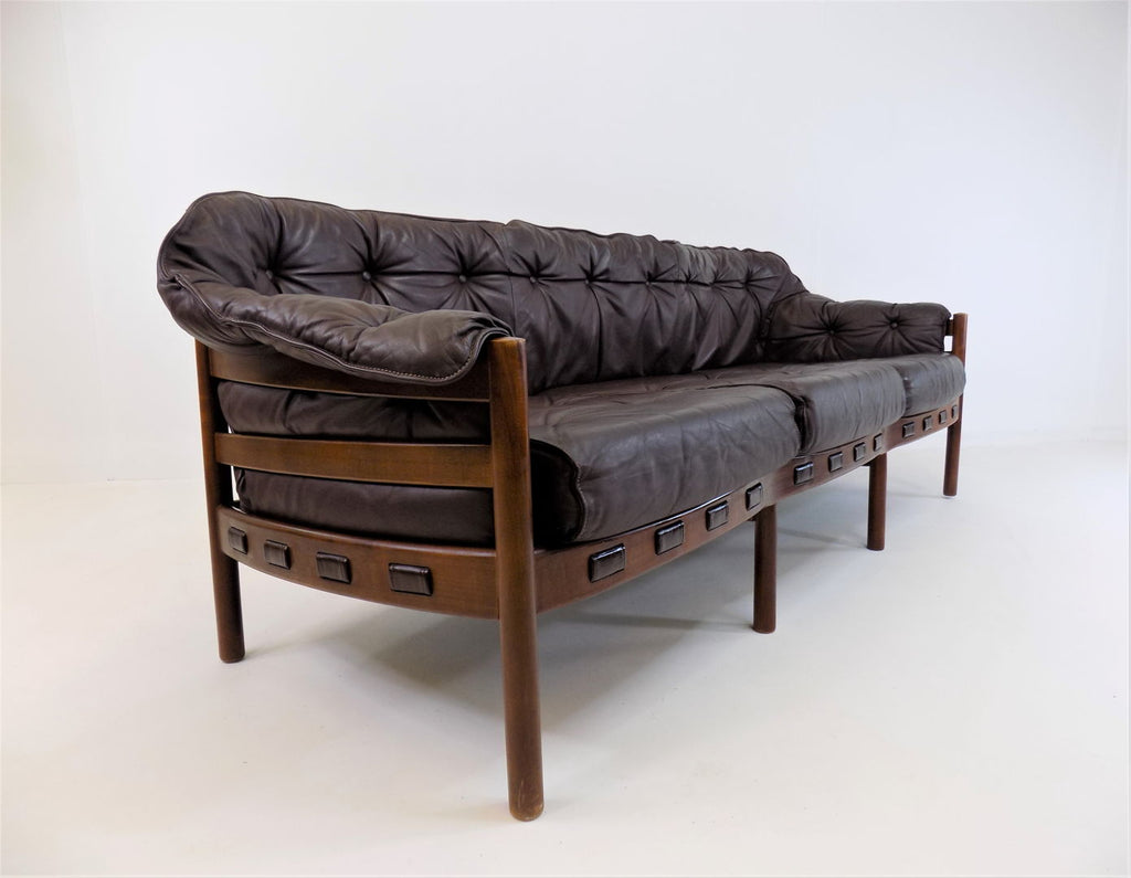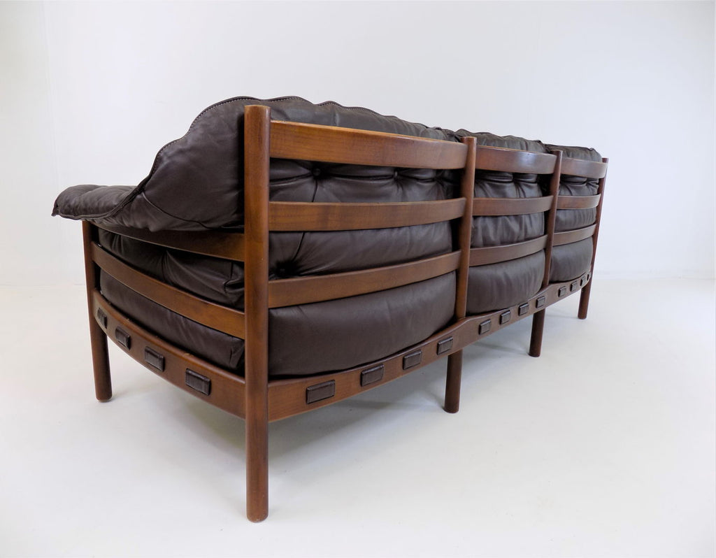 Excellent condition 3 seater leather sofa by the Swedish designer Sven Ellekaer. The chocolate brown leather is in excellent condition. The wooden frame has a beautiful color that harmonises with the leather and shows minimal signs of wear. The suspension of the sofa is almost new and offers first-class seating comfort in a classic from the 1960s.
