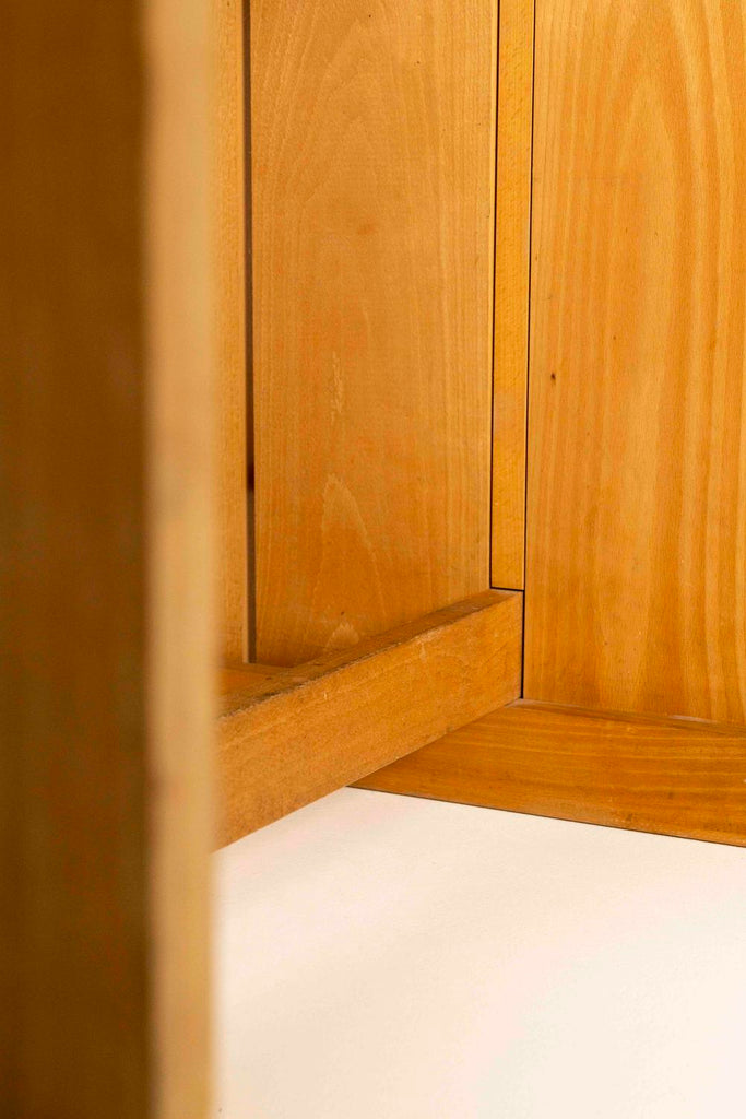 암스테르담의 Keizersgracht에 있는 본점에서 구입했습니다. 이 가구는 비교적 저렴했습니다. 도색된 모델은 16길더에 주문할 수 있었지만 1931년에 Rietveld와 Schröder가 디자인한 더 멋진 책상은 이 가격의 10배였습니다. 가게 전단지에는 '주말 집, 썬룸, 학생 및 어린이 방'을 의미하는 '주말 가구'라는 라벨이 붙어 있었다. 이 의도된 기능은 부유한 고객층을 나타낼 뿐만 아니라 Rietveld의 최신 디자인에 대한 매장의 다소 회의적인 태도를 암시적으로 보여줍니다.' (출처 kunstconsult.com) 이 책상은 세월에 따른 마모, 주로 얼룩으로 상태 양호합니다.