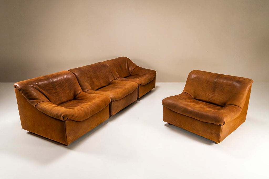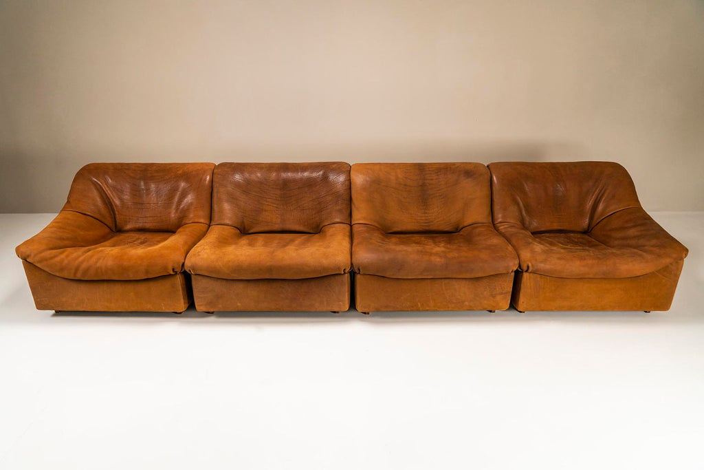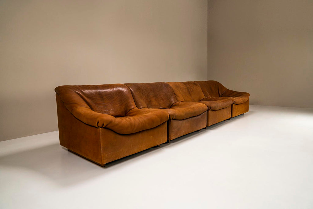 De Sede DS46 Sectional Sofa In Cognac Buffalo Neck Leather, Switzerland 1970s