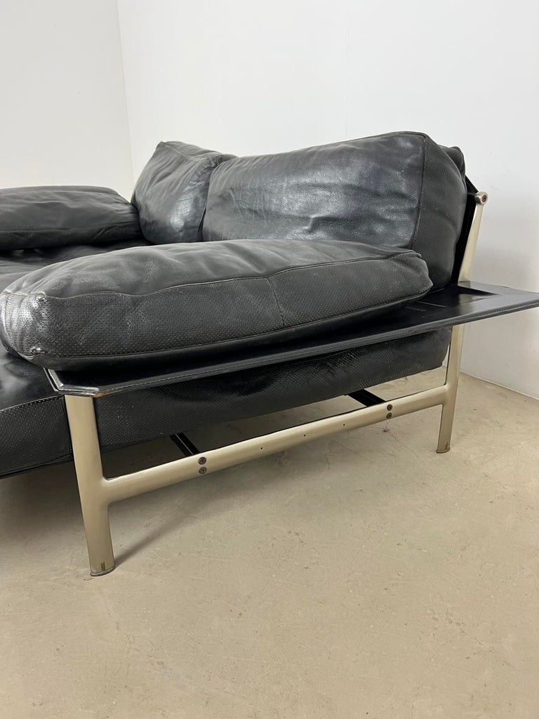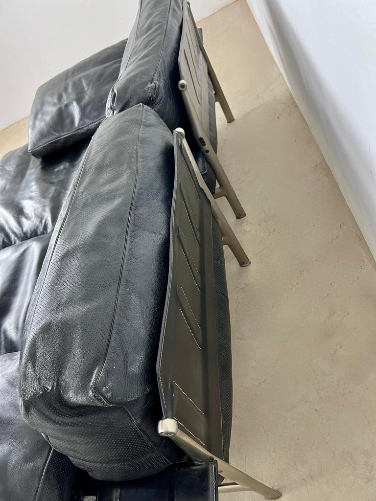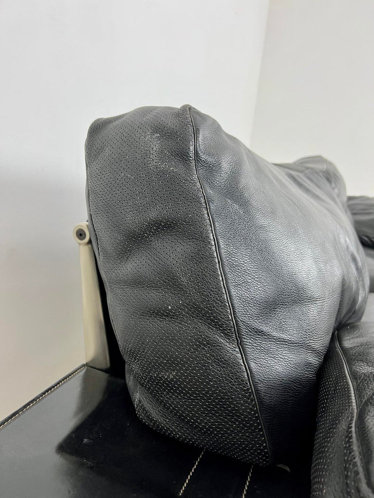블랙 가죽 소파. 좌석 아래에 찍힌 흔적이 있습니다(사진 참조).