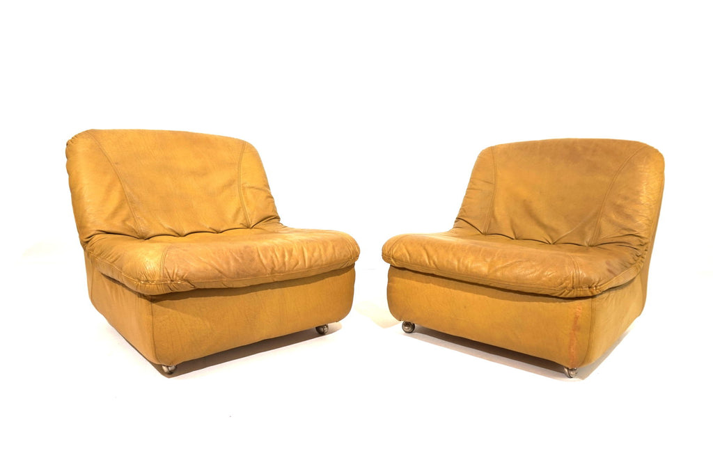 70년대 머스타드 컬러 가죽 톤으로 제작된 Dreipunkt 모듈형 안락의자 2개 세트입니다. 안락의자는 약간의 사용 흔적과 수년에 걸쳐 얻은 깨끗한 녹청을 제외하고는 양호한 상태입니다. 좌석의 편안함은 흠 잡을 데가 없습니다. 모듈은 개별 안락의자로 배치하거나 함께 연결하여 2인용 소파를 만들 수 있습니다. 의자를 함께 고정하는 연결 고리가 있습니다. Dreipunkt International은 1880년부터 고품질 가구를 생산해 왔으며 엄선된 디자이너들과 협력해 온 독일의 유명한 가구 제조업체였습니다.