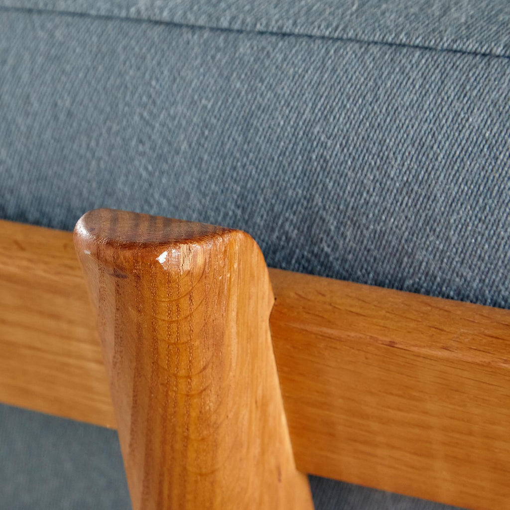 Hans J. Wegner가 디자인한 세련된 3인용 덴마크 소파, 오크 프레임과 쿠션. 좋은 상태의 빈티지로 편안한 착석감을 제공합니다.