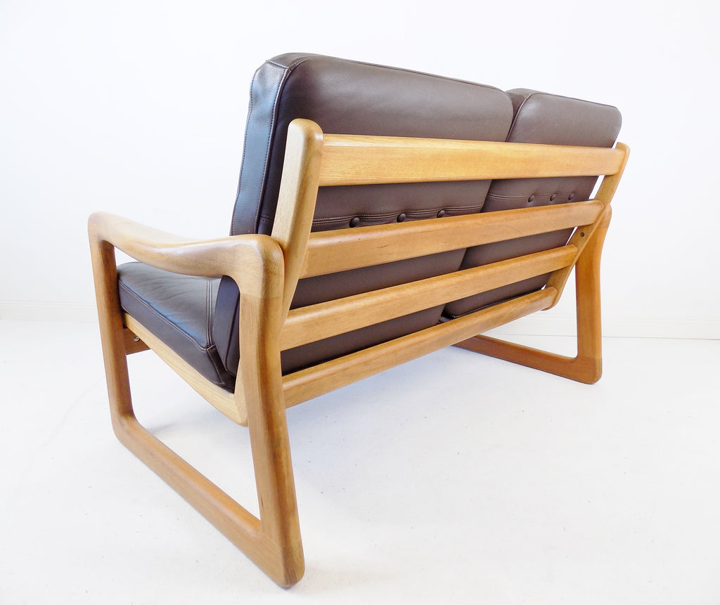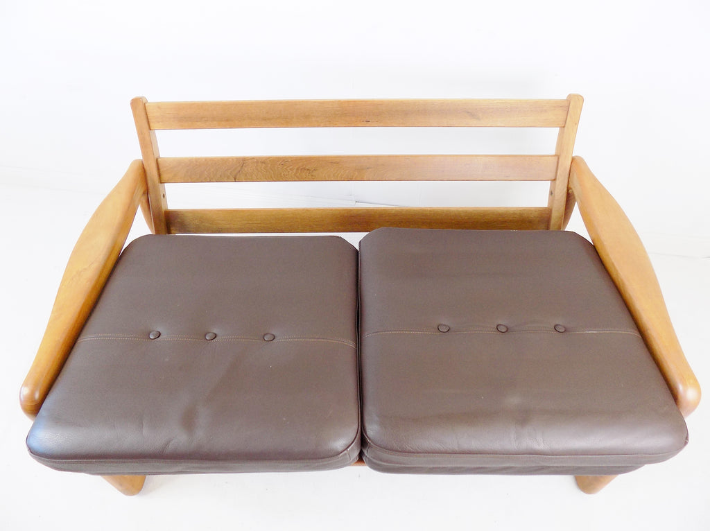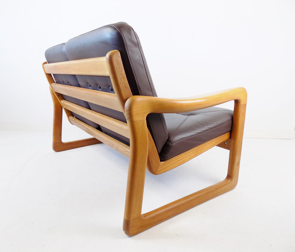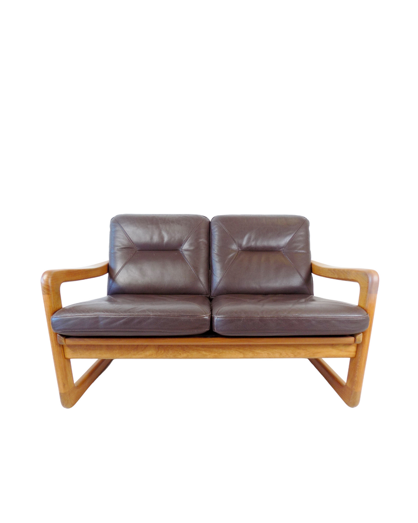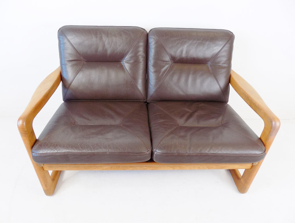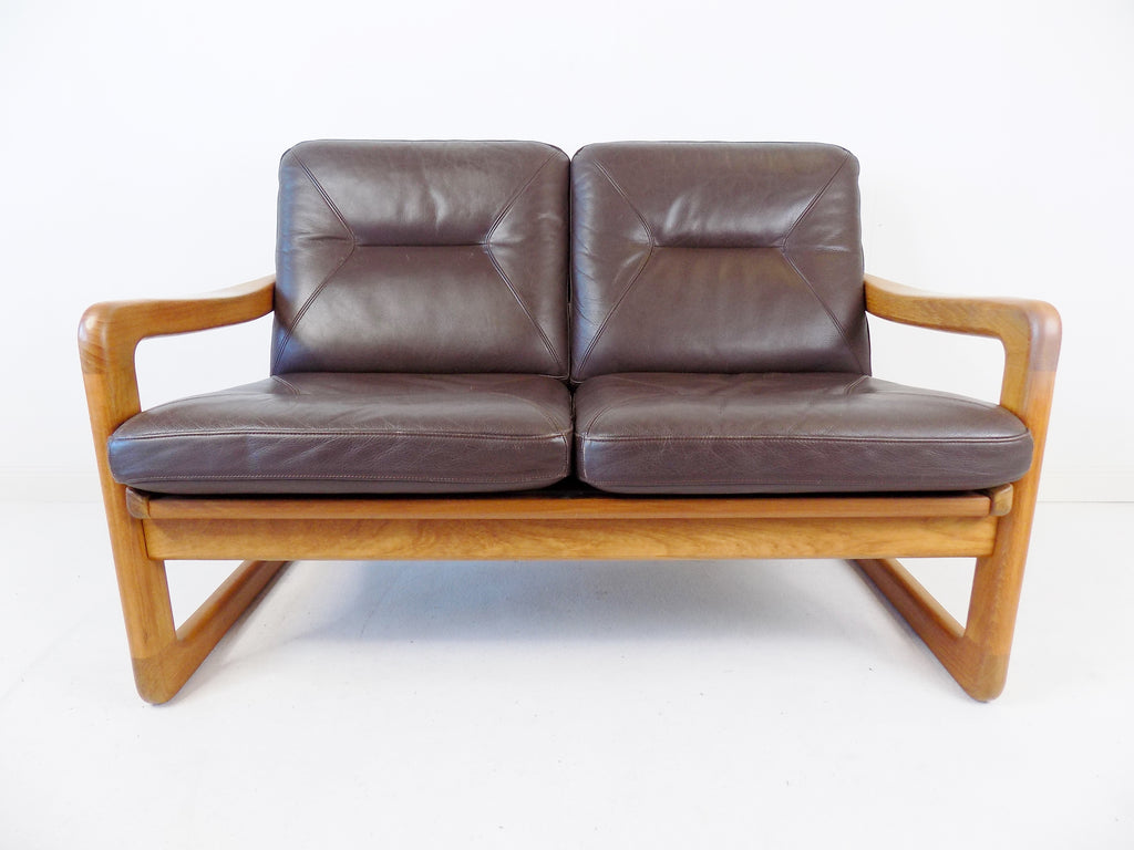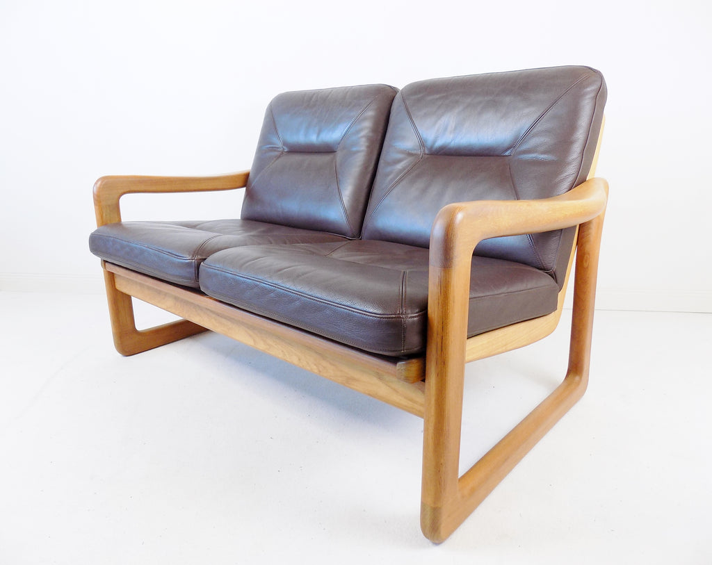 Holstebro teak leather 2 seater couch