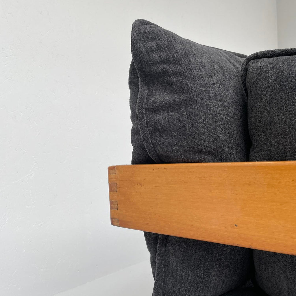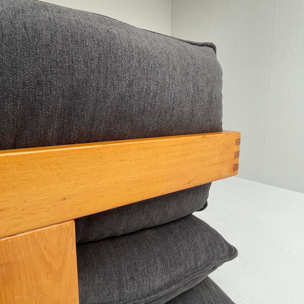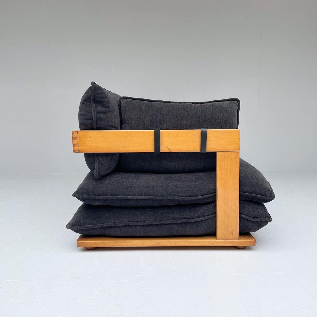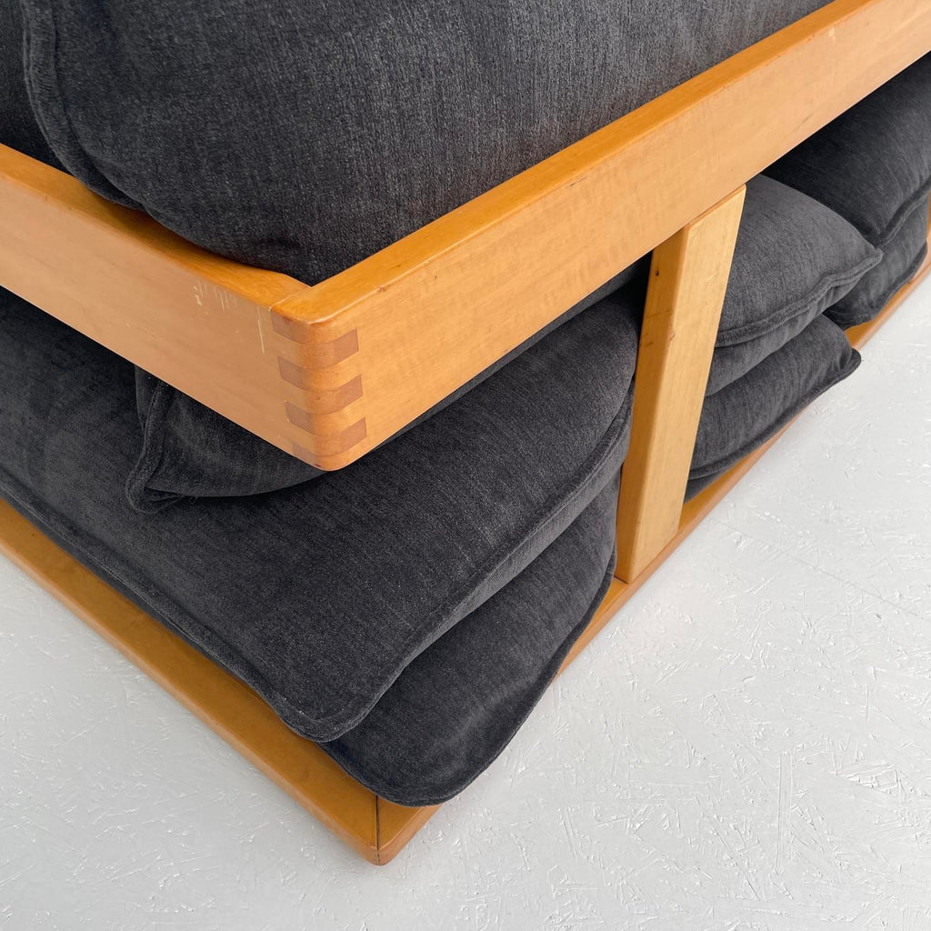 Italian design sofa, in wood and dark blue fabric
