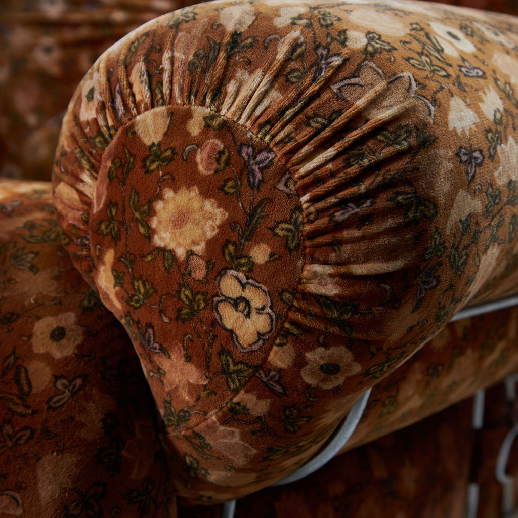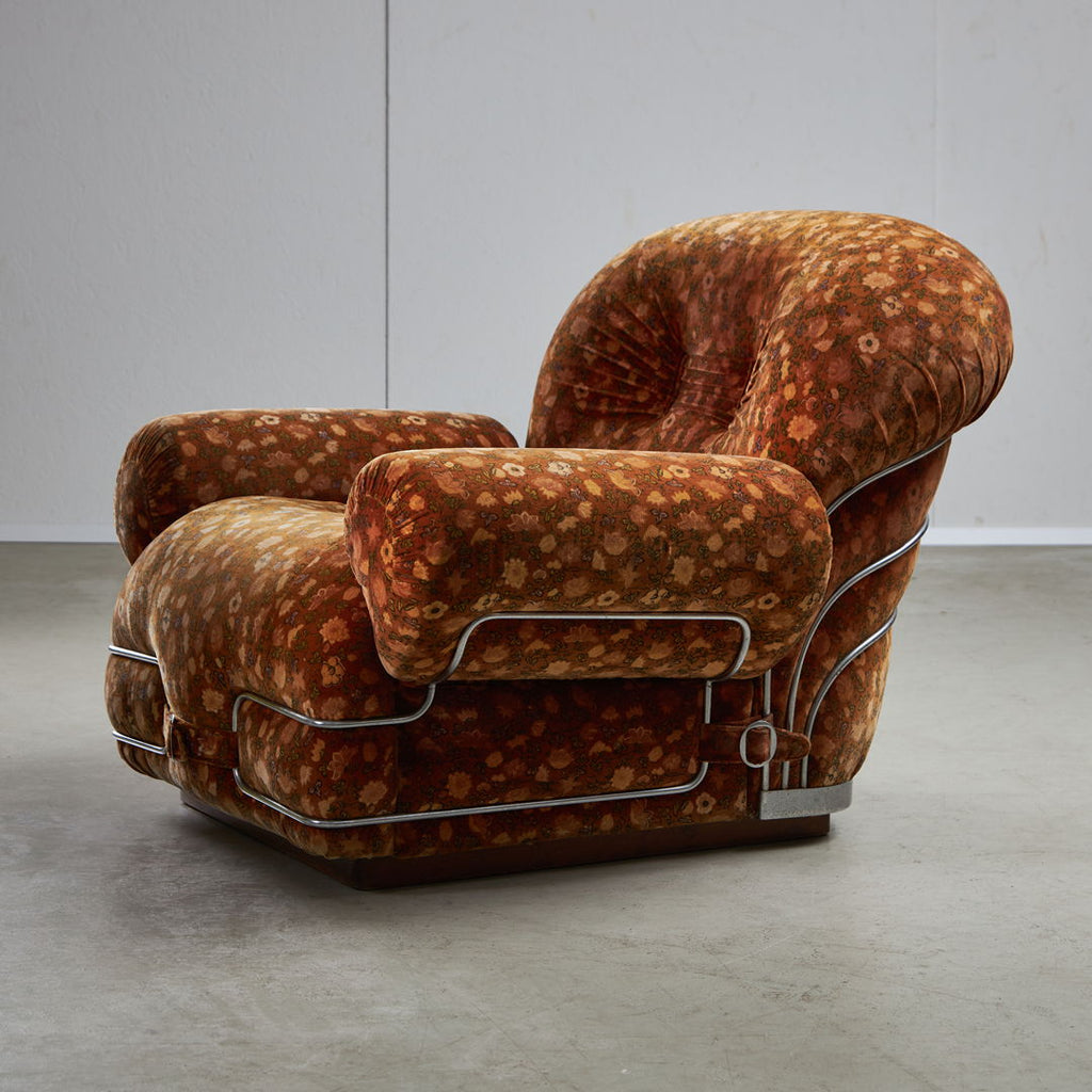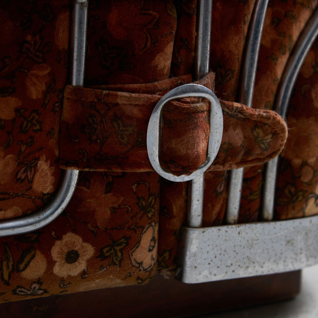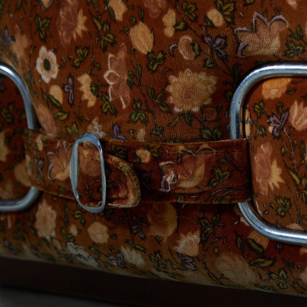 Italian, Pouffe Armchair in Flower Pattern with Chrome Details