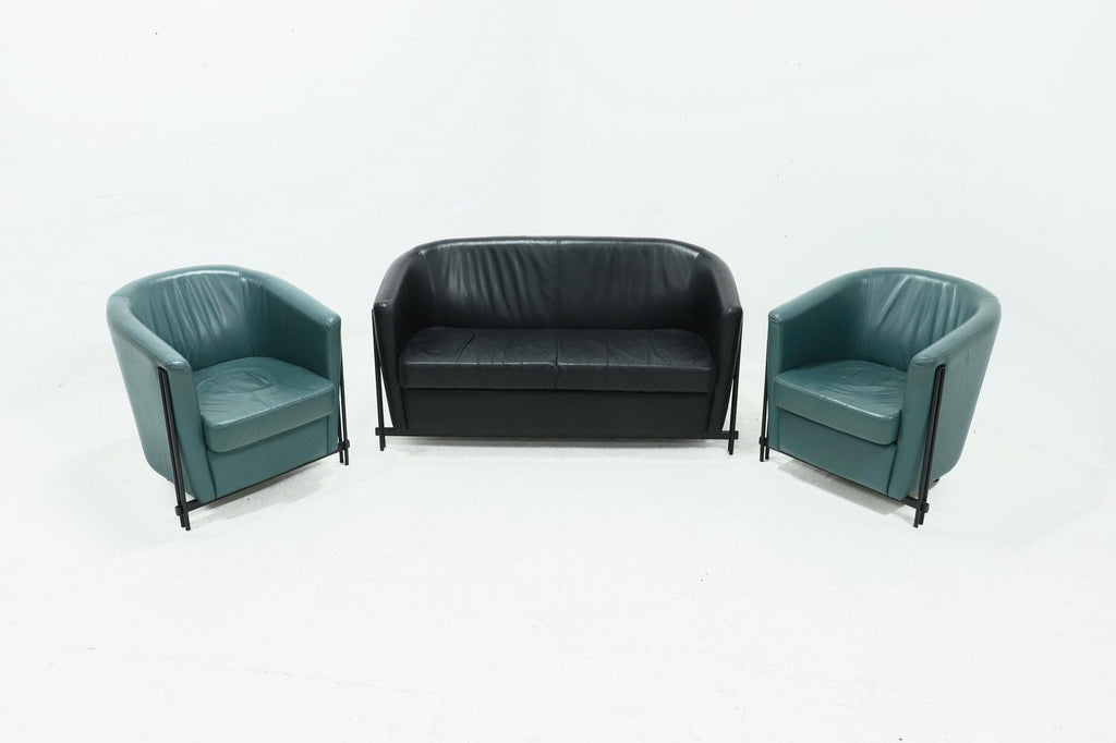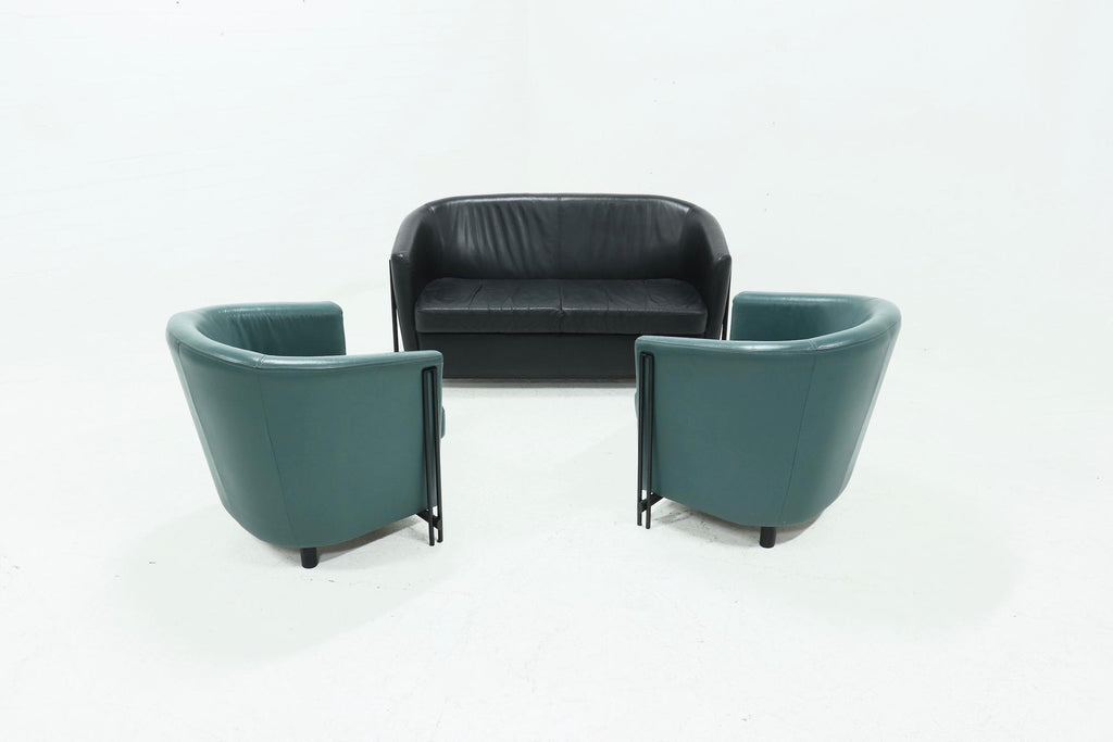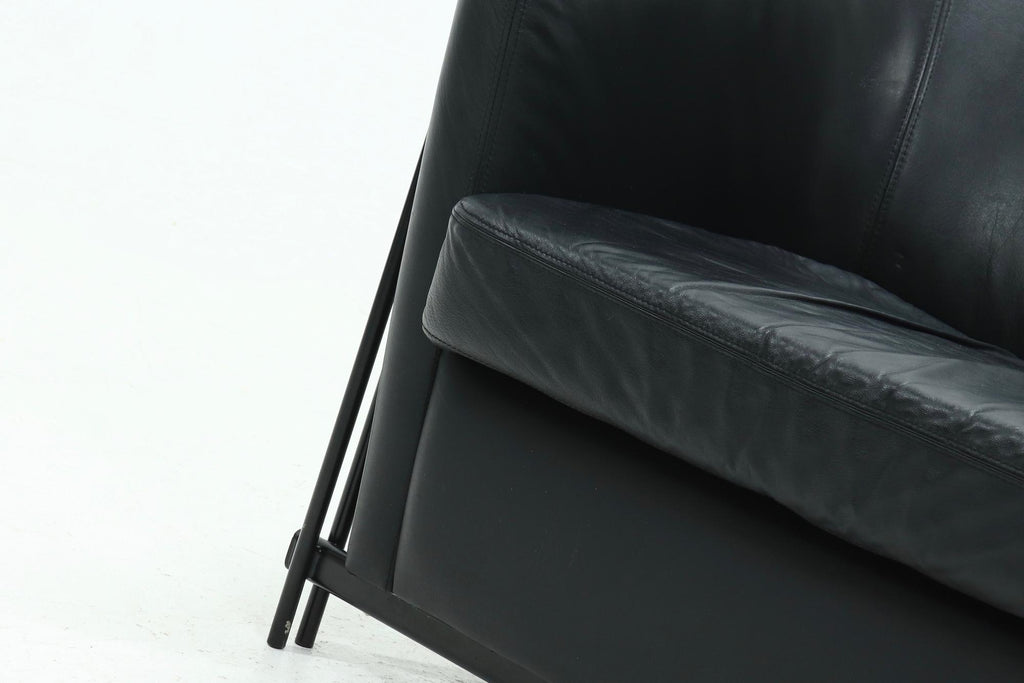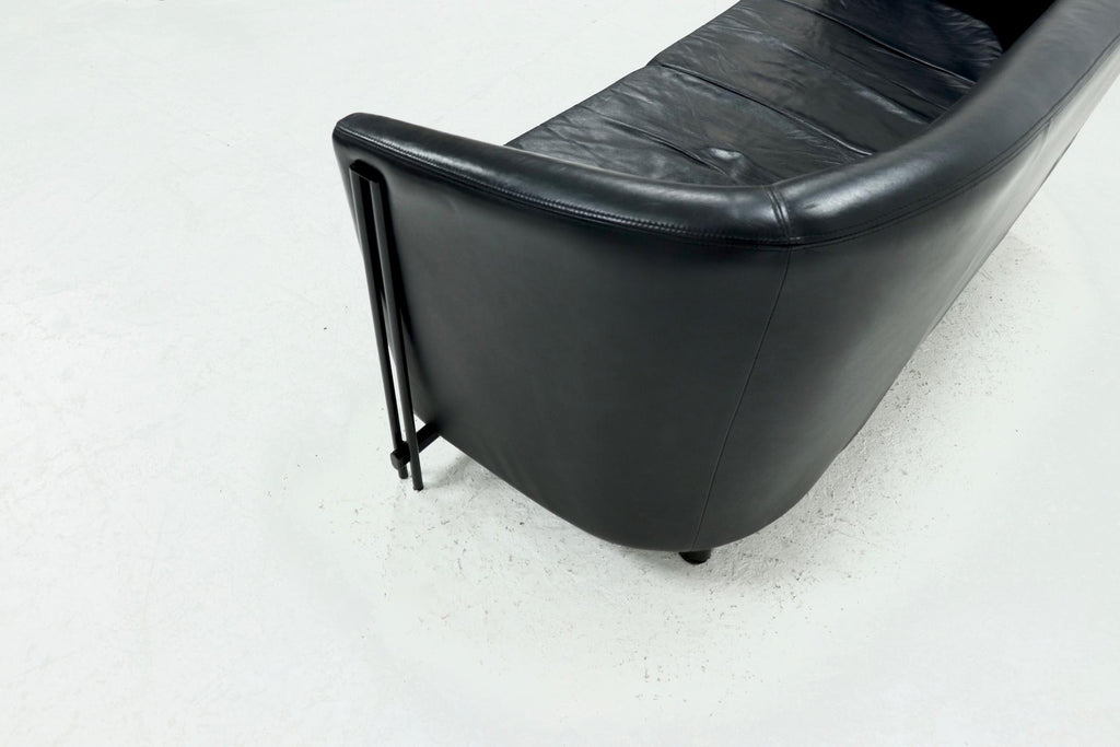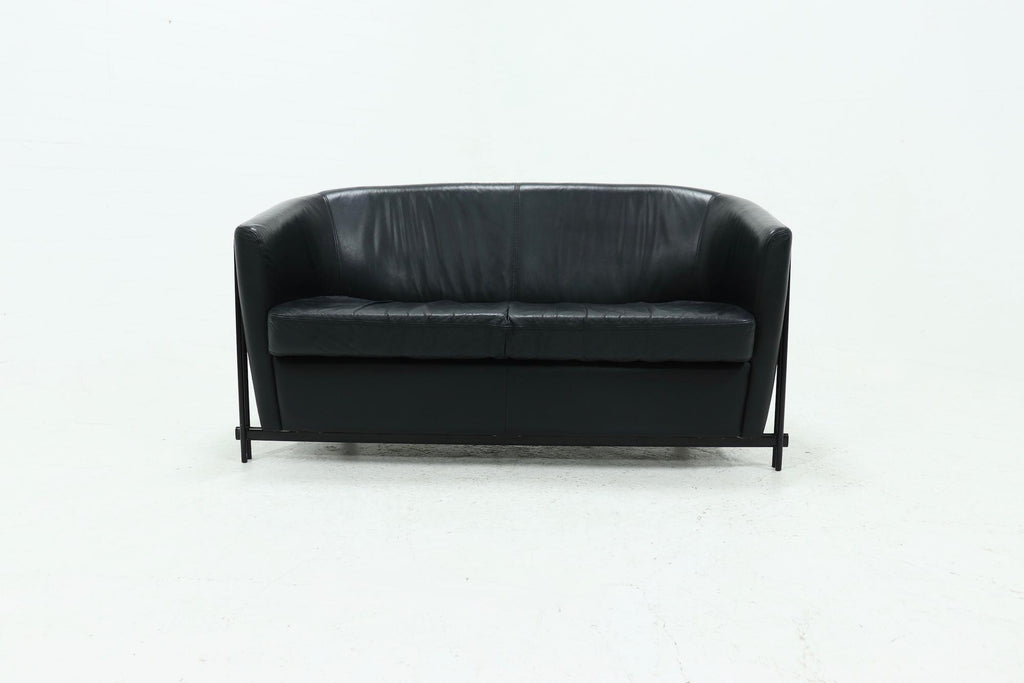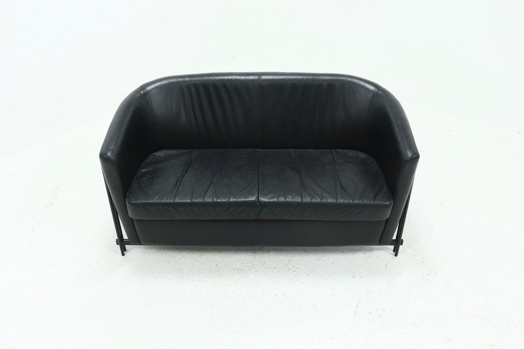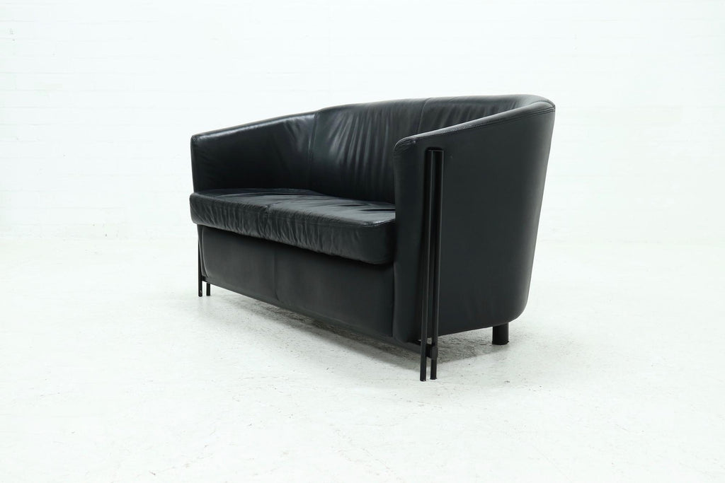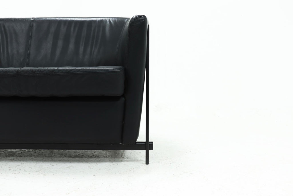 1990년대 Touch의 클럽 소파. 소파는 블랙 래커 처리된 스틸 프레임과 함께 블랙 가죽으로 장식되어 있습니다. 매우 좋은 상태를 유지하고 있습니다.