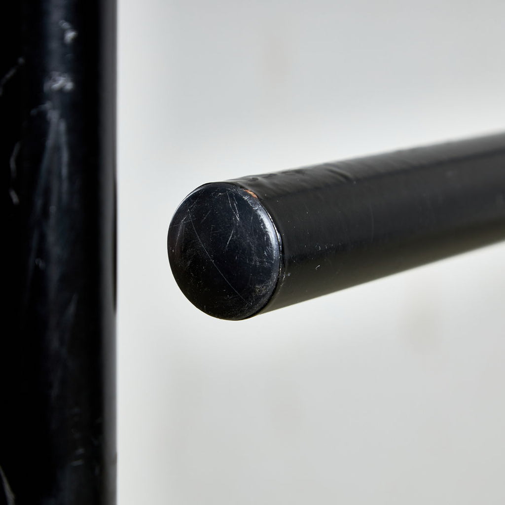 "Postmodern clothes stand in the shape of a man silhouette with a black metal frame, from the 1980s. In good vintage condition with some wear and scratches on the surface."