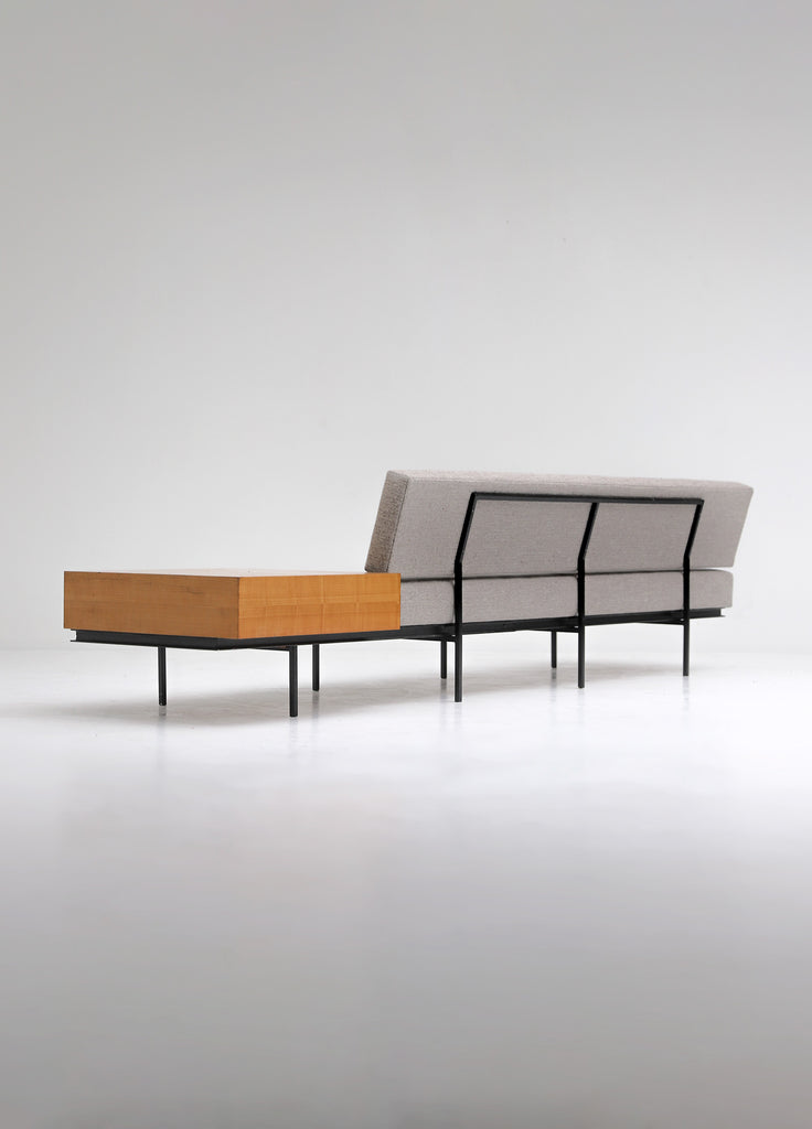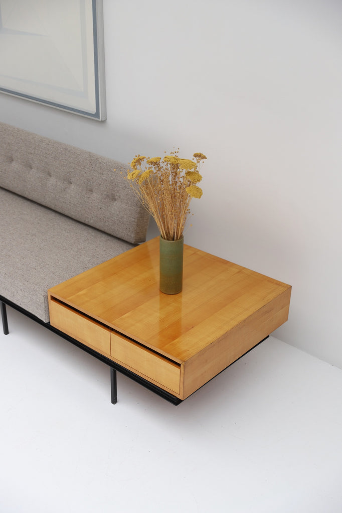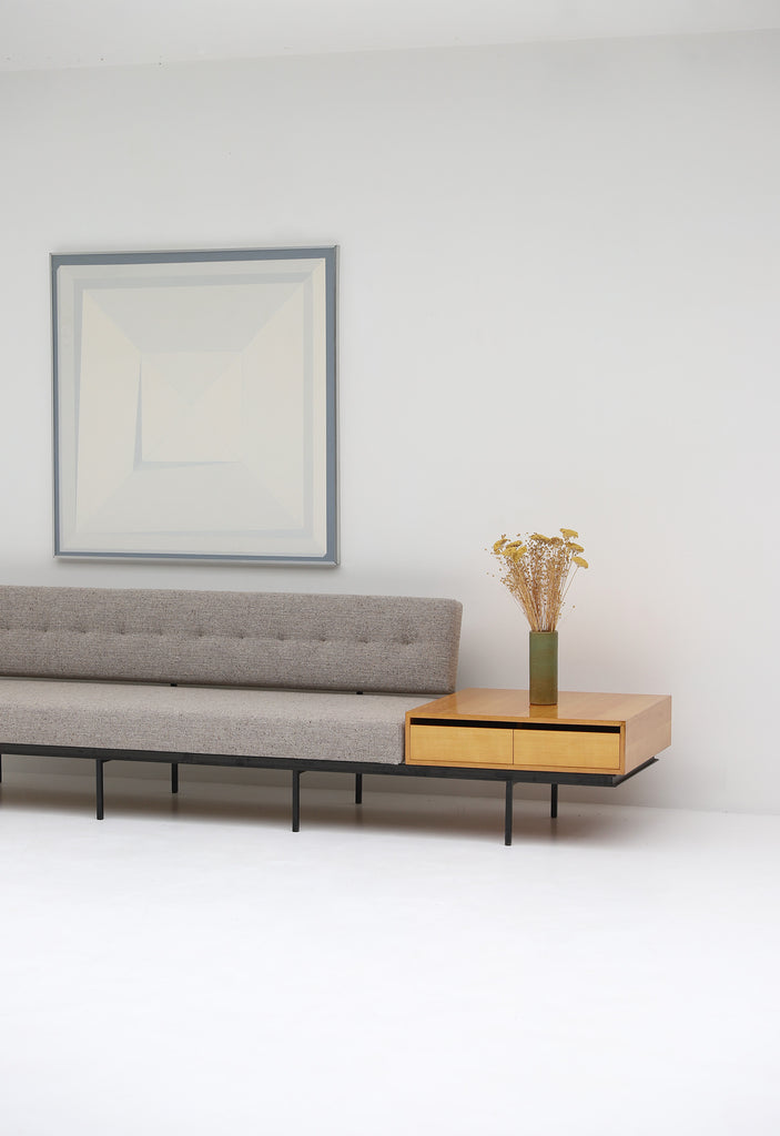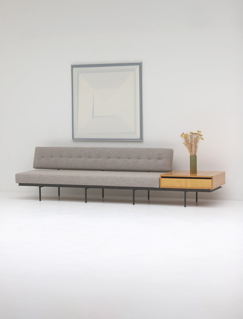 Mid-Century sofa with wooden side cabinet designed by Florence Knoll, 1960s