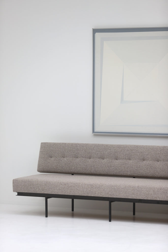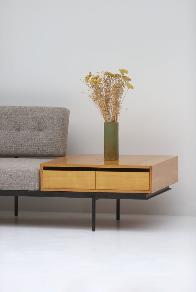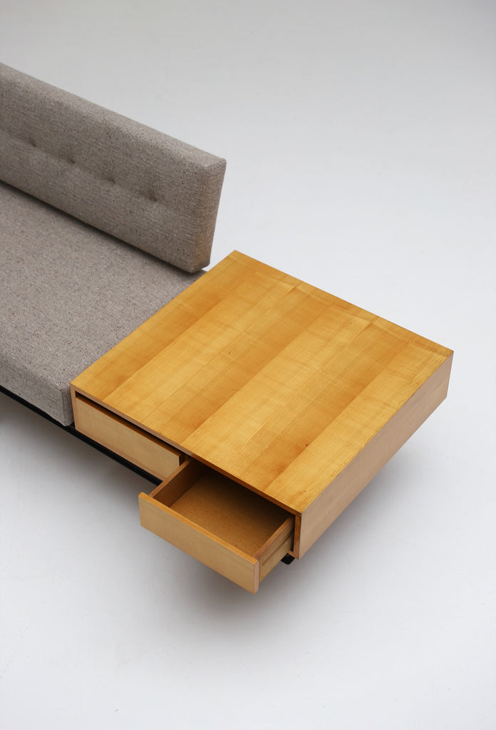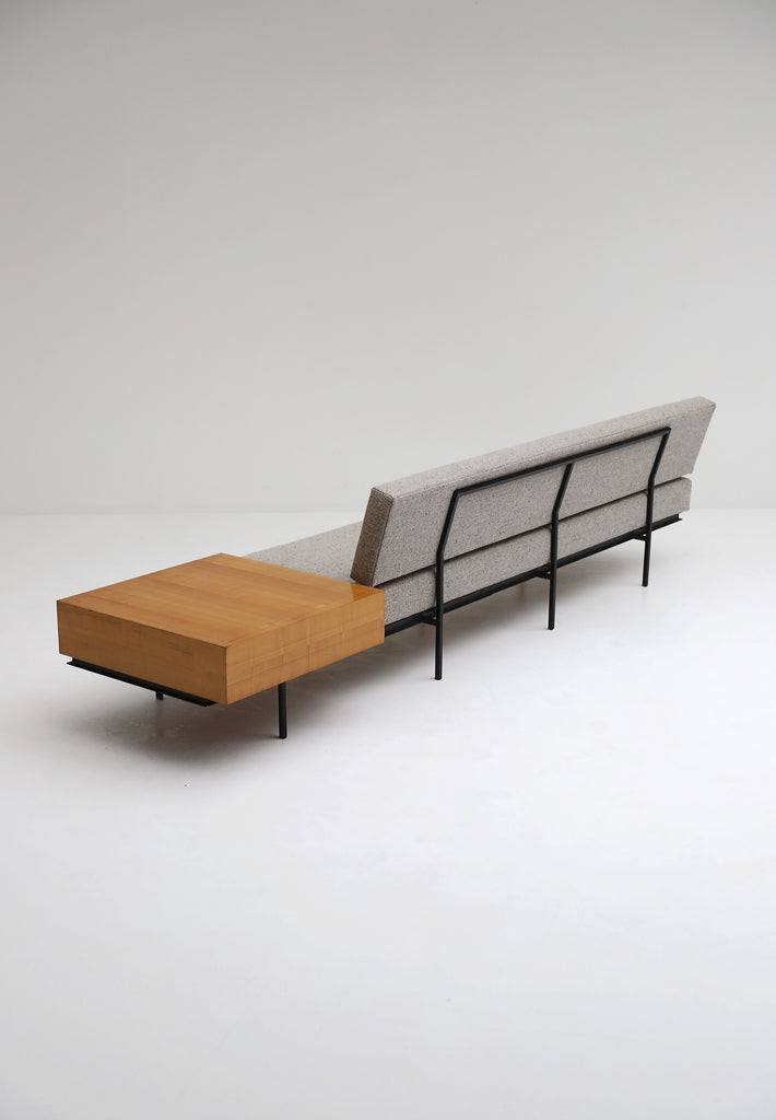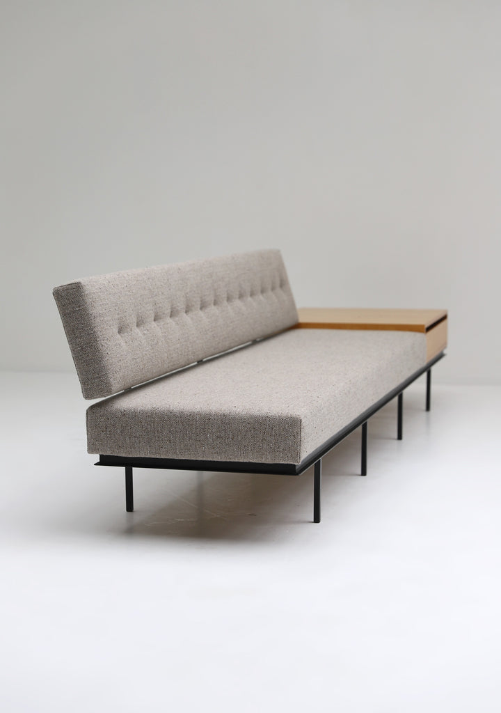 Mid-Century sofa with wooden side cabinet designed by Florence Knoll, 1960s