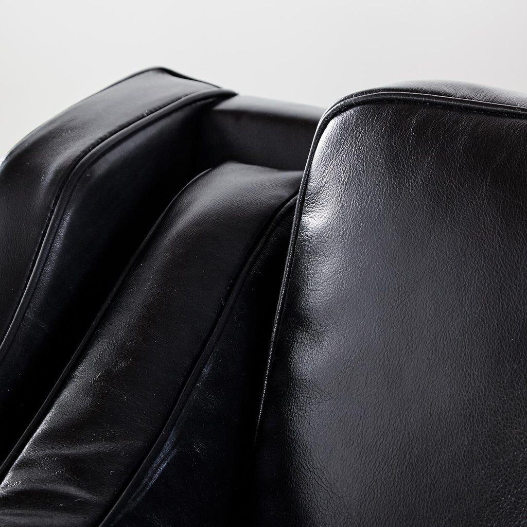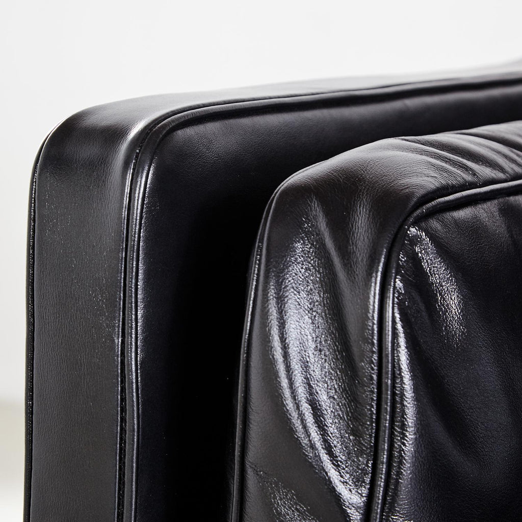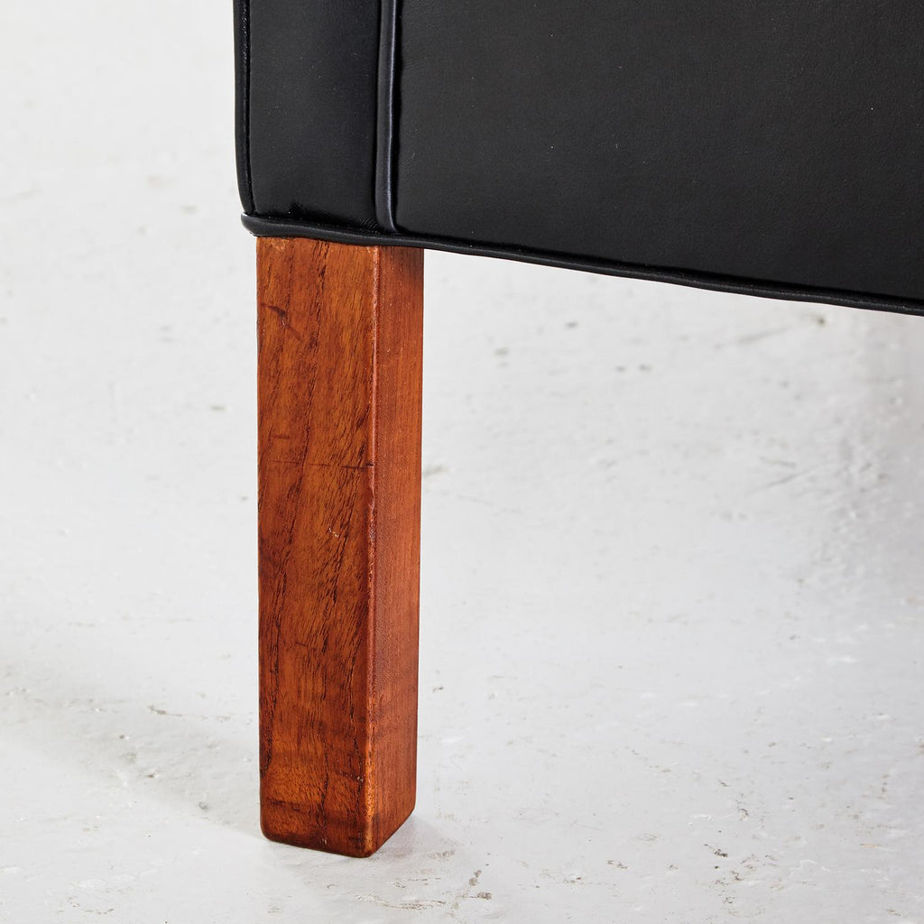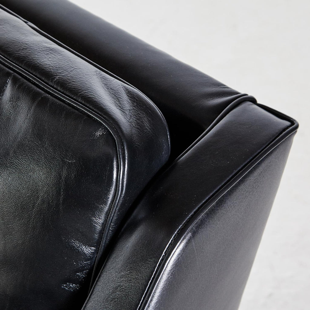 Børge Mogensen 새로 덧씌워진 검정 가죽 3인용 소파와 발판이 있는 안락의자 2개, Fredericia Stolefabrik 덴마크 제작(1962)