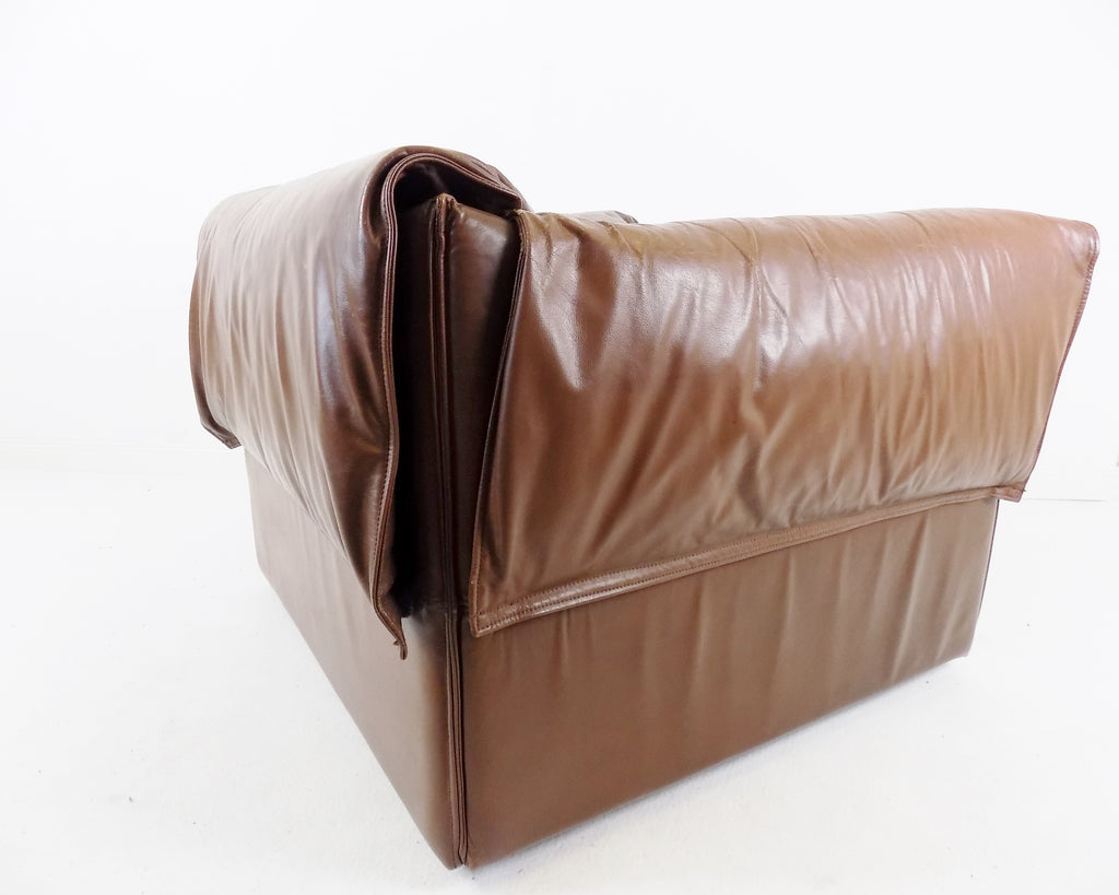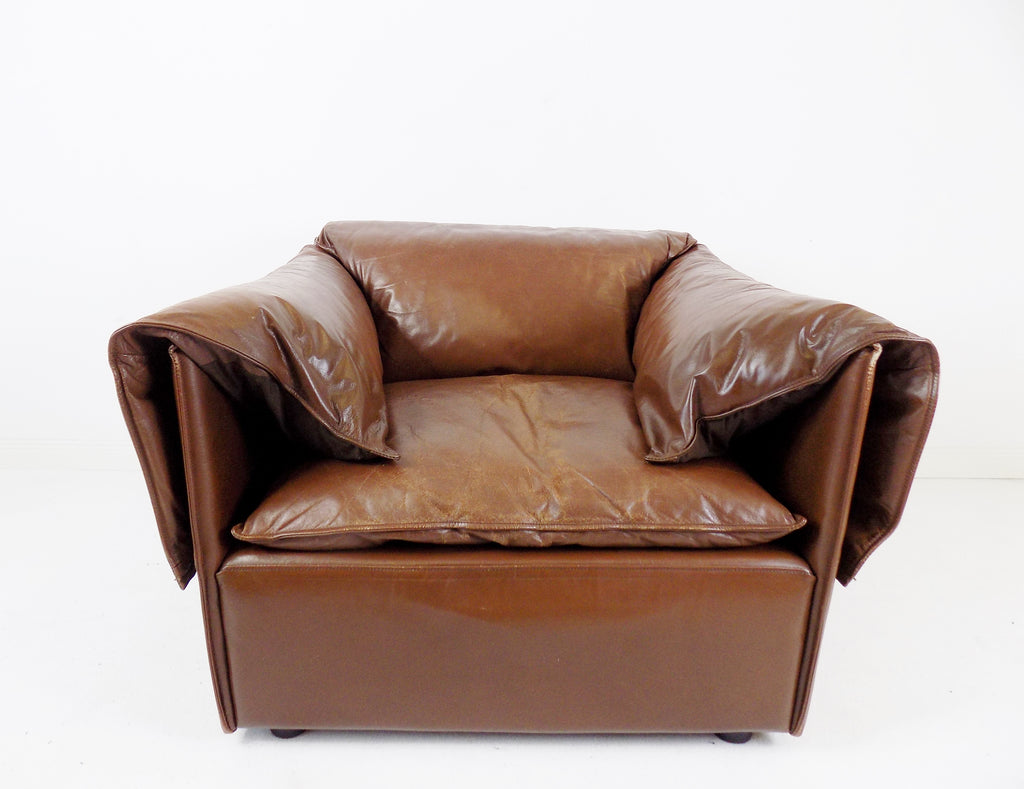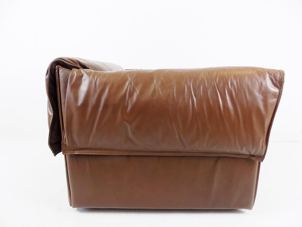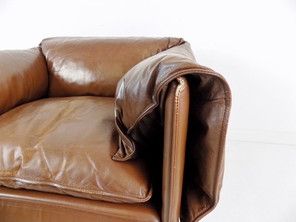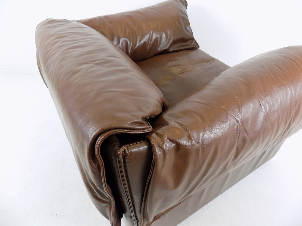 코냑 색상의 이 로터스 가죽 안락의자는 상태가 양호합니다.