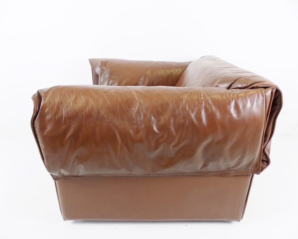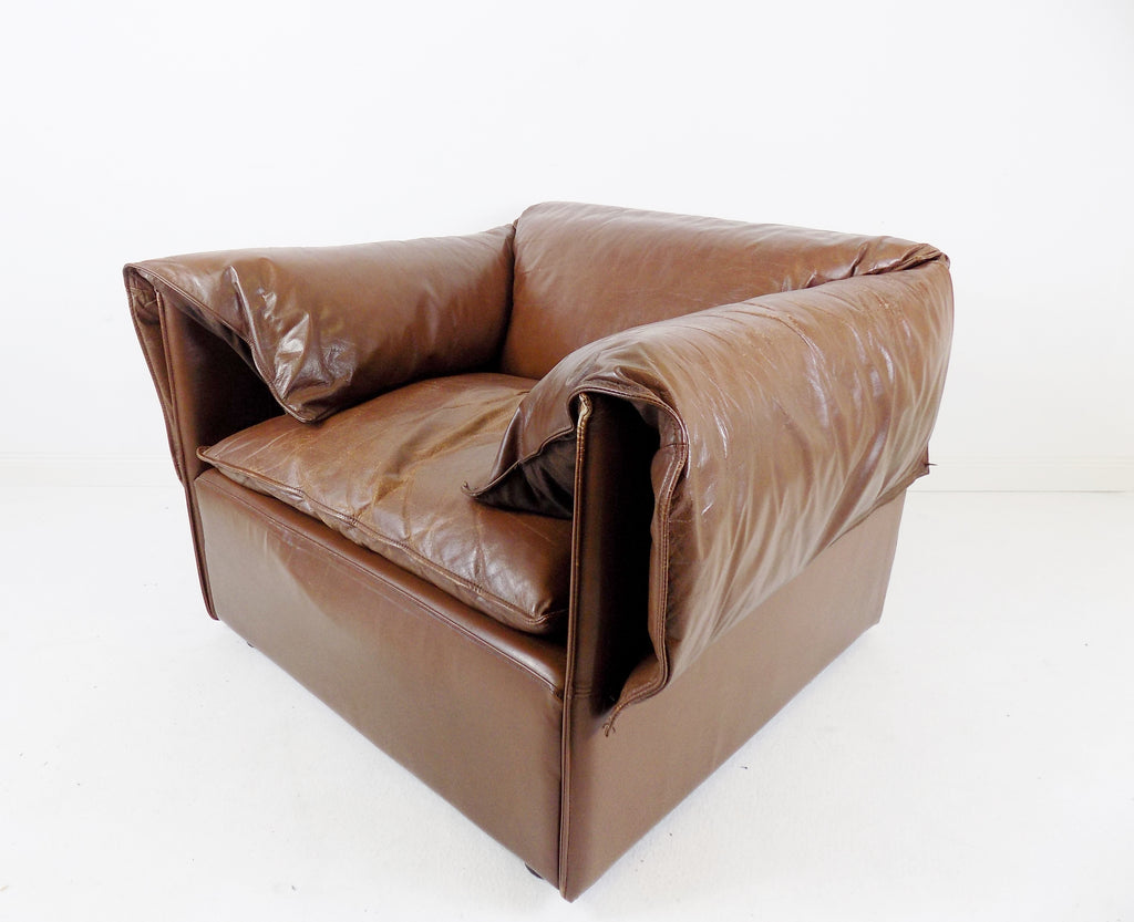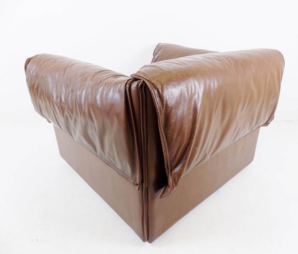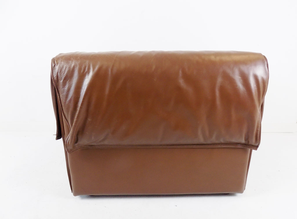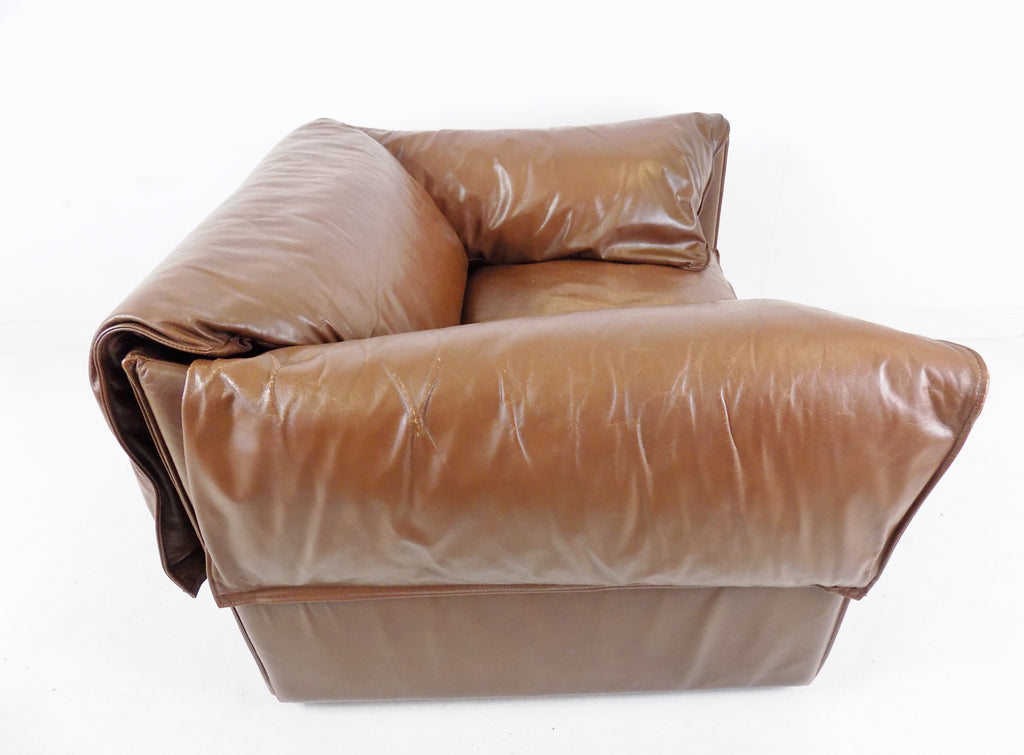 코냑 색상의 이 로터스 가죽 안락의자는 상태가 양호합니다.