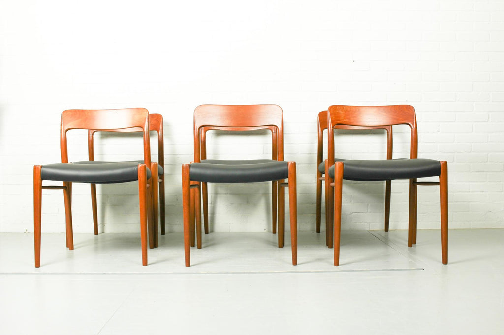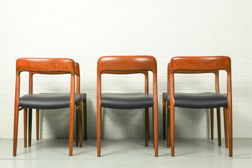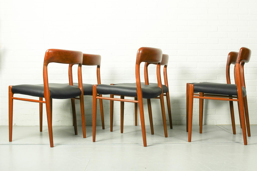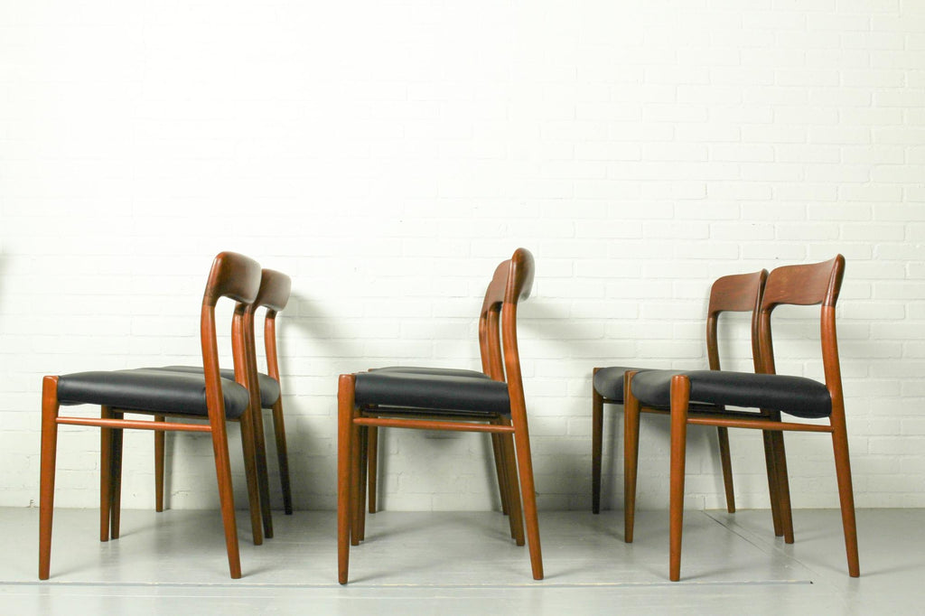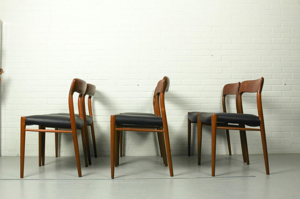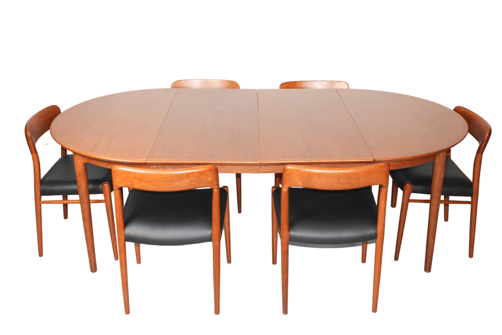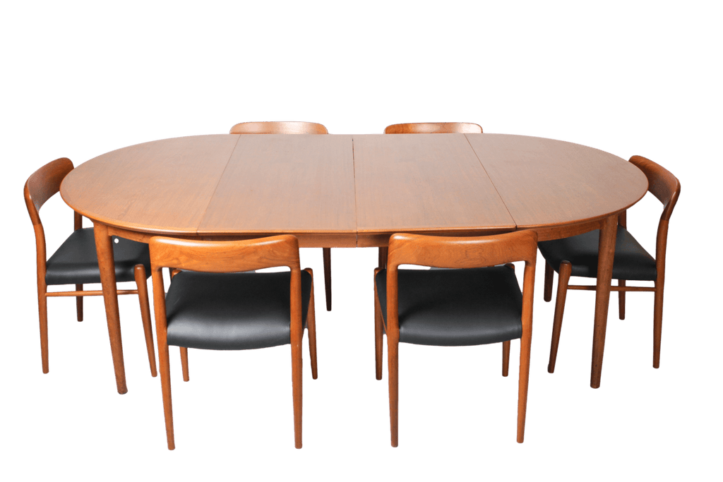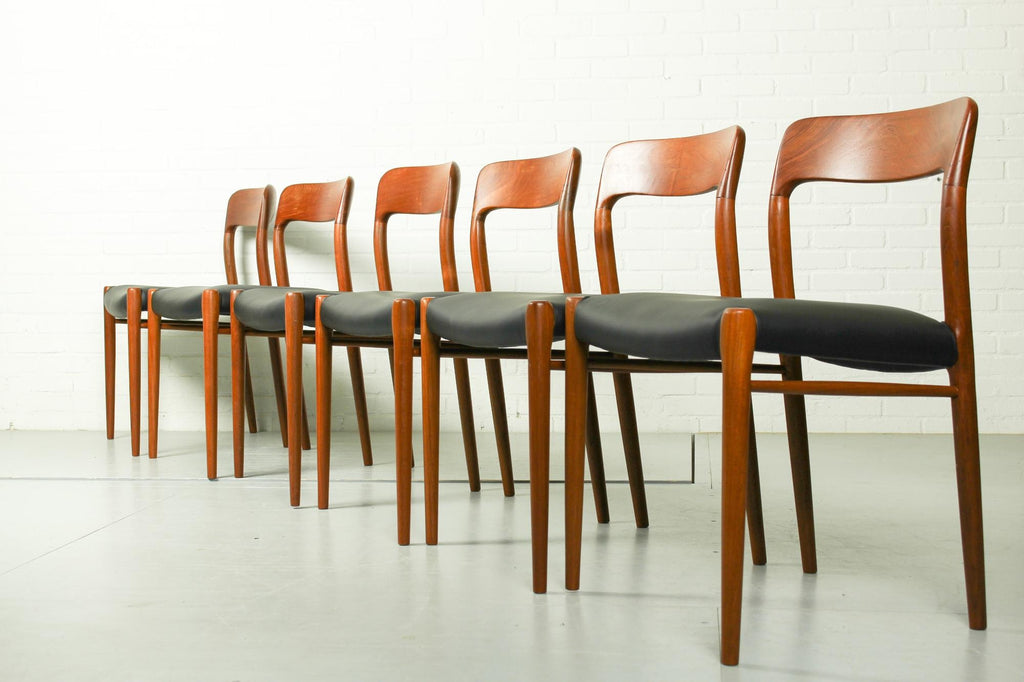 Niels O. Møller Set with Six Møller Chairs No. 77 and Table No. 15 in Teak Made in Denmark