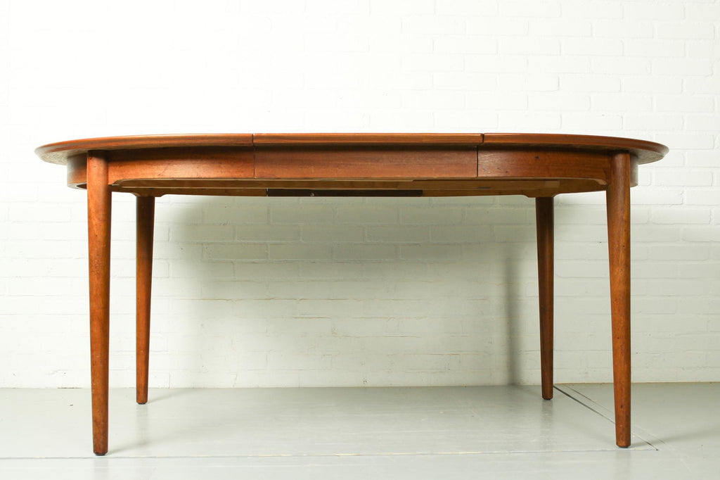 Niels O. Møller의 따뜻한 티크 소재의 77번 의자 6개와 15번 식탁으로 구성된 아름다운 다이닝 세트. 의자는 새 검은색 가죽으로 덮개를 씌웠습니다. 치수 테이블: 직경 120cm, 높이 73cm, 길이 170, 220cm로 확장 가능. 의자 치수: 75cm h, 50m w 및 44cm d. 좌석 높이는 약입니다. 45cm. 참고: 디자이너는 Niels Otto Moeller입니다.