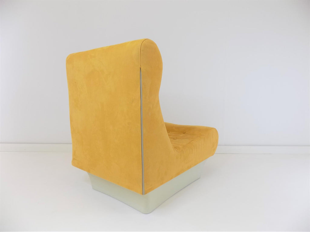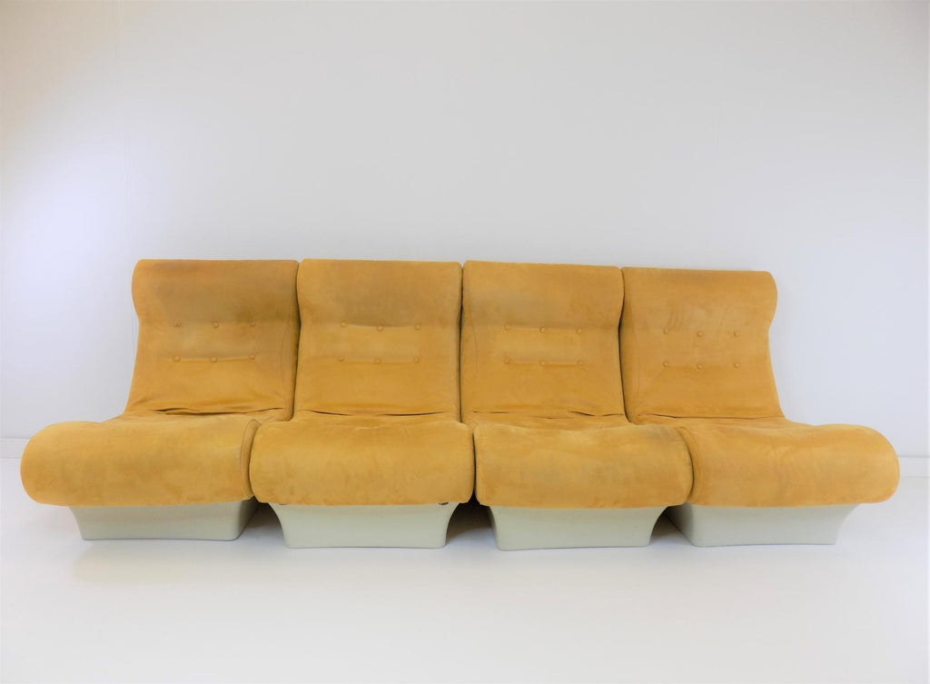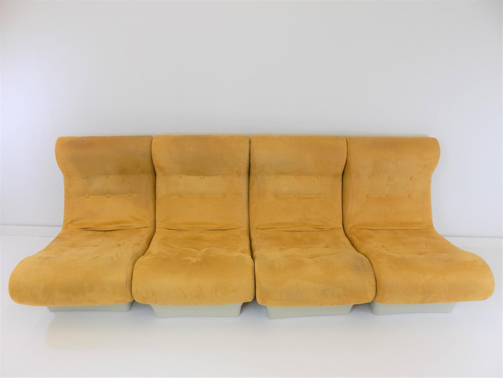 Otto Zapf Sofalette 제품군의 이 4개 모듈 세트는 1970년대 Otto Zapf에 의해 개발되었습니다. 옥수수 노란색 Alcantara 모듈식 안락의자는 상태가 매우 좋습니다. 기본 프레임은 해당 연령에 해당하는 상태의 유리 섬유 쉘입니다. 균열 없음, 의자가 서 있을 때 볼 수 없는 상단 가장자리에 약간의 칩만 있습니다. 모듈은 4인용, 2인용 또는 1인용 의자로 사용할 수 있습니다. 세트는 Sofalette 제품군의 오리지널 Otto Zapf 코너 테이블로 완성됩니다. 테이블의 치수는 W 99 cm x L 99 cm x H 24 cm입니다. 테이블 없이 구매가 가능합니다. Otto Zapf는 1958년 Niels Vitsoe와 함께 Vitsoe+Zapf라는 회사를 설립하고 Dieter Rams와 협력했습니다. 1969년 Otto Zapf는 합작 회사를 떠났고 1970년에는 Softline 시스템을 설계하여 그에게 큰 성공을 거두었습니다. 그 후 Otto Zapf는 Knoll Int의 디자이너로 일했습니다. 그의 디자인은 Knoll Int., B&B Italia 등에서 제작되었습니다.