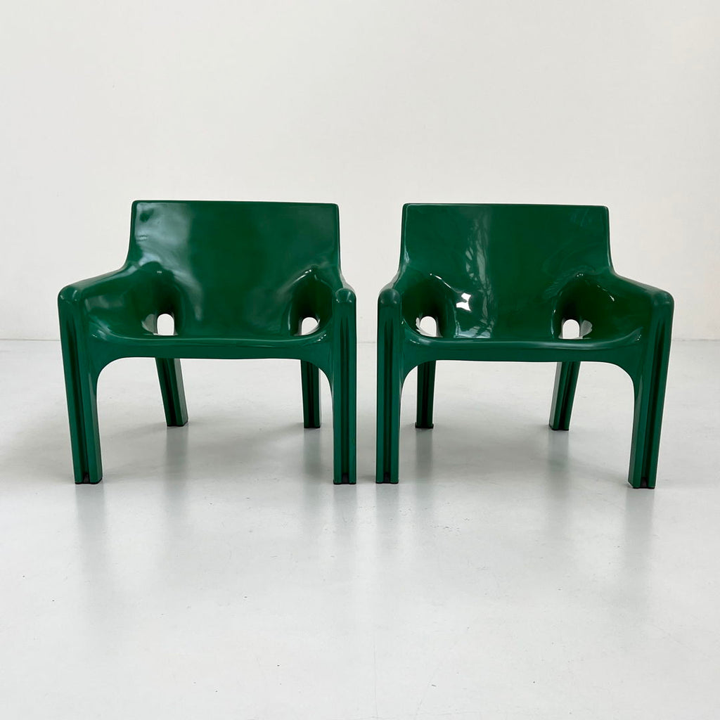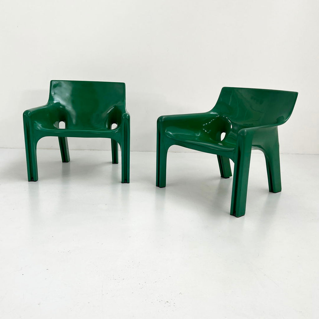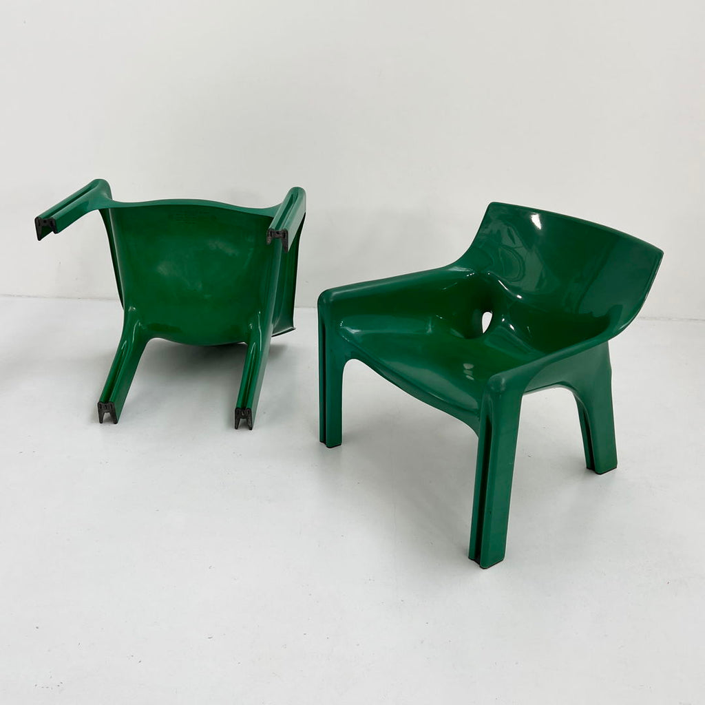 Pair of Green Vicario Lounge Chairs by Vico Magistretti for Artemide, 1970s
