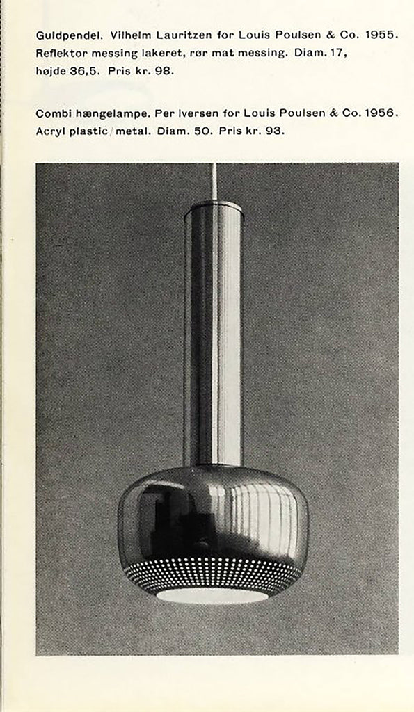 모더니스트 건축가 Vilhelm Lauritzen은 1955년 덴마크 Louis Poulsen을 위해 Guldpendel 펜던트를 만들었습니다.