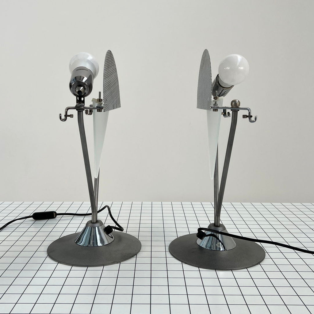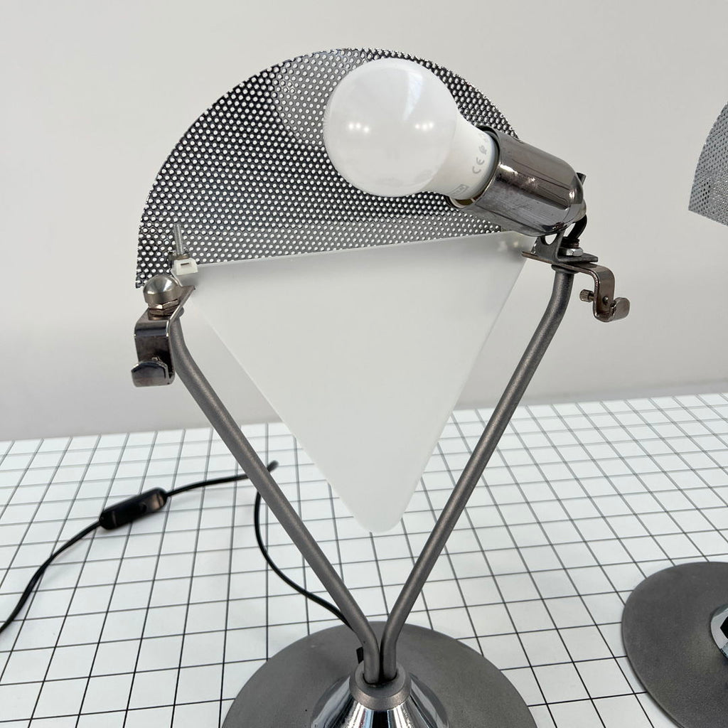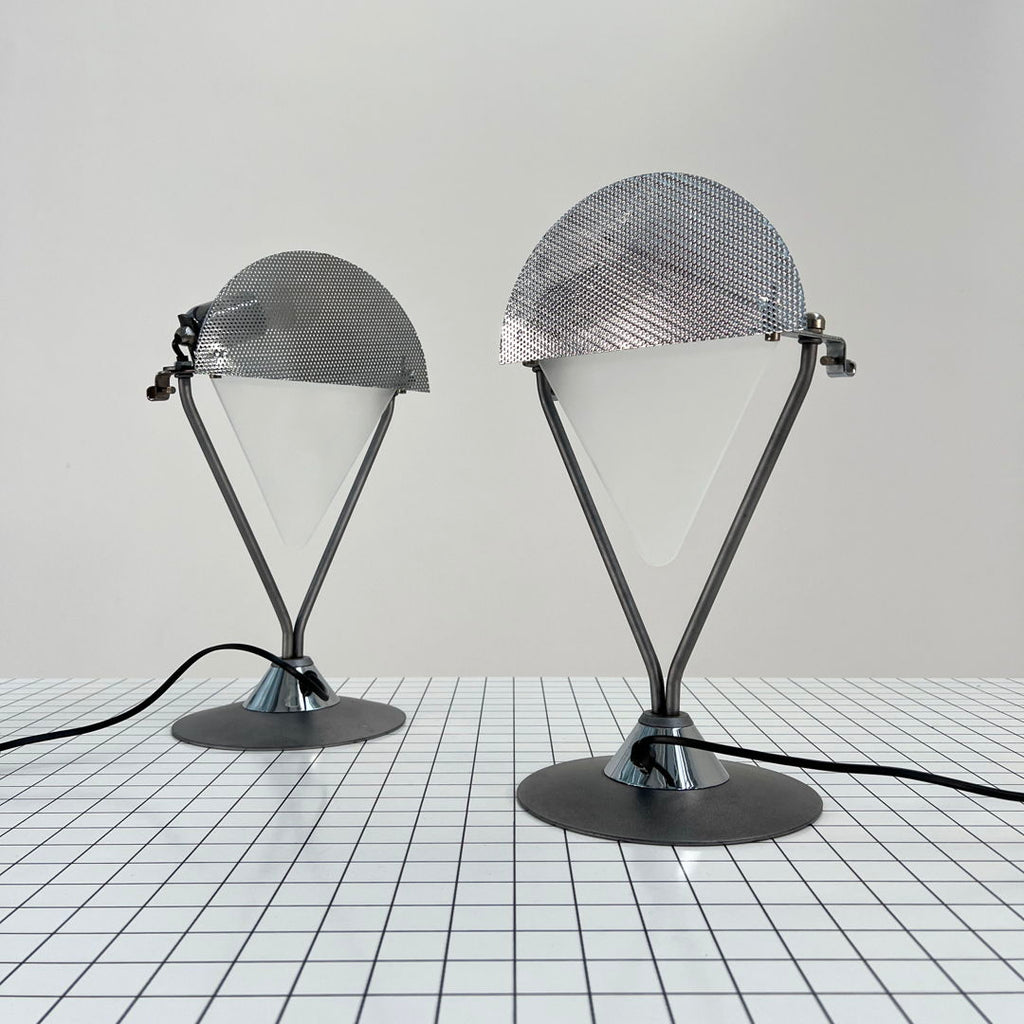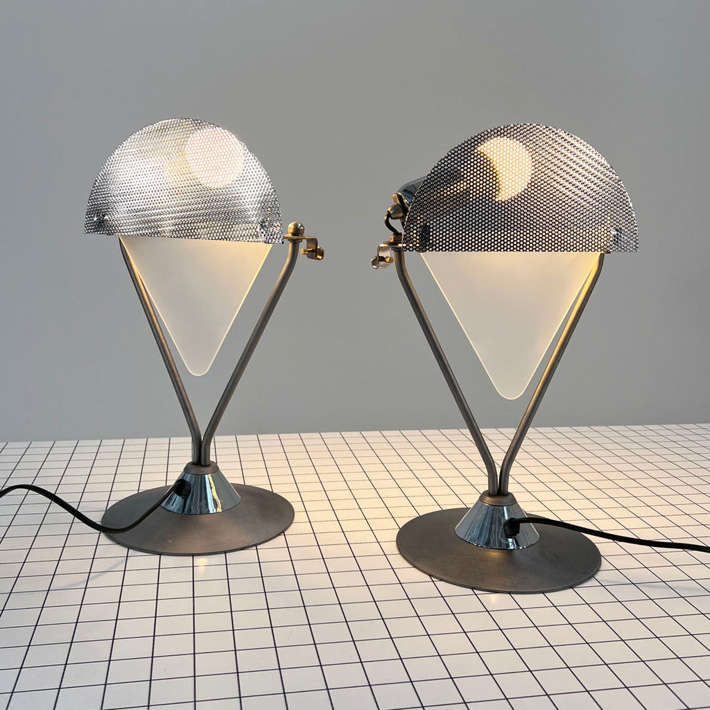 Pair of Table Lamps in Perforated Metal & Glass from Stilux Milano, 1980s